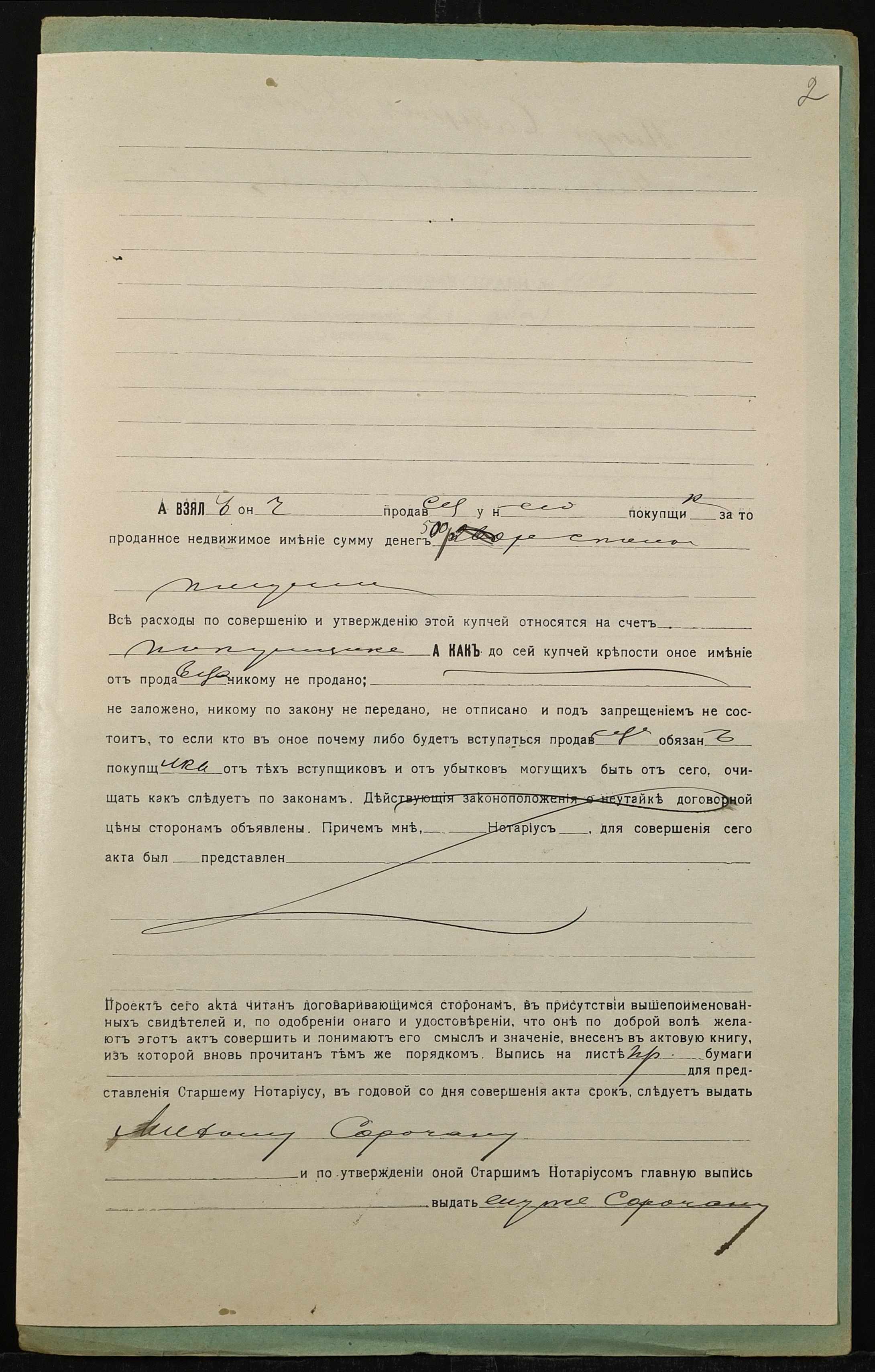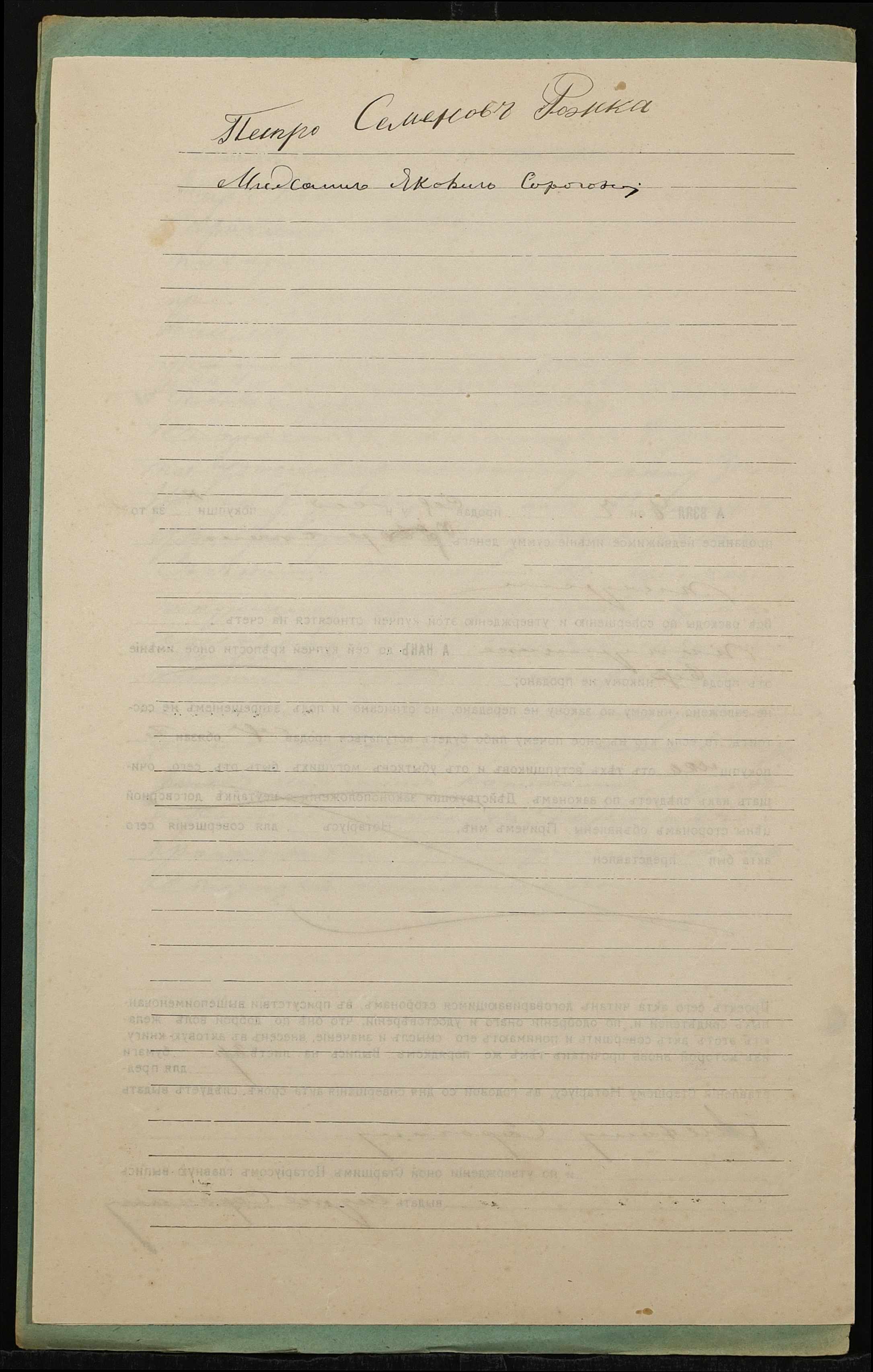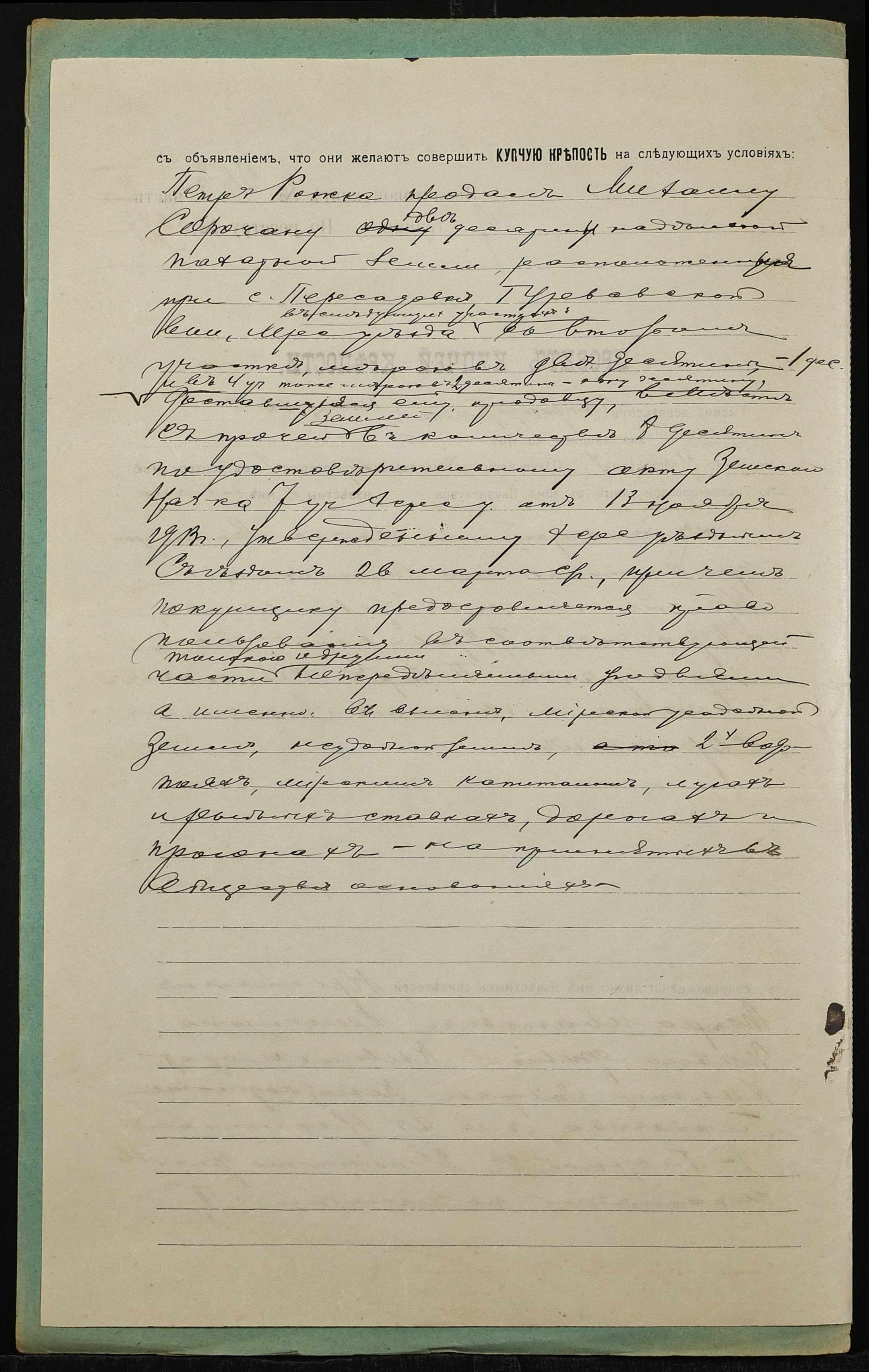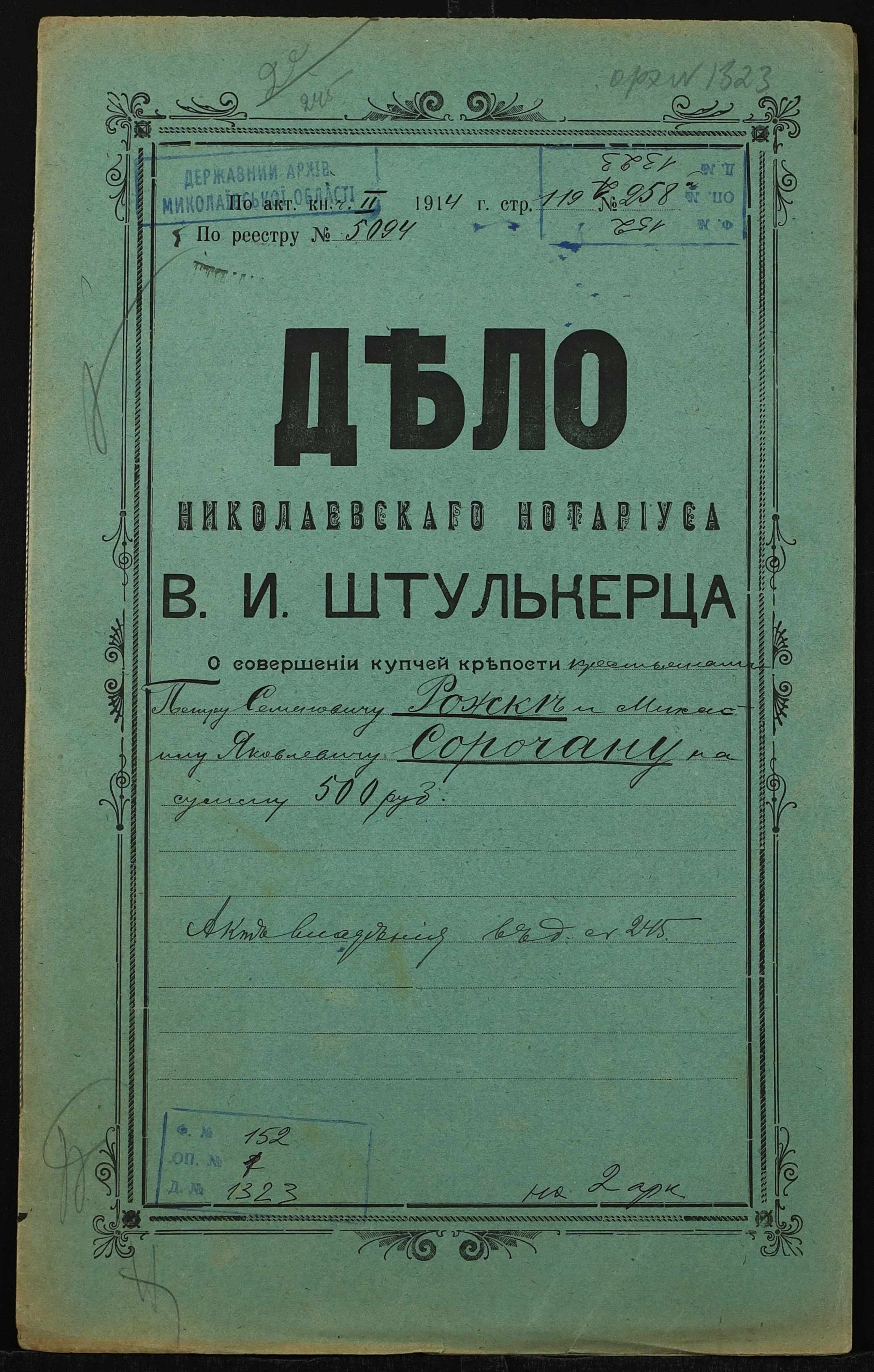 • • • • Справа № 1323 “Справа про вчинення купчої про продаж землі селянином Рожкою Петром Семеновичем (Рожкой Петром Семеновичем) на користь селянина Сорочана Михайла Яковича (Сорочана Михаила Яковлевича)”