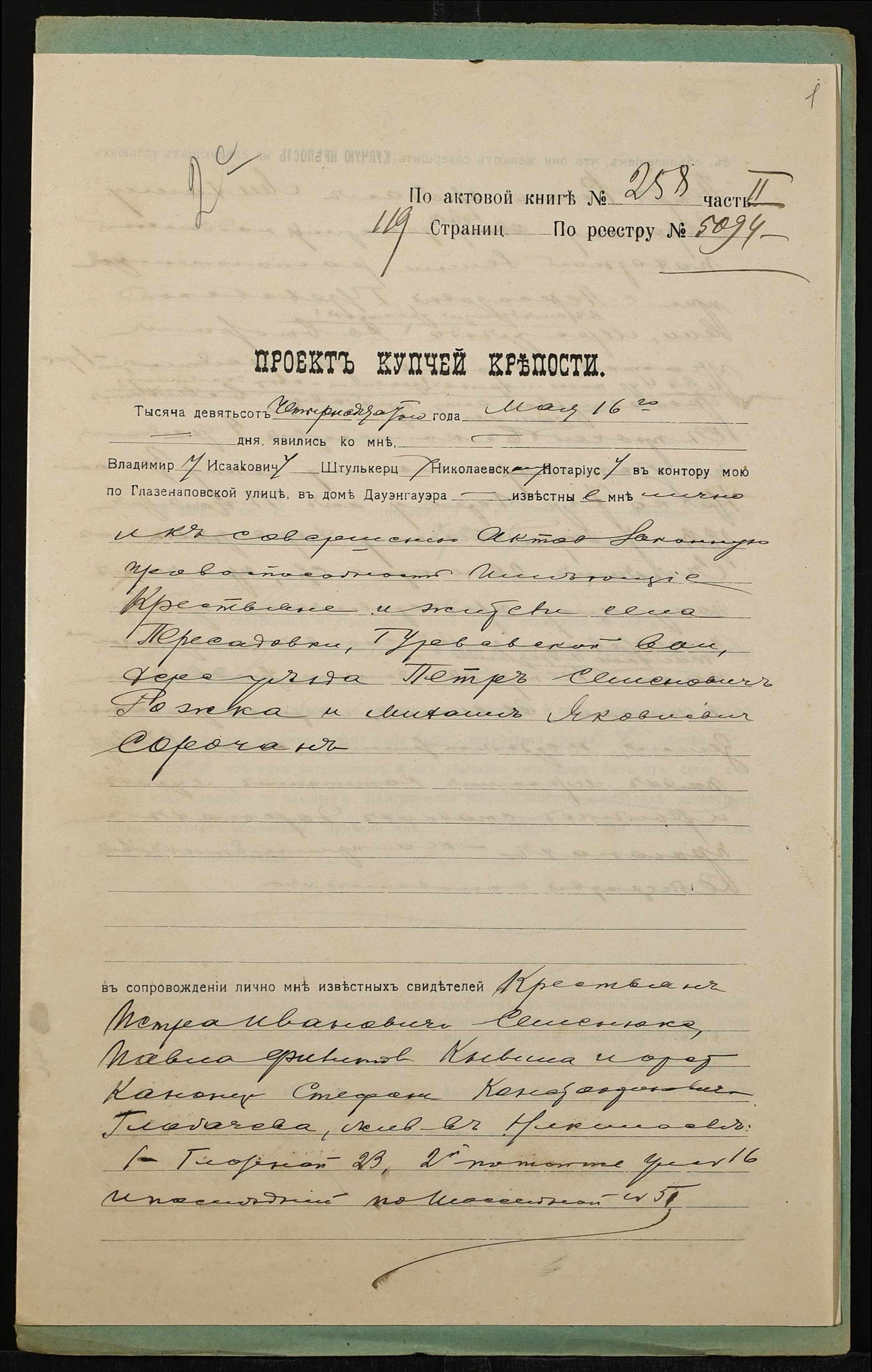 ◦ ◦ Фонд № 152 “Контора миколаївського нотаріуса Херсонського окружного суду Штулькерца Володимира Ісааковича”