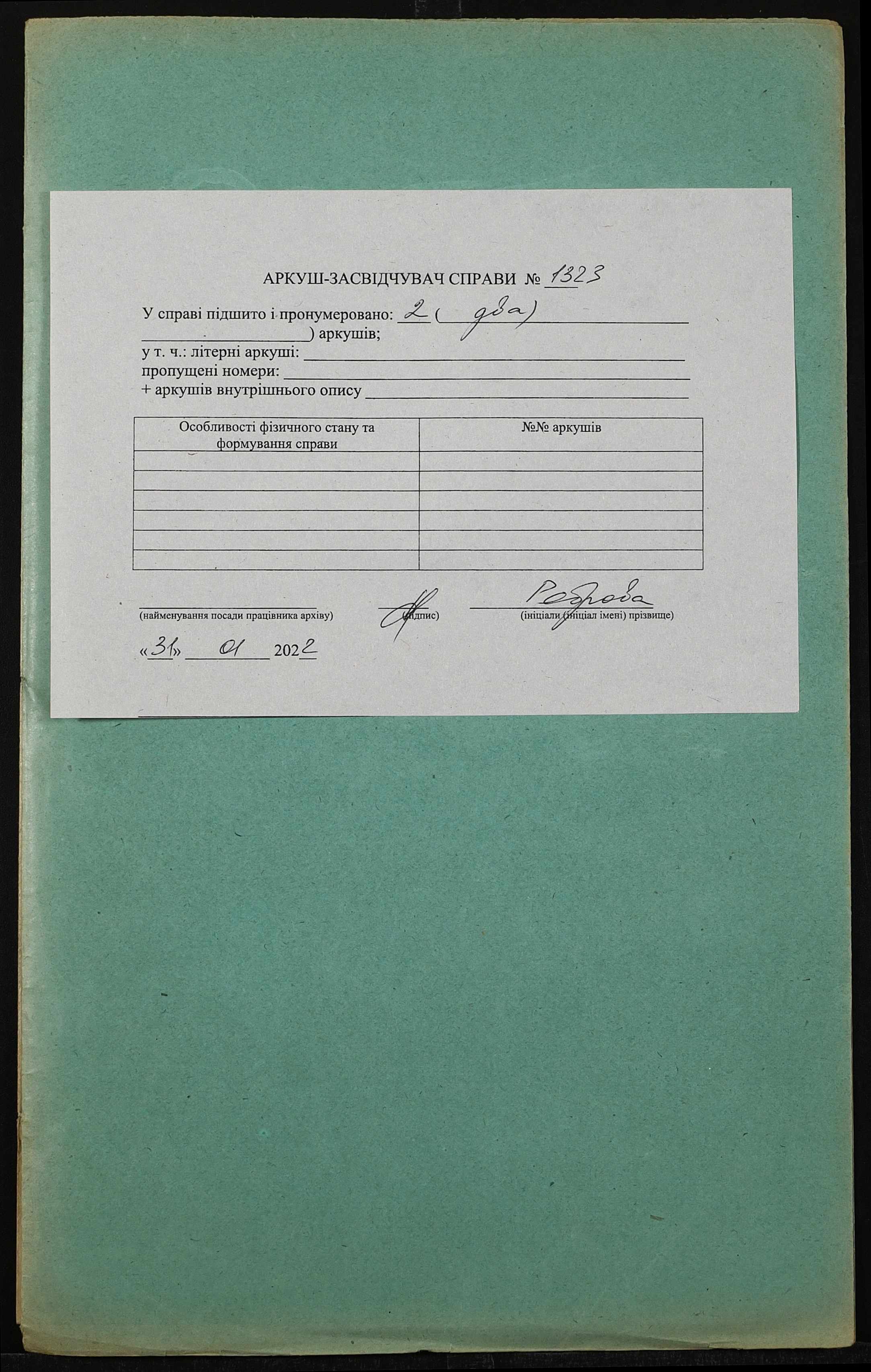 Фонд 152 / Опис 1 / Справа 1323