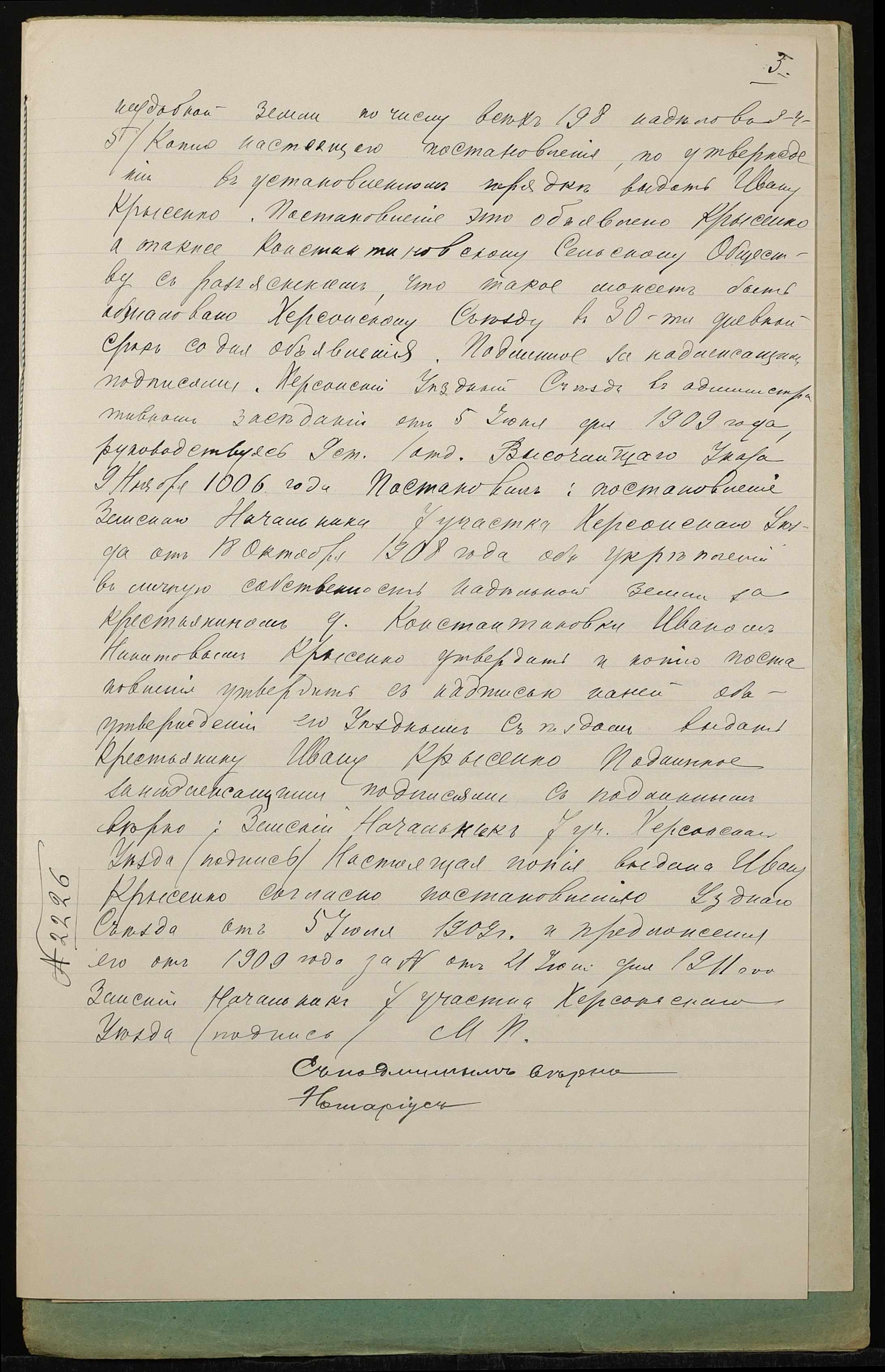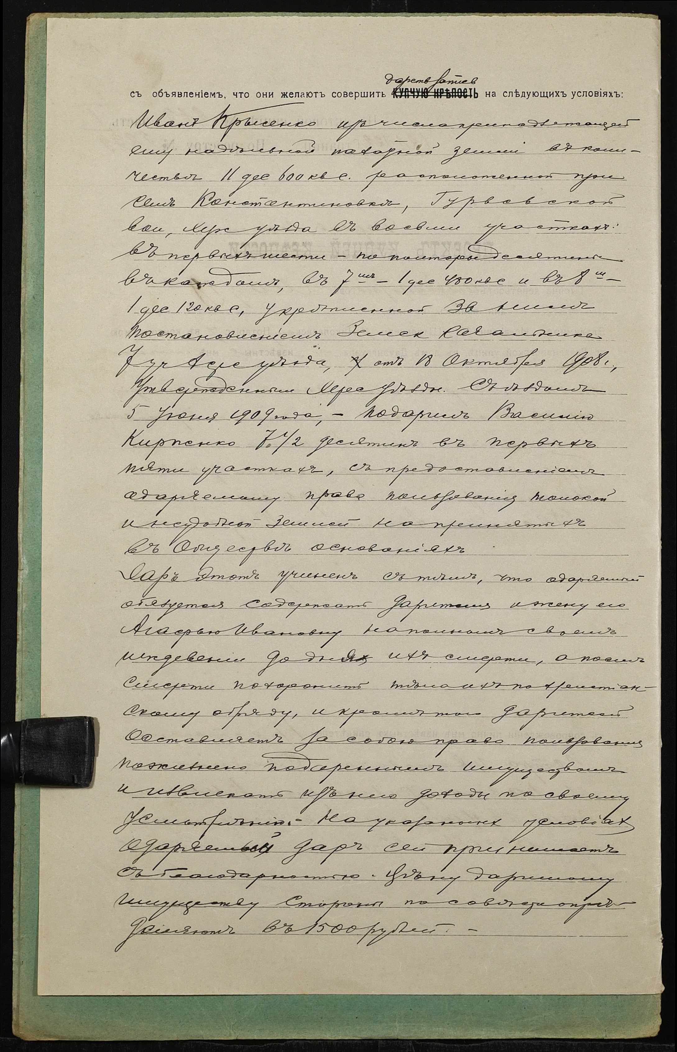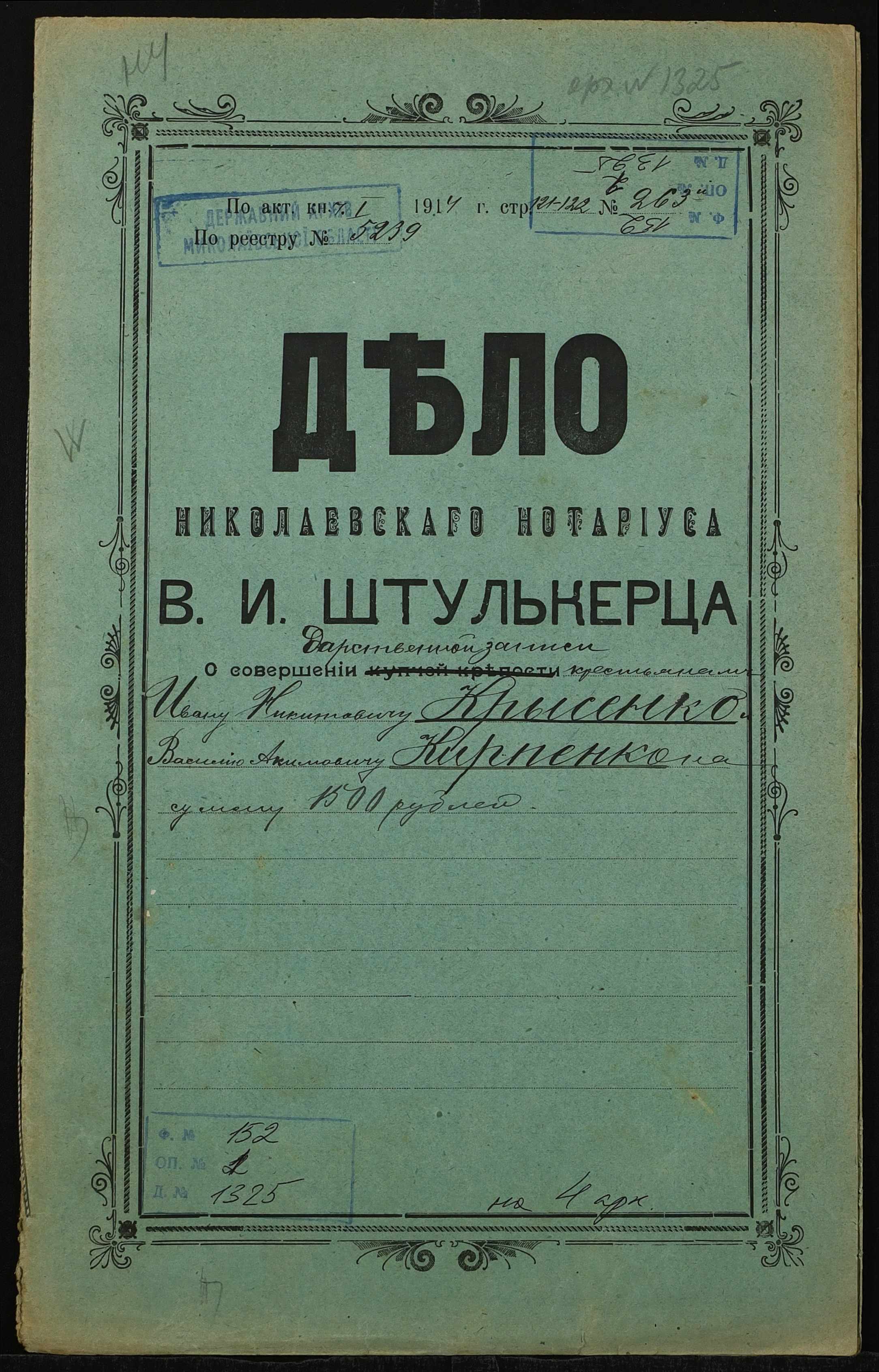 • • • • Справа № 1325 “Справа про вчинення дарчого запису на землю, передану селянином Крисенком Іваном Микитовичем (Крысенко Иваном Никитовичем) у власність селянина Карпенка Василя Якимовича (Карпенко Василия Акимовича)”
