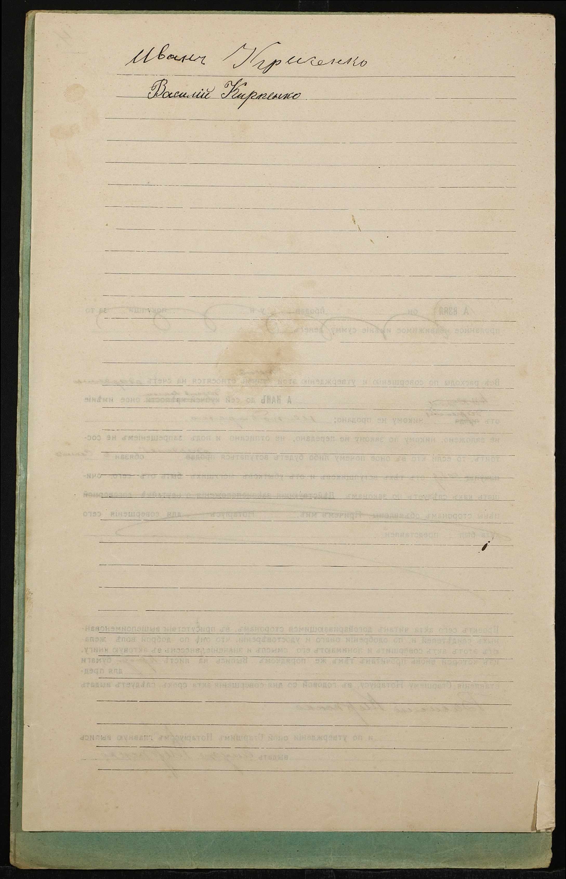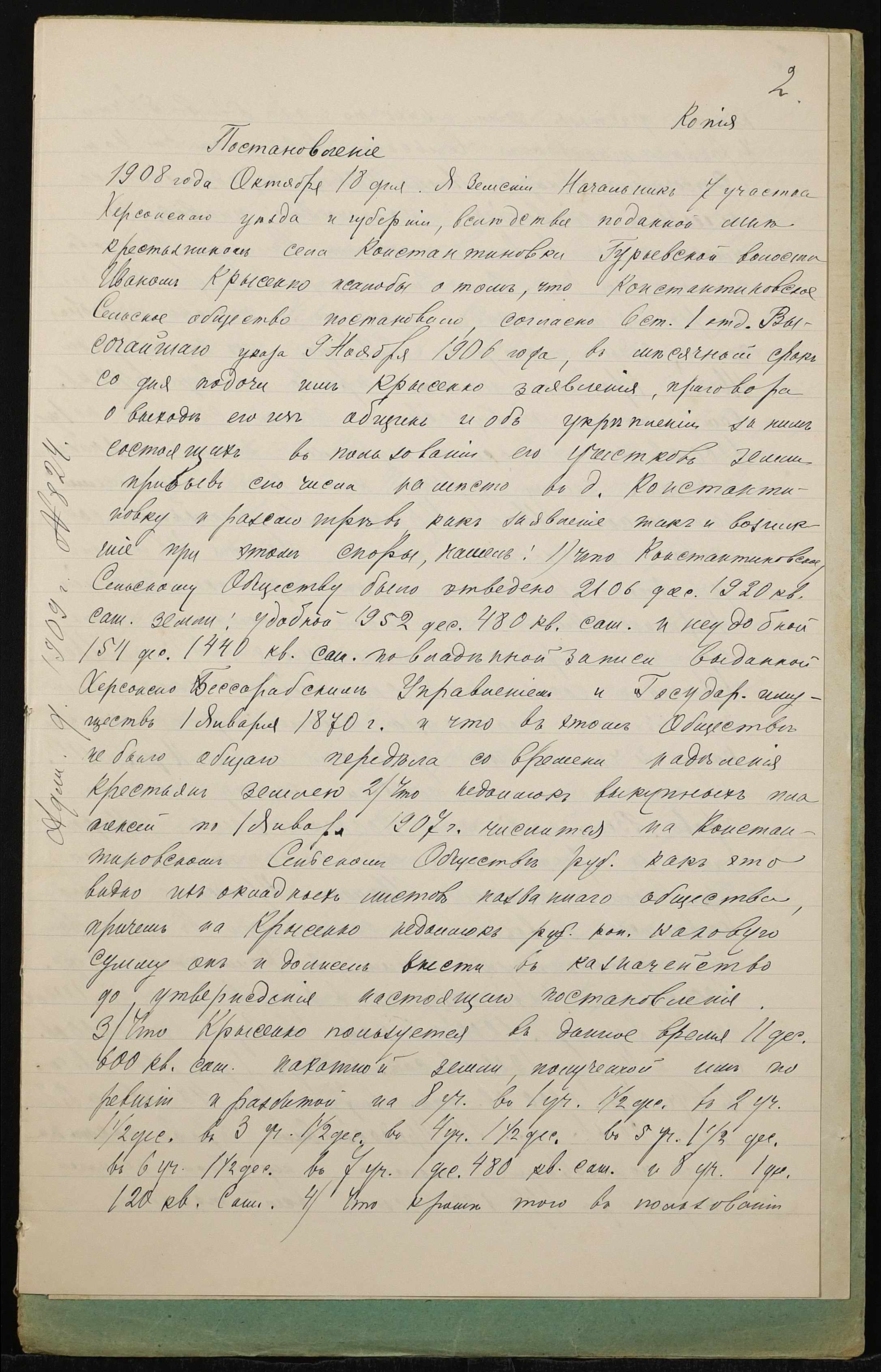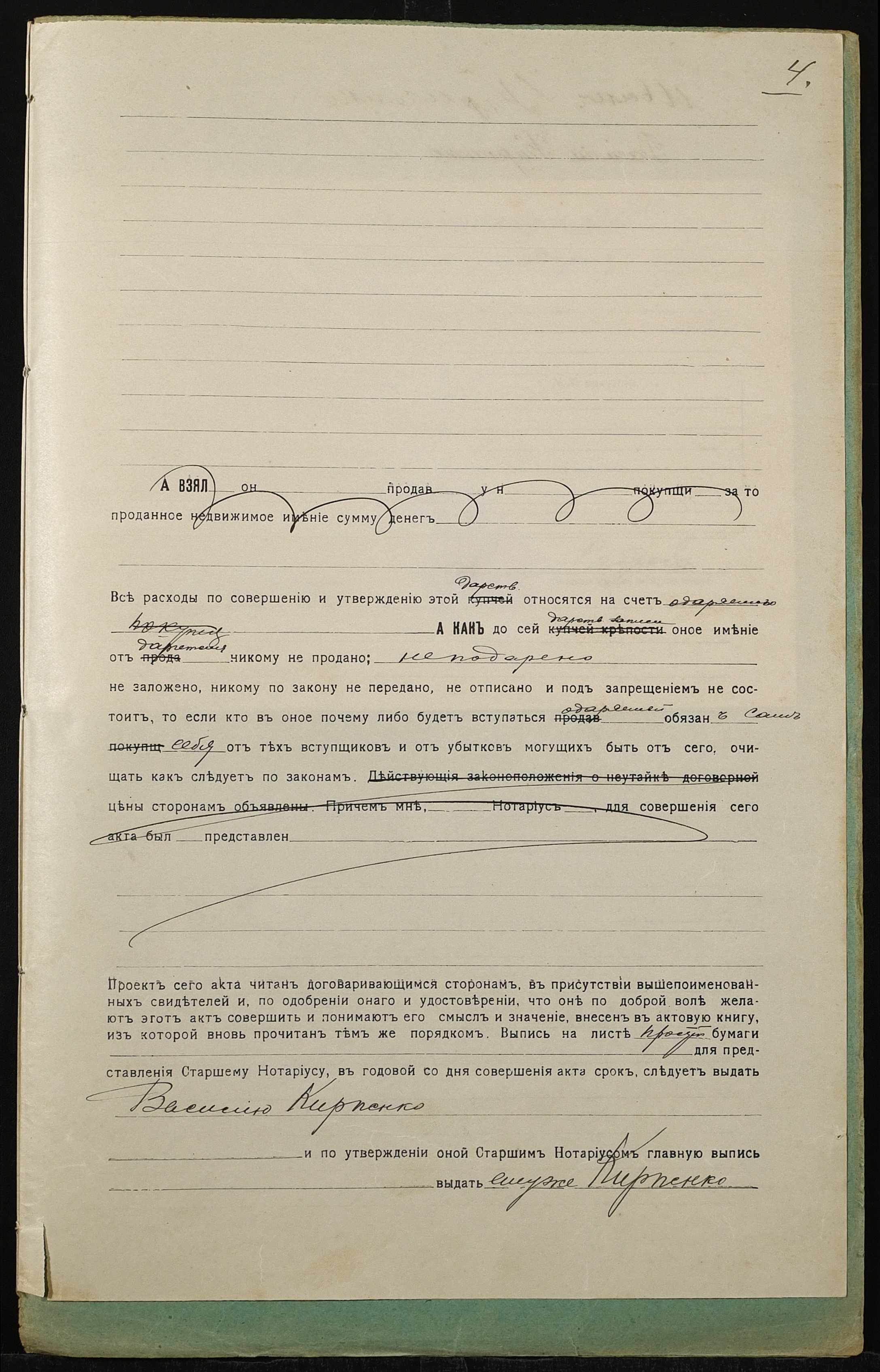 • • • • Справа № 1325 “Справа про вчинення дарчого запису на землю, передану селянином Крисенком Іваном Микитовичем (Крысенко Иваном Никитовичем) у власність селянина Карпенка Василя Якимовича (Карпенко Василия Акимовича)”