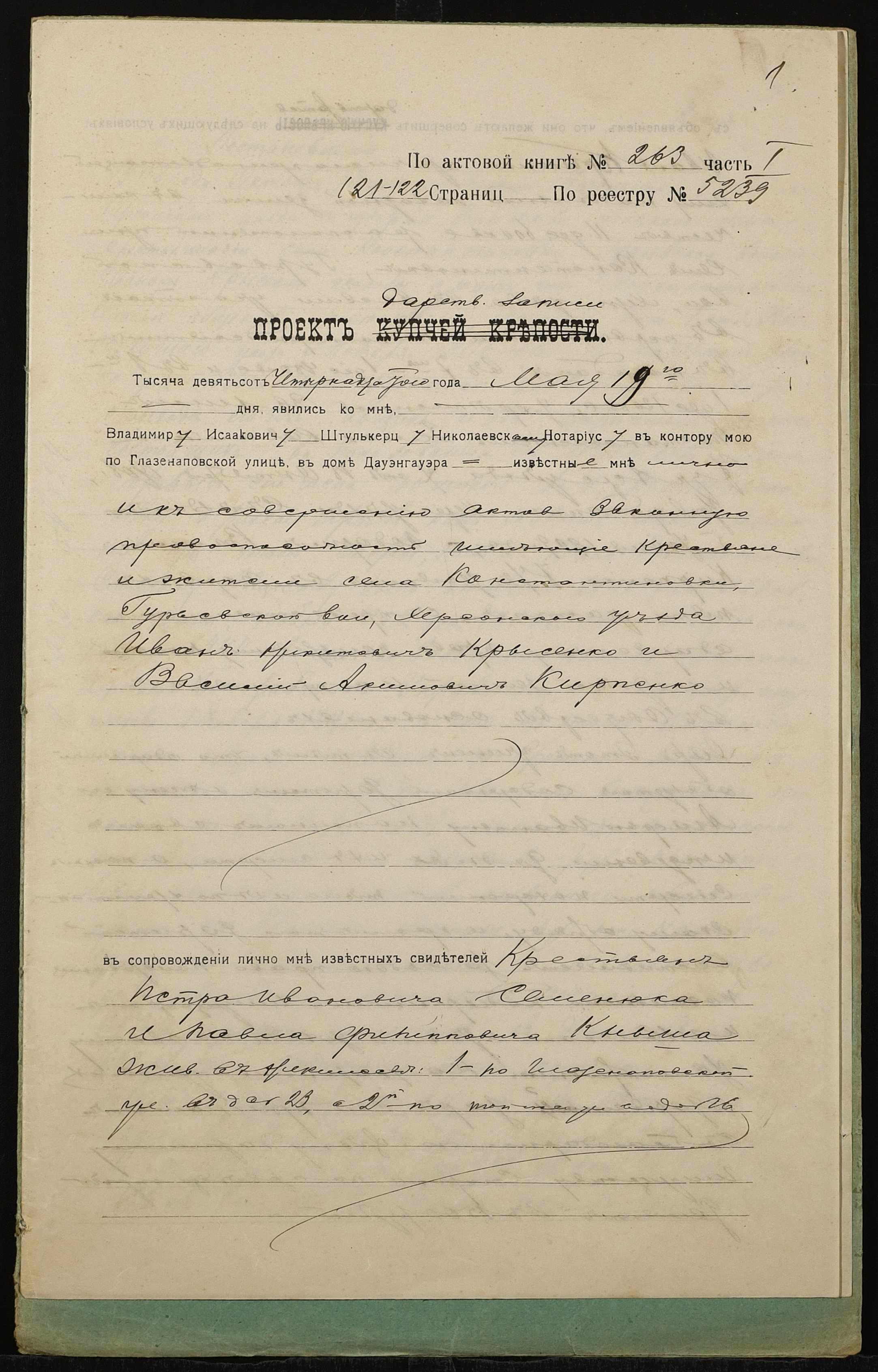 ◦ ◦ Фонд № 152 “Контора миколаївського нотаріуса Херсонського окружного суду Штулькерца Володимира Ісааковича”