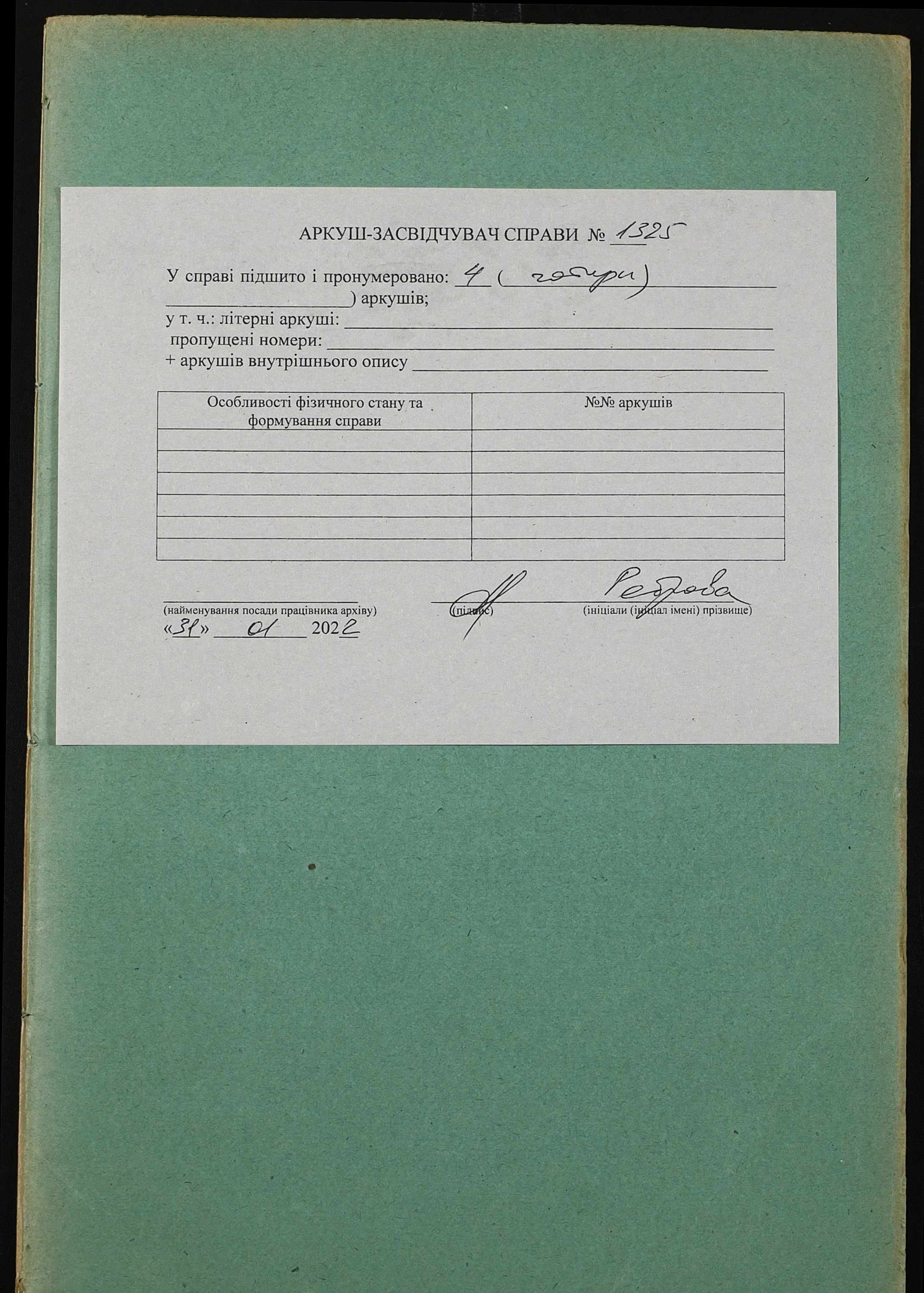 Фонд 152 / Опис 1 / Справа 1325
