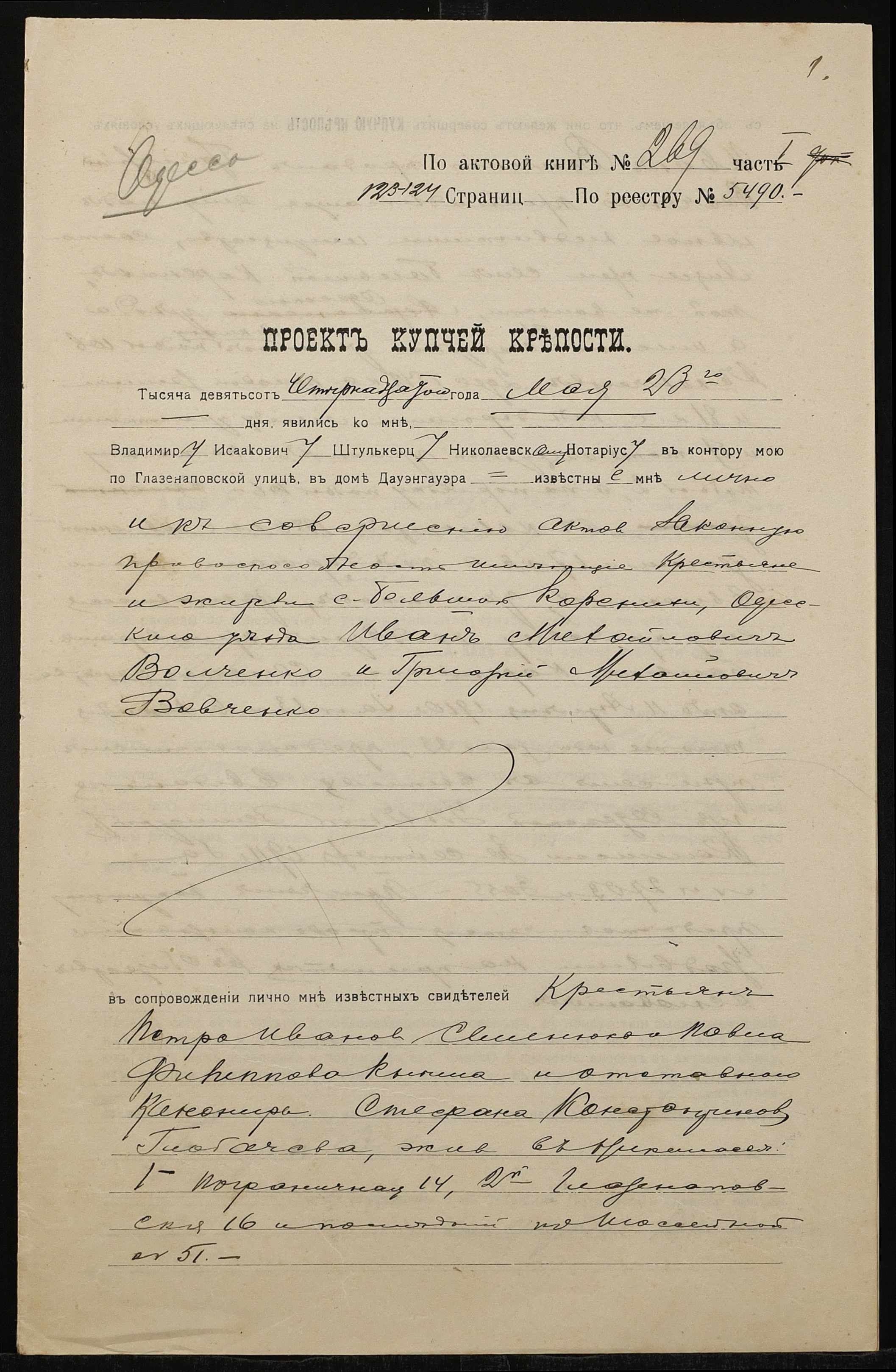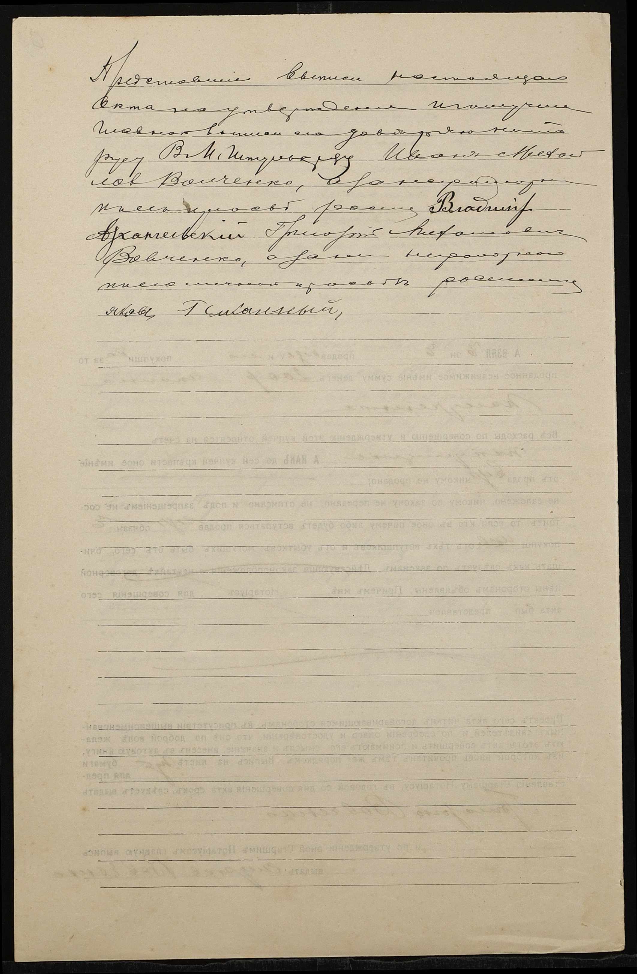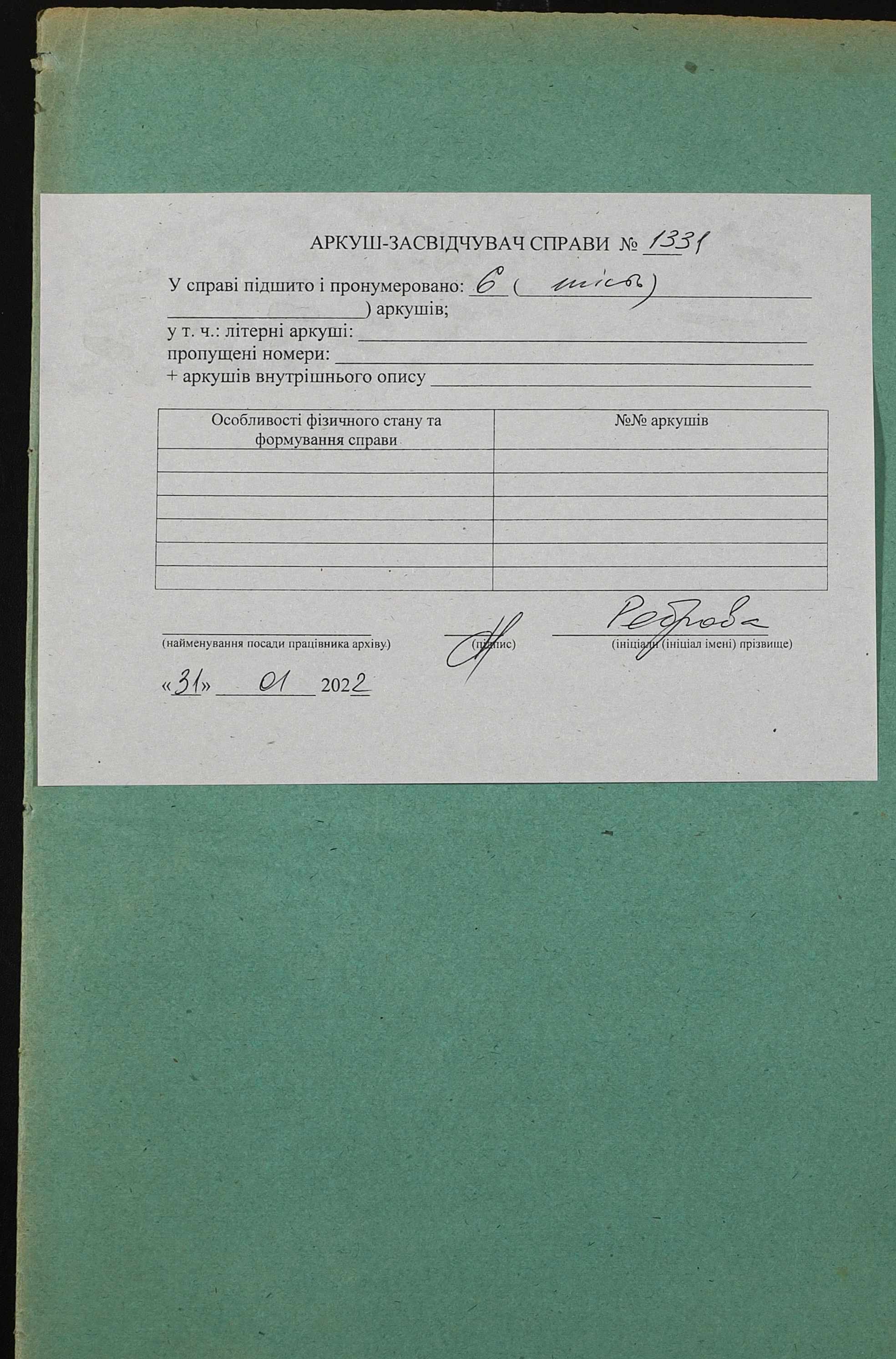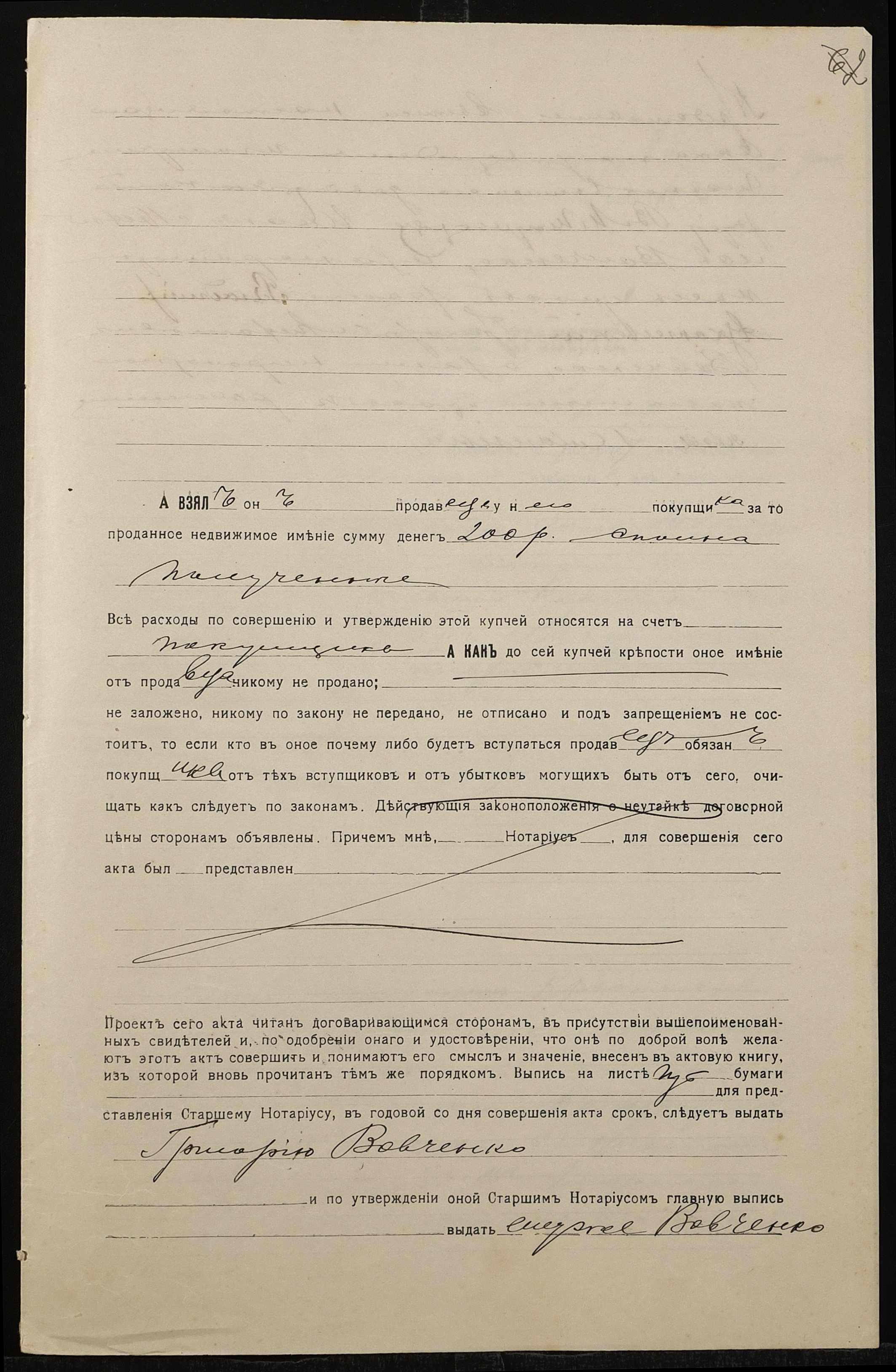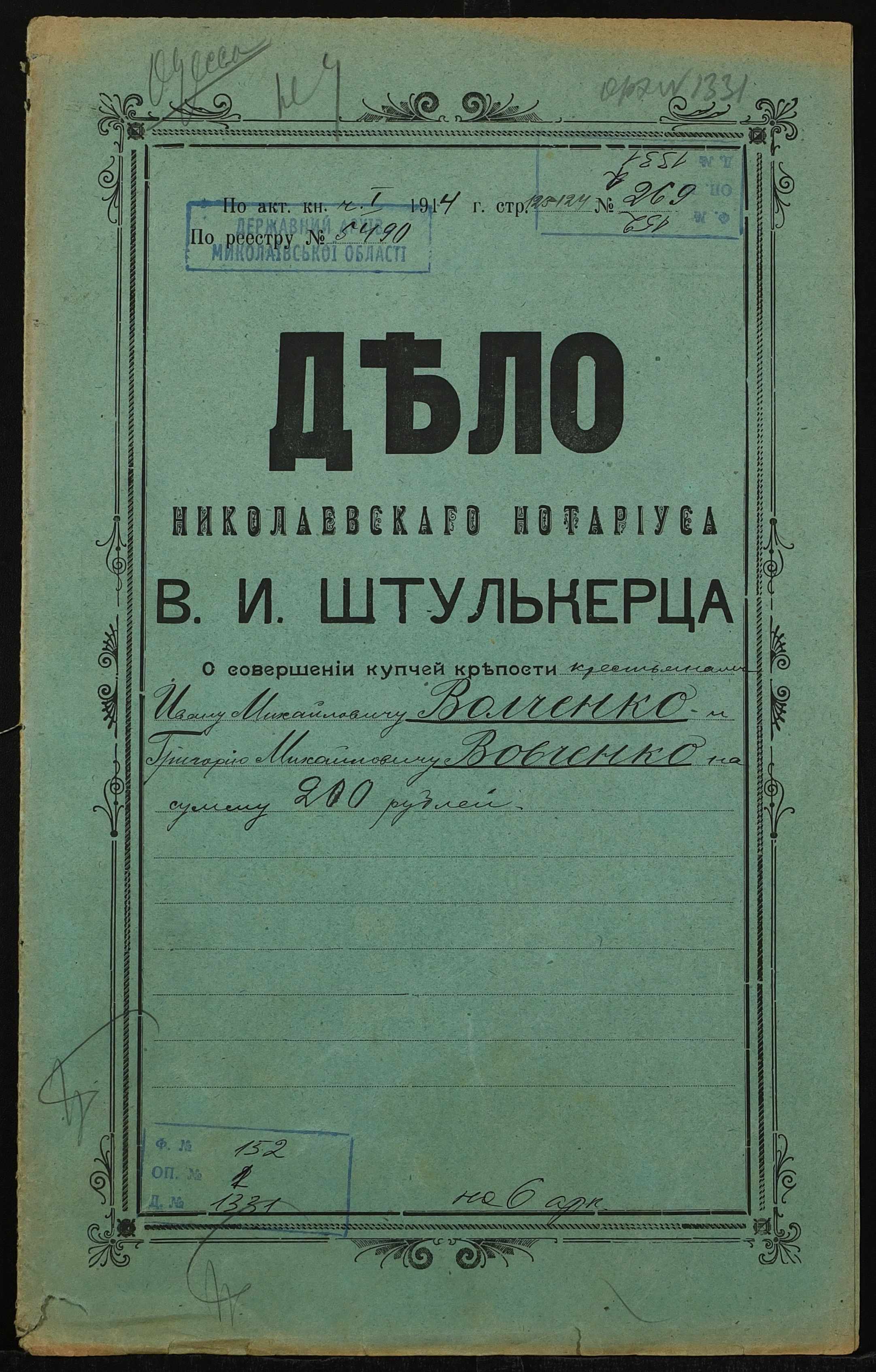 • • • • Справа № 1331 “Справа про вчинення купчої про продаж землі селянином Волченком Іваном Михайловичем (Волченко Иваном Михайловичем) на користь селянина Вовченка Григорія Михайловича (Вовченко Григория Михаиловича)”