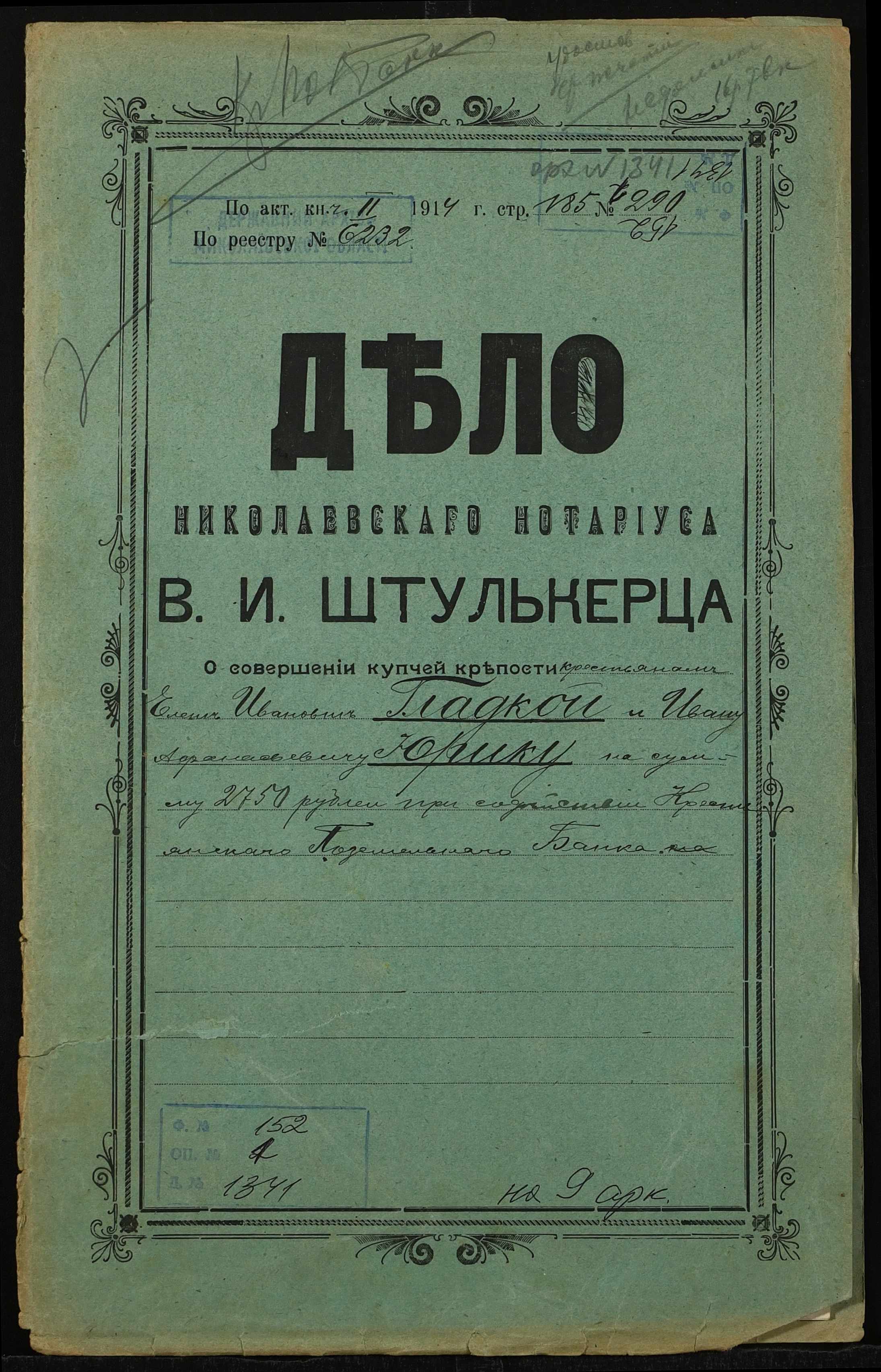 ◦ ◦ Фонд № 152 “Контора миколаївського нотаріуса Херсонського окружного суду Штулькерца Володимира Ісааковича”