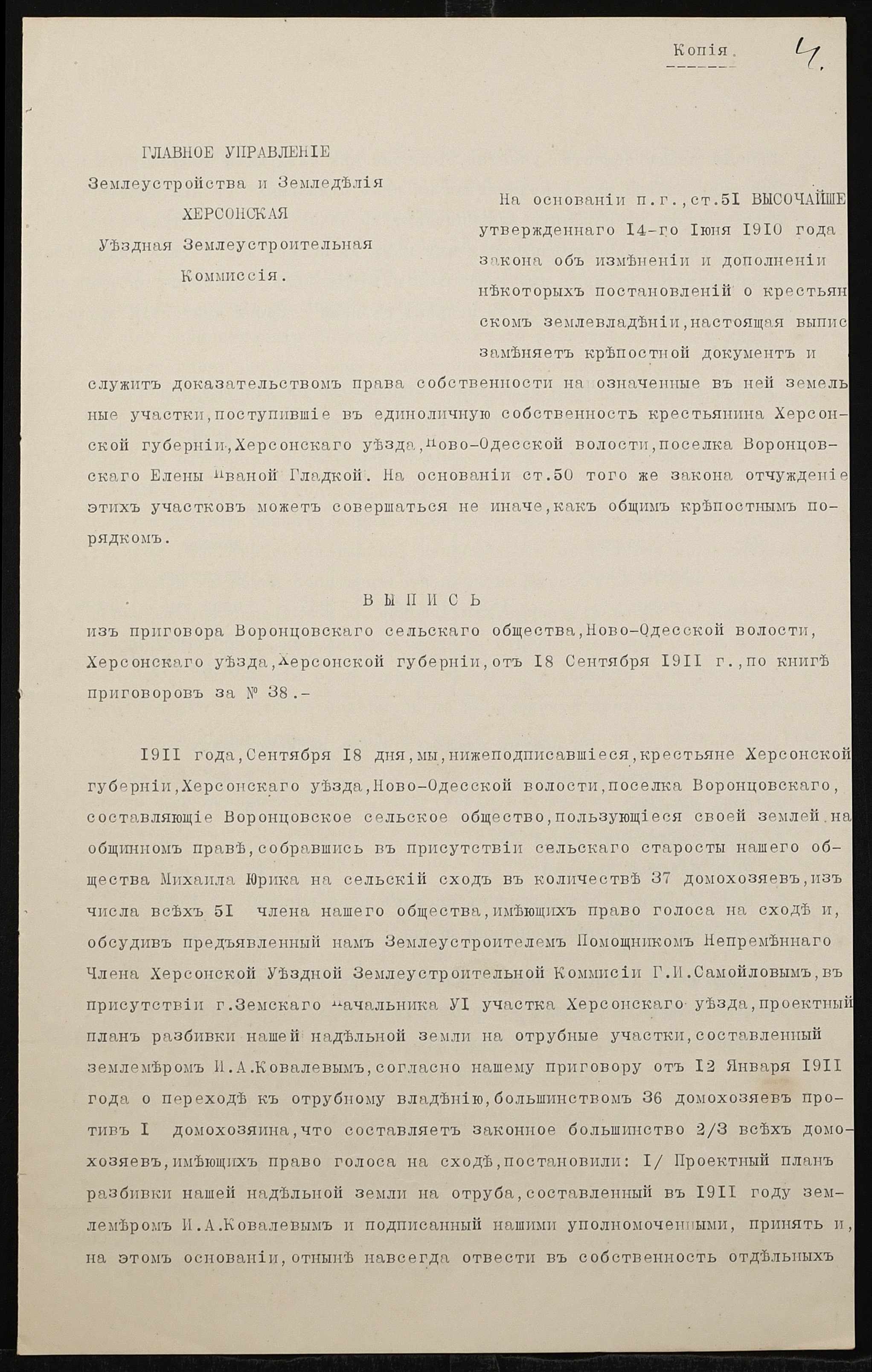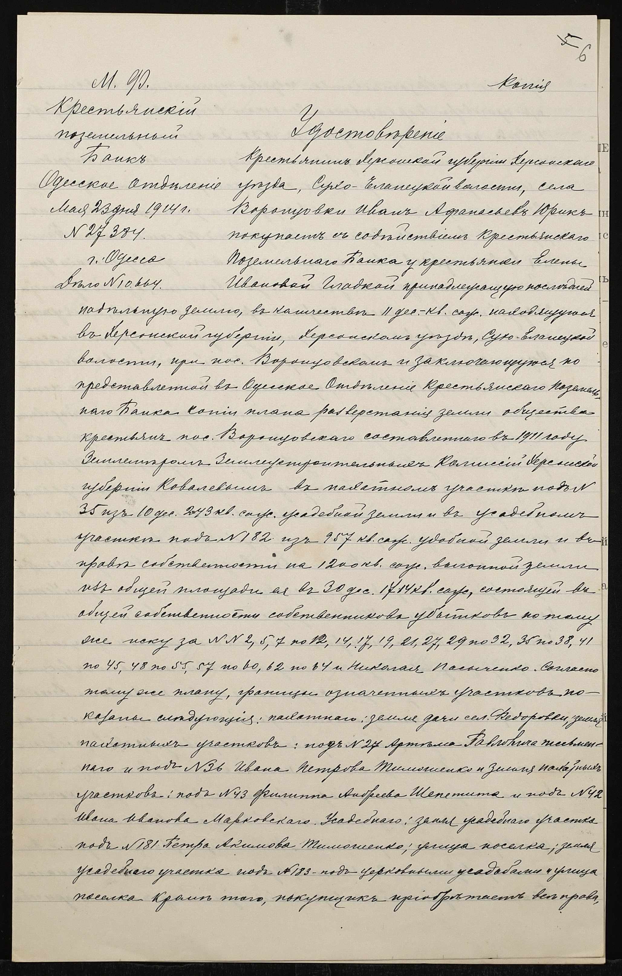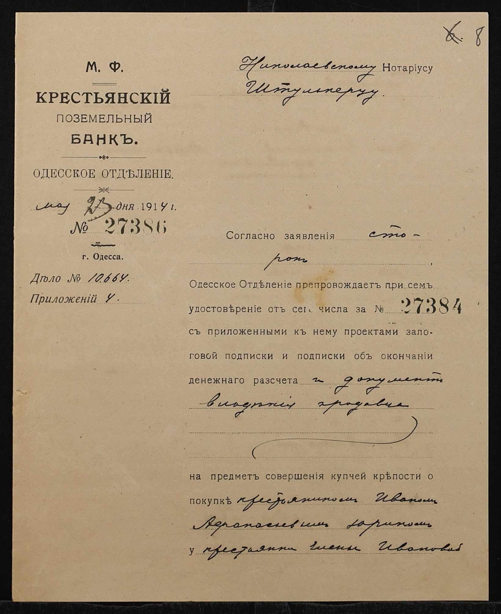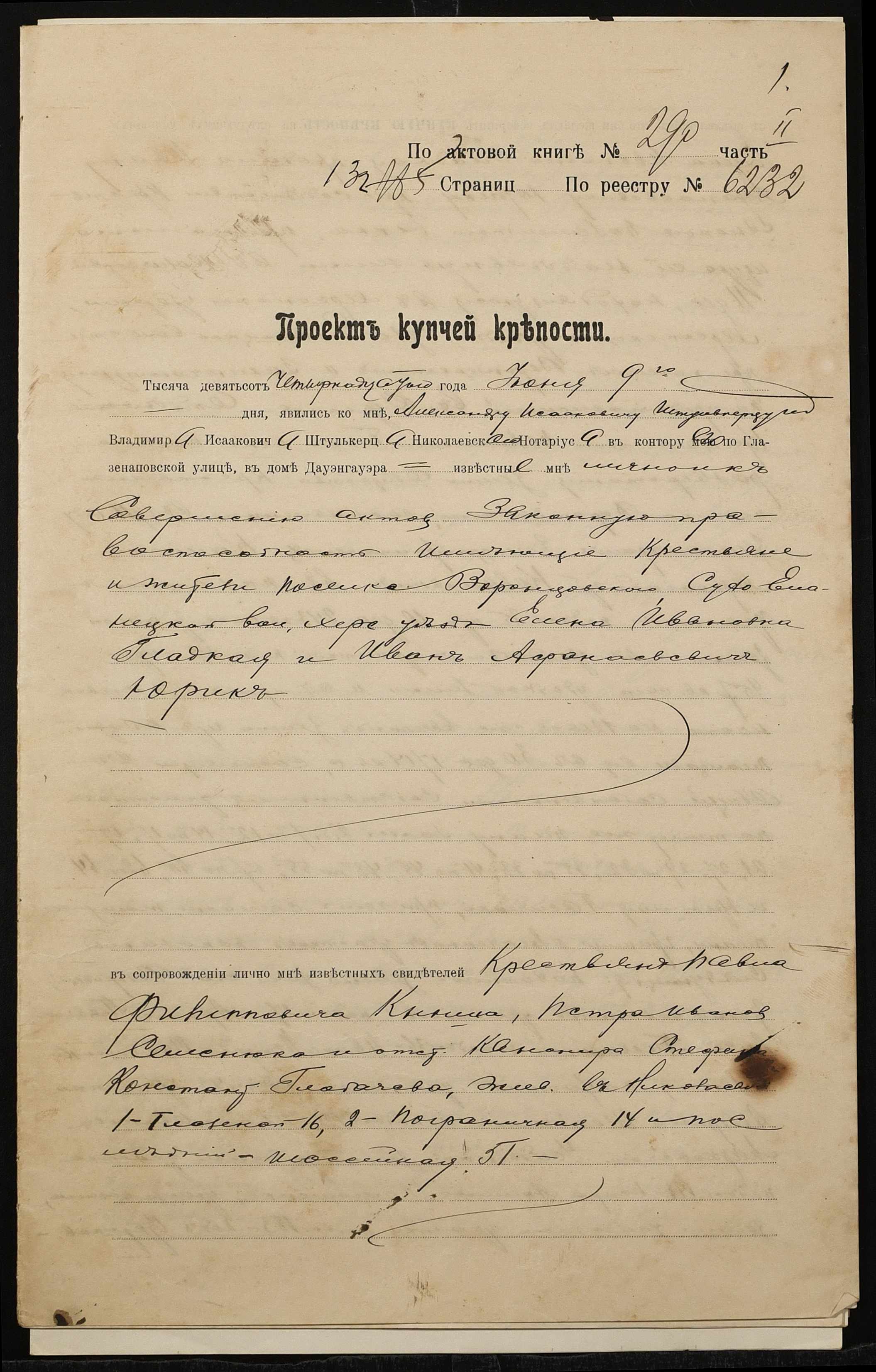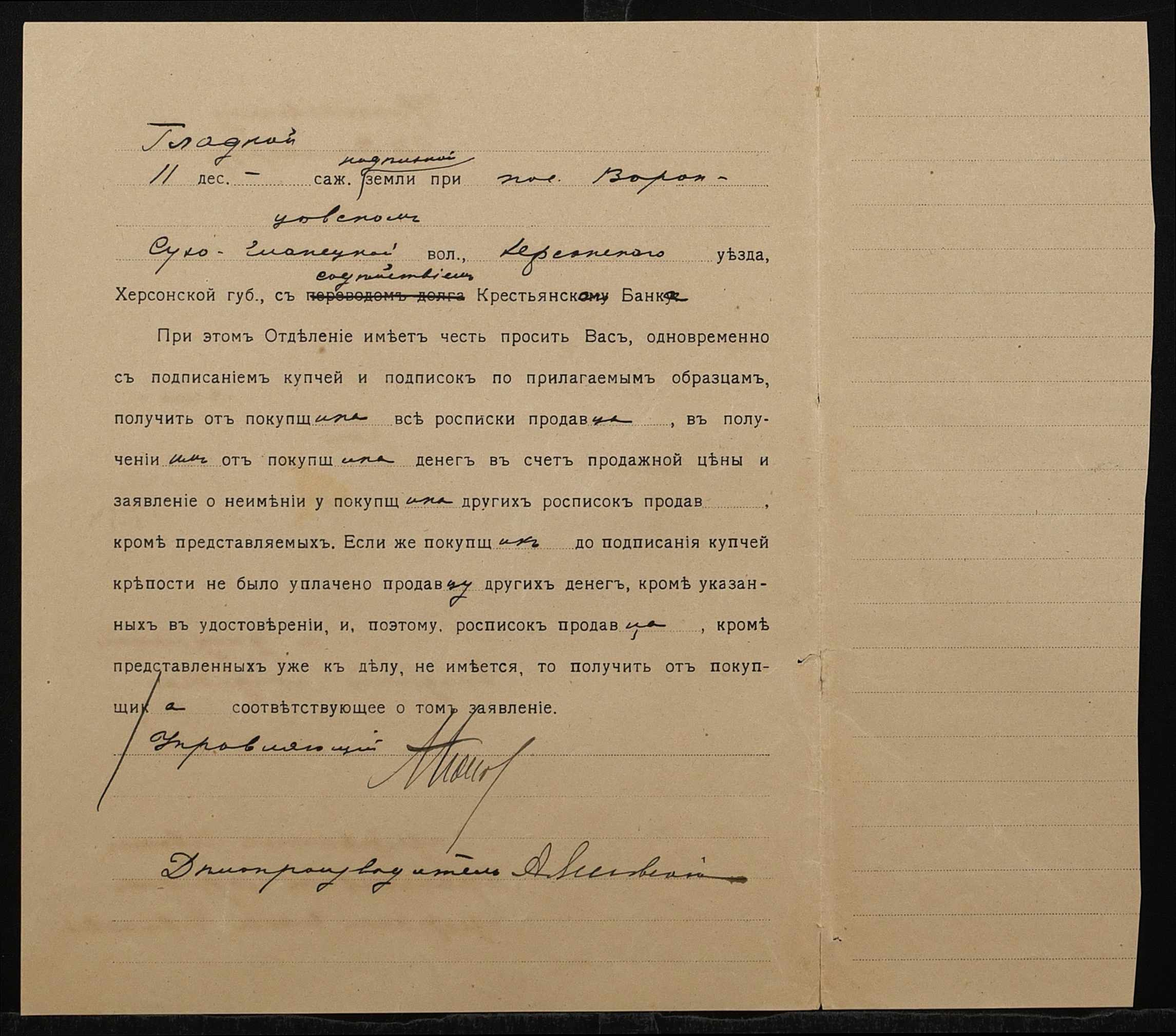 • • • • Справа № 1341 “Справа про вчинення купчої про продаж землі селянкою Гладкою Оленою Іванівною (Гладкой Еленой Ивановной) на користь селянина Юрика Івана Опанасовича (Юрика Ивана Афанасьевича) за сприяння Селянського поземельного банку”