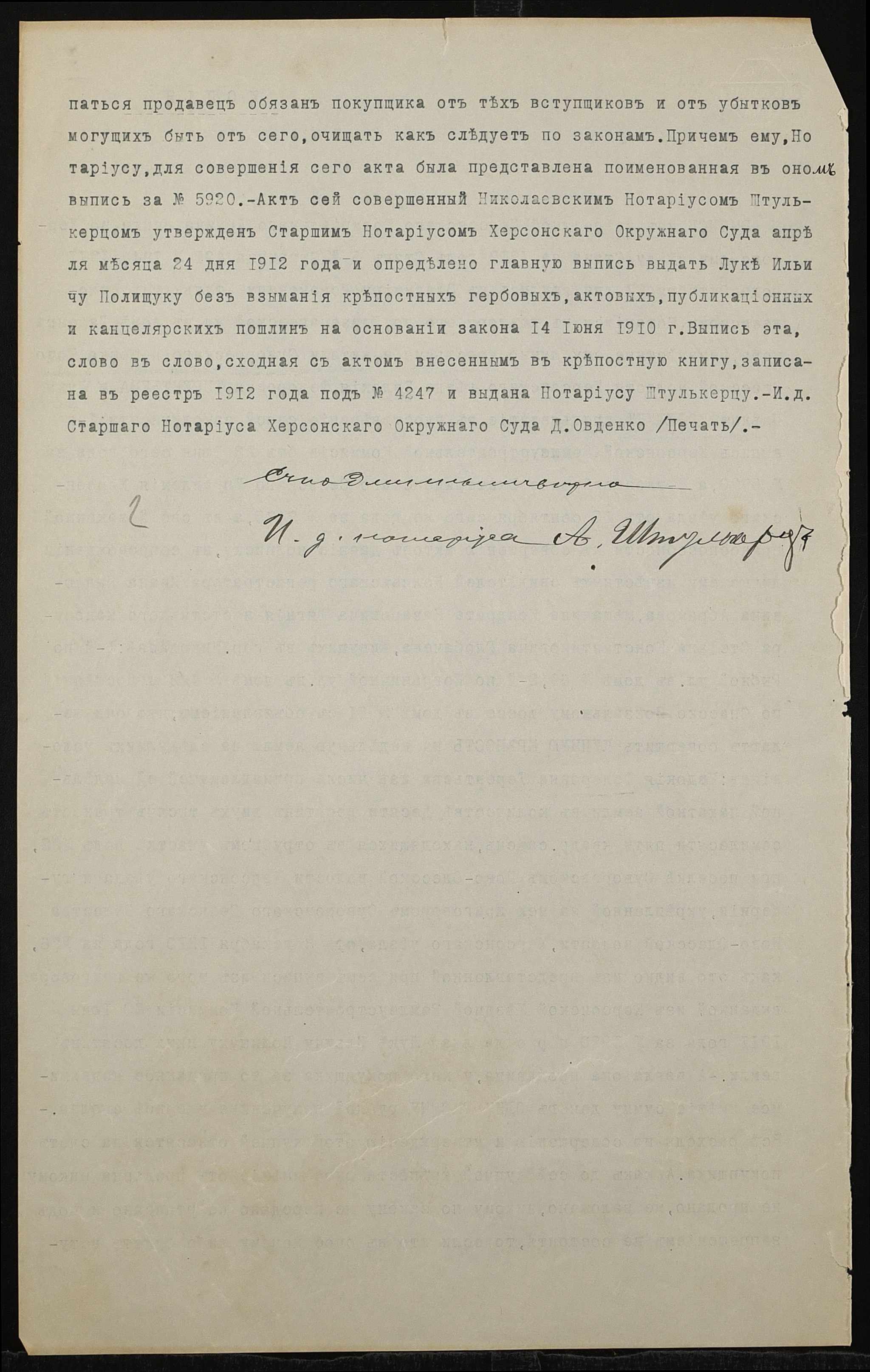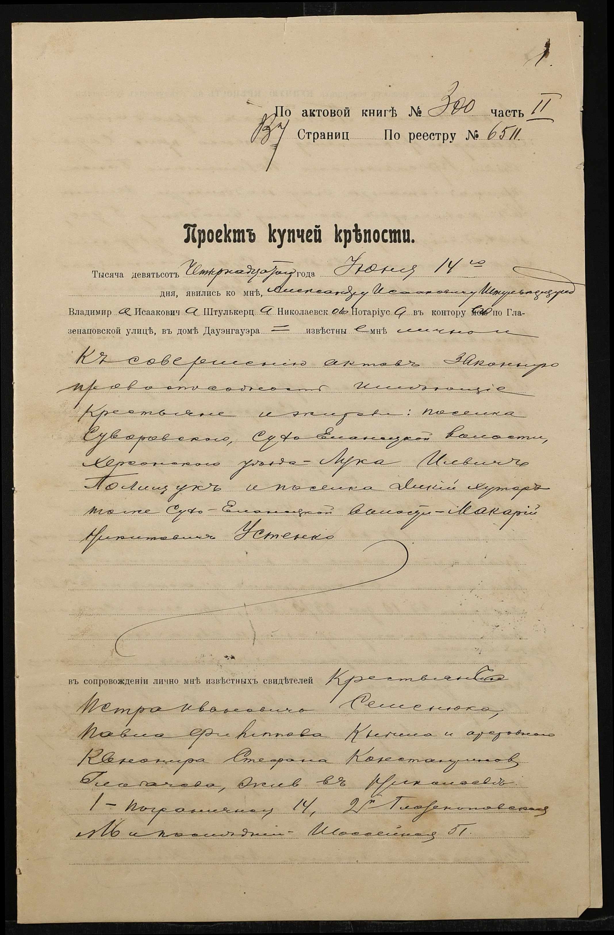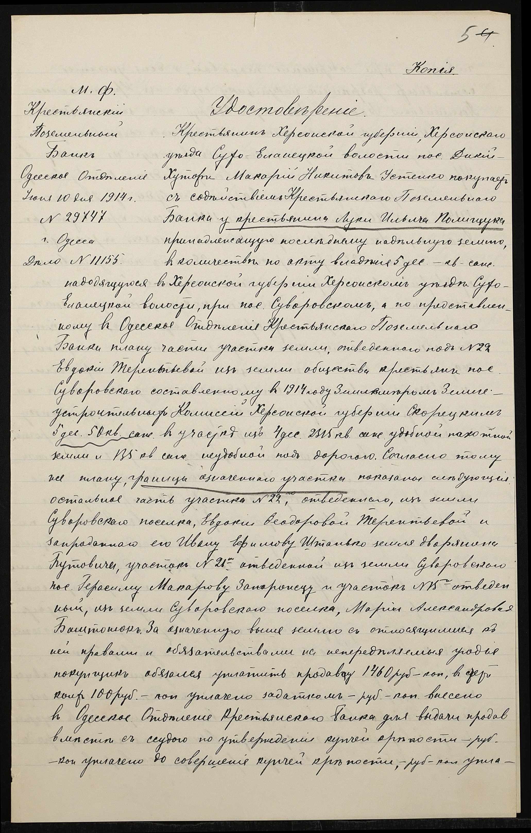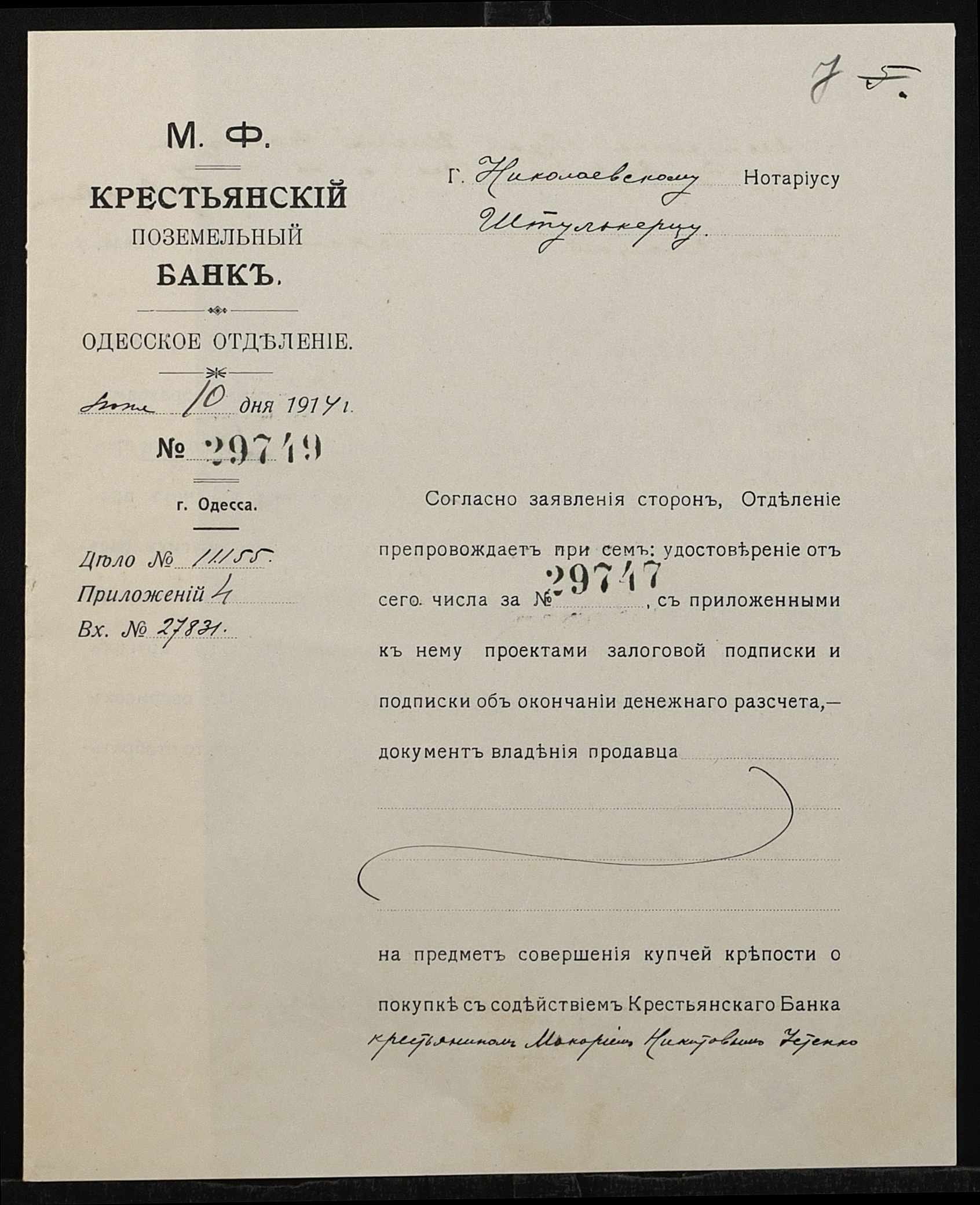• • • • Справа № 1351 “Справа про вчинення купчої про продаж землі селянином Поліщуком Лукою Іллічем (Полищуком Лукой Ильичем) на користь селянина Устенка Макарія Микитовича (Устенко Макария Никитовича) за сприяння Селянського поземельного банку”