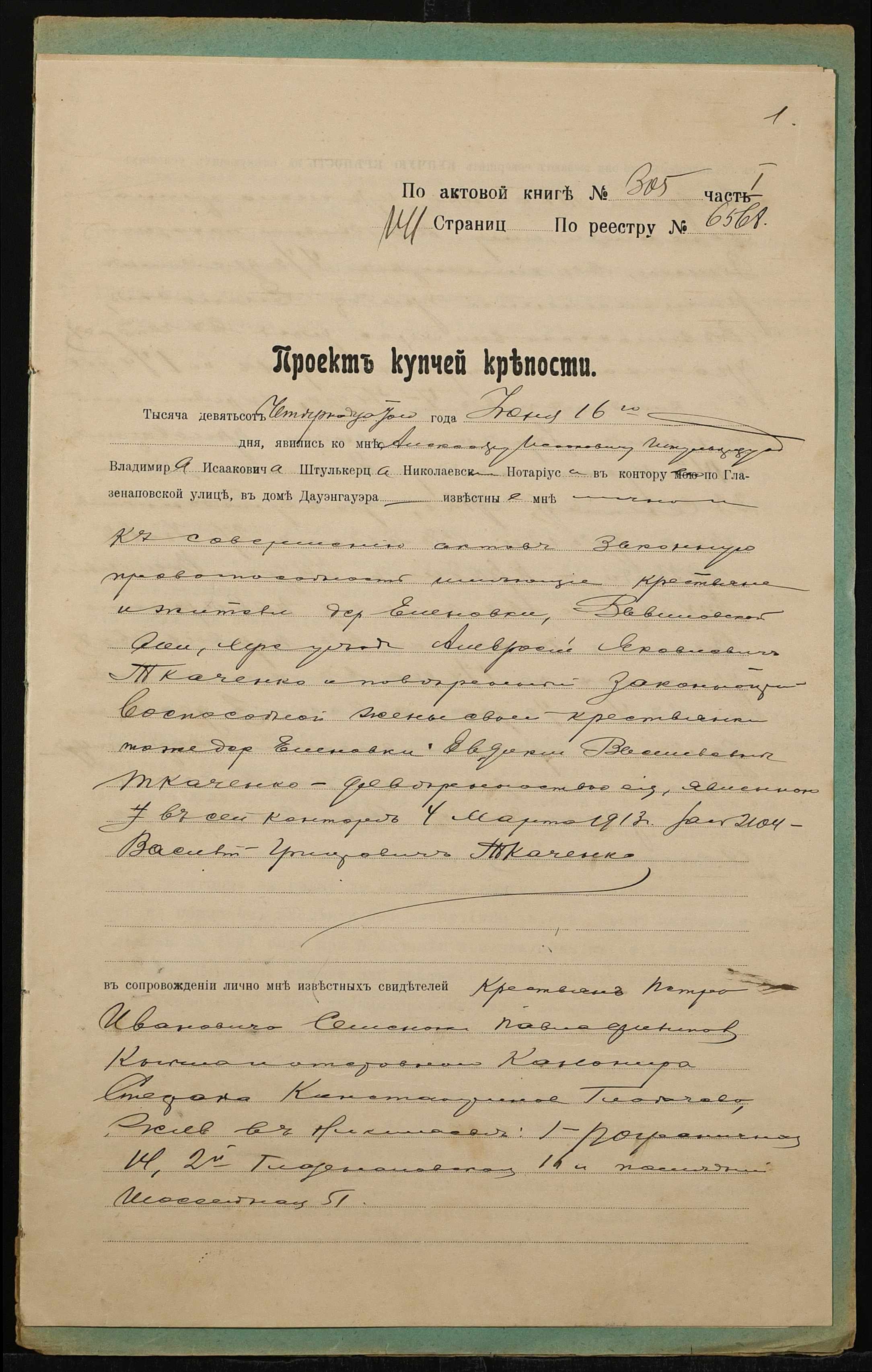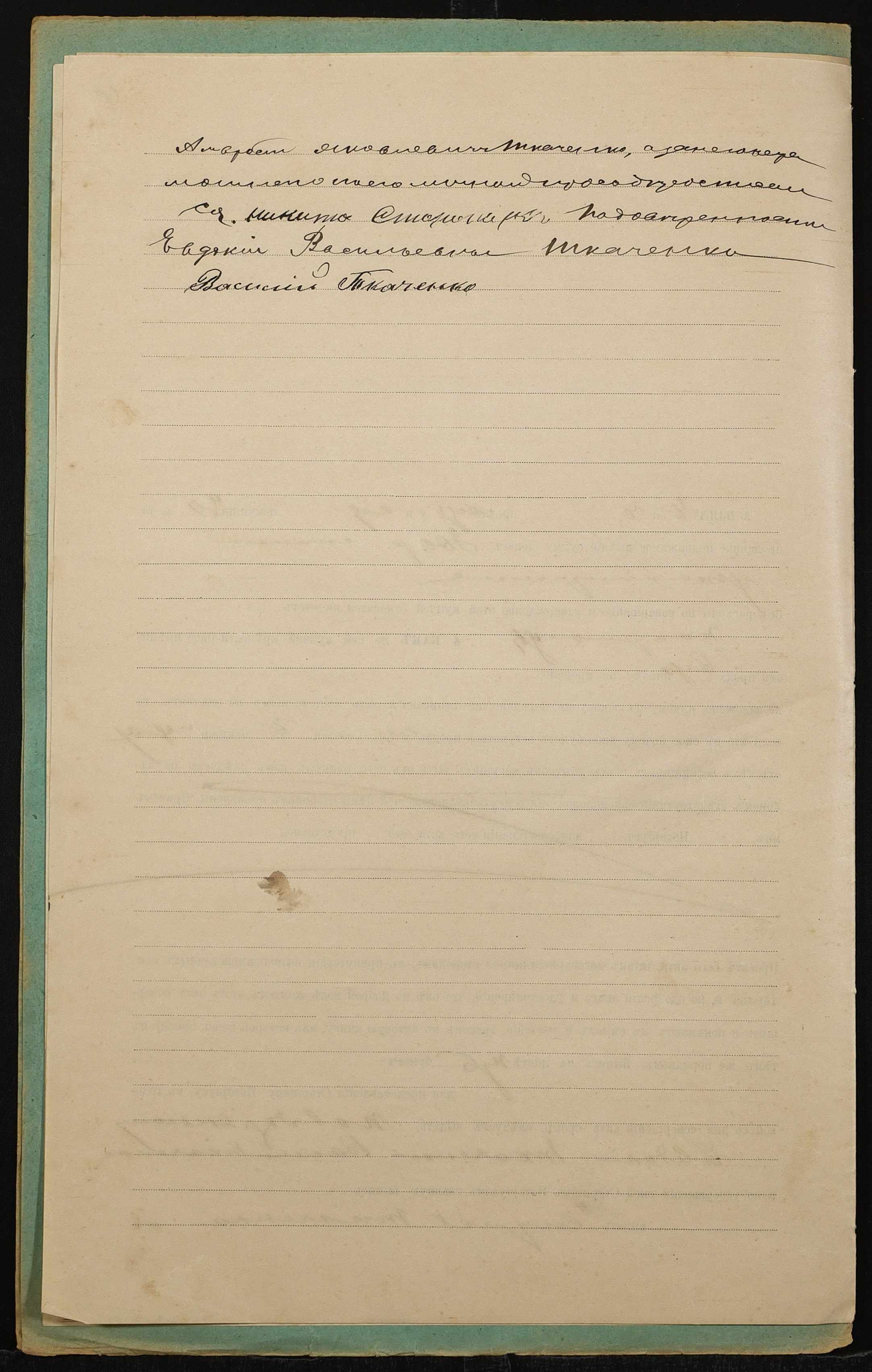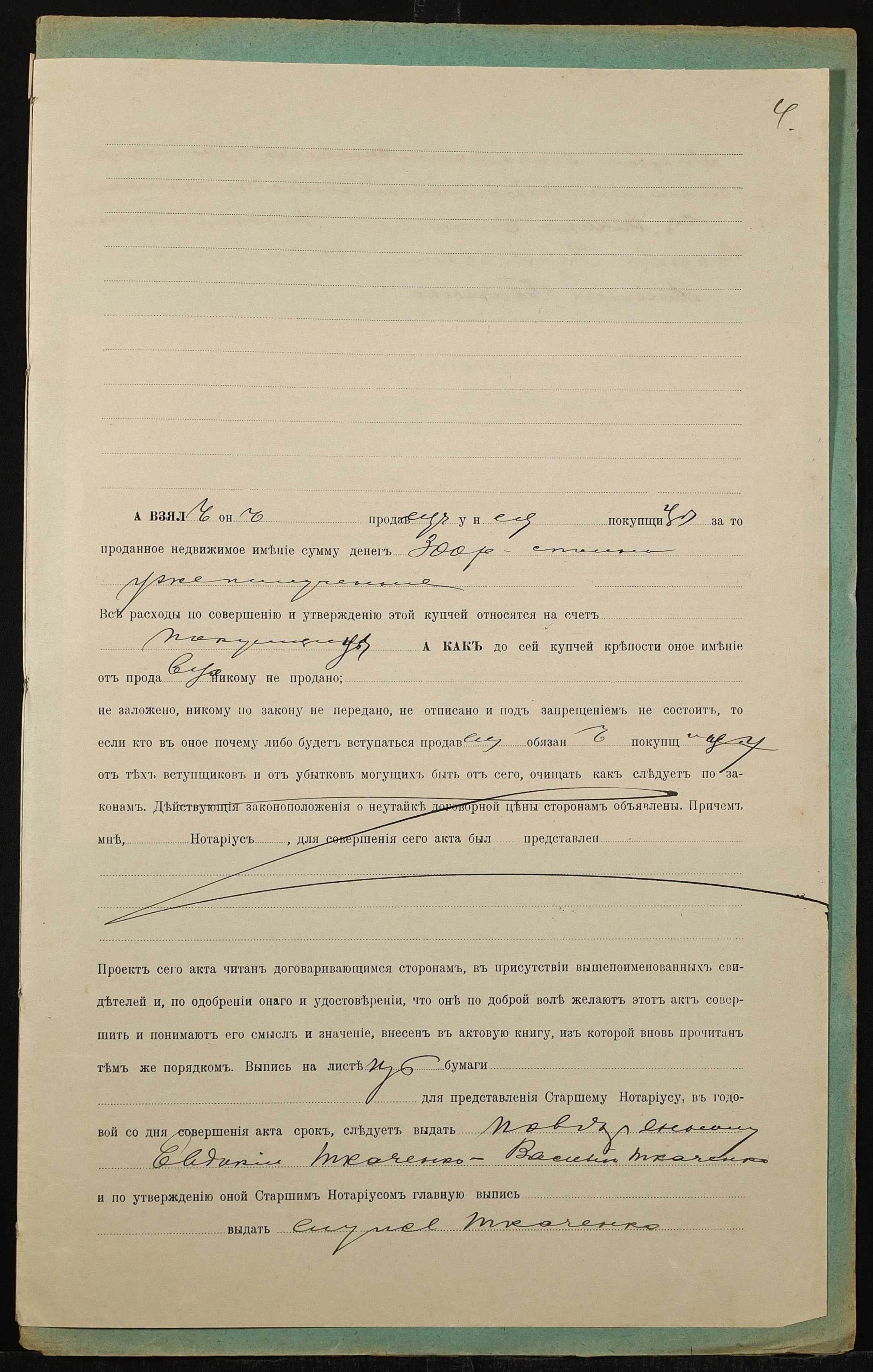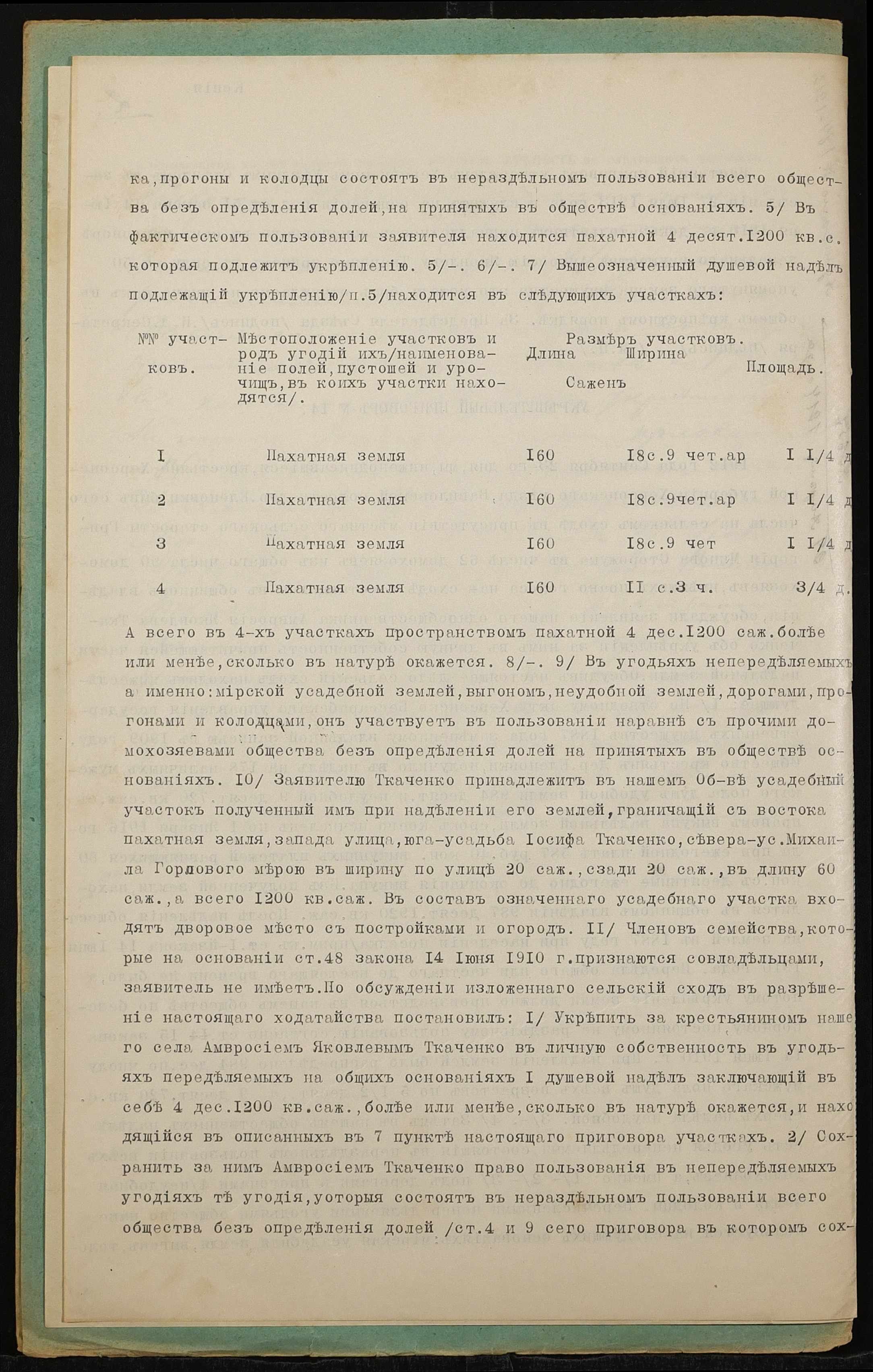 • • • • Справа № 1356 “Справа про вчинення купчої про продаж землі селянином Ткаченком Амвросієм Яковичем (Ткаченко Амвросием Яковлевичем), повіреним селянки Ткаченко Євдокії Василівни (Ткаченко Евдокии Васильевны), на користь селянина Ткаченка Василя Григоровича (Ткаченко Василия Григорьевича)”