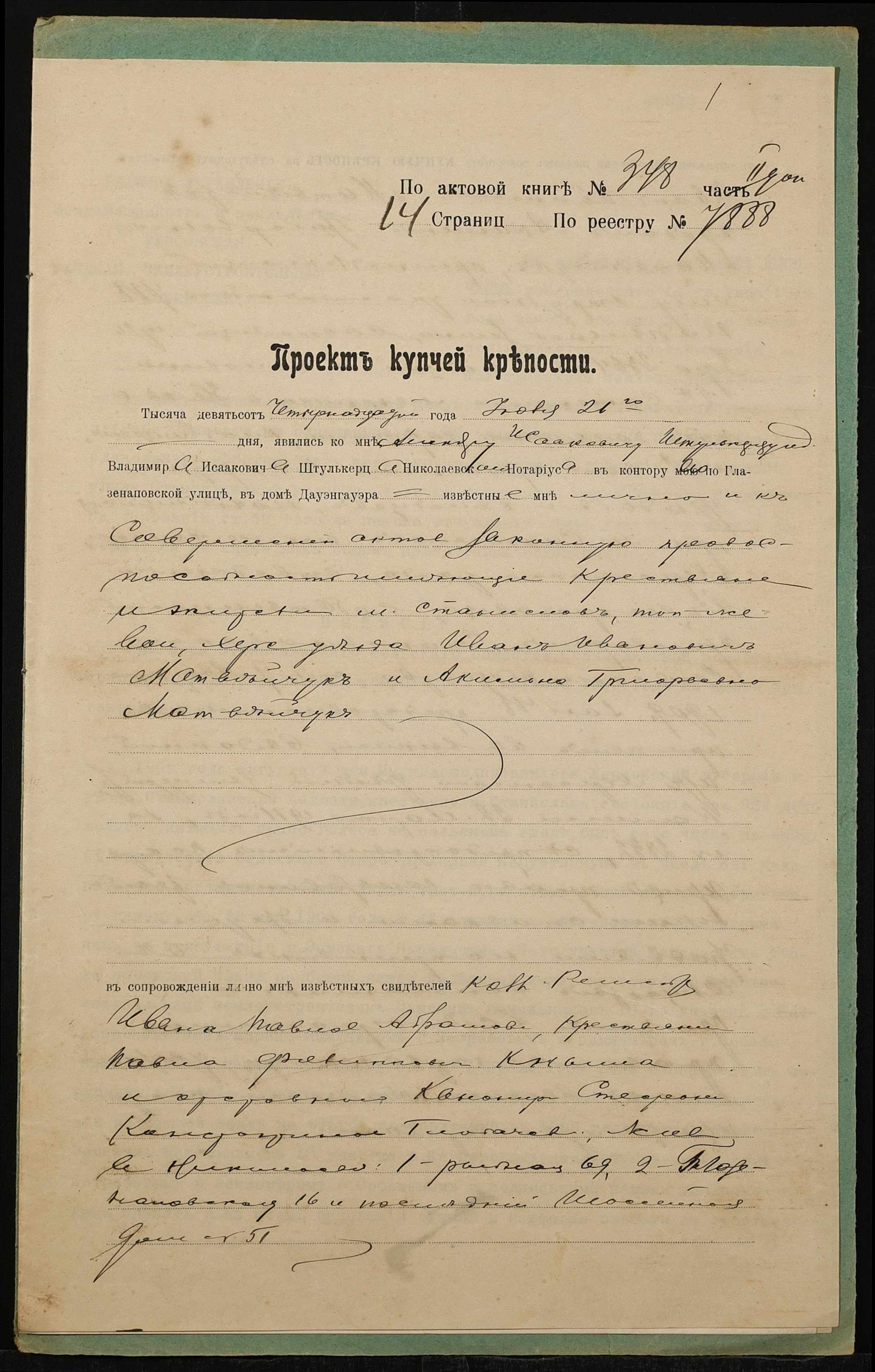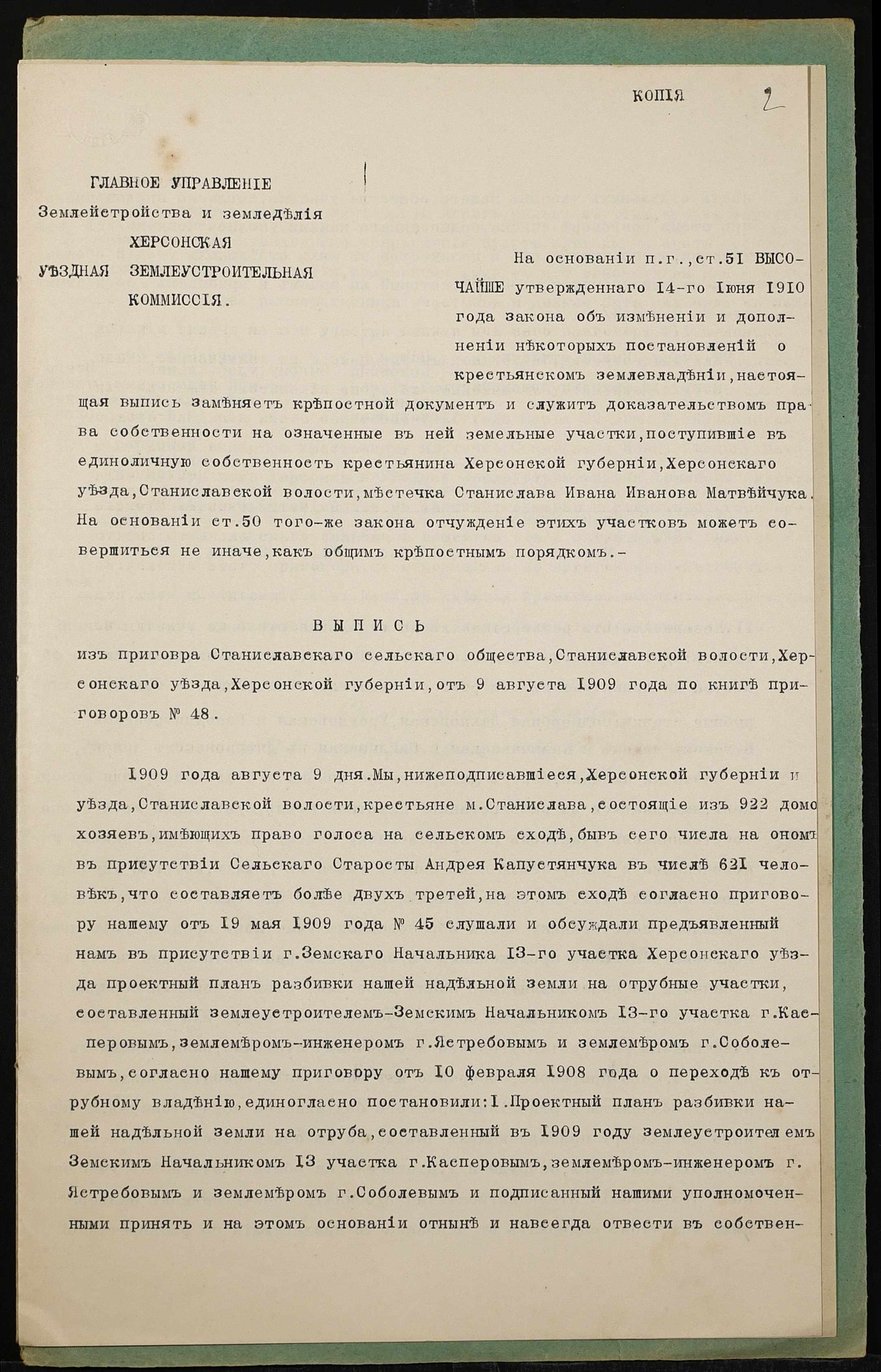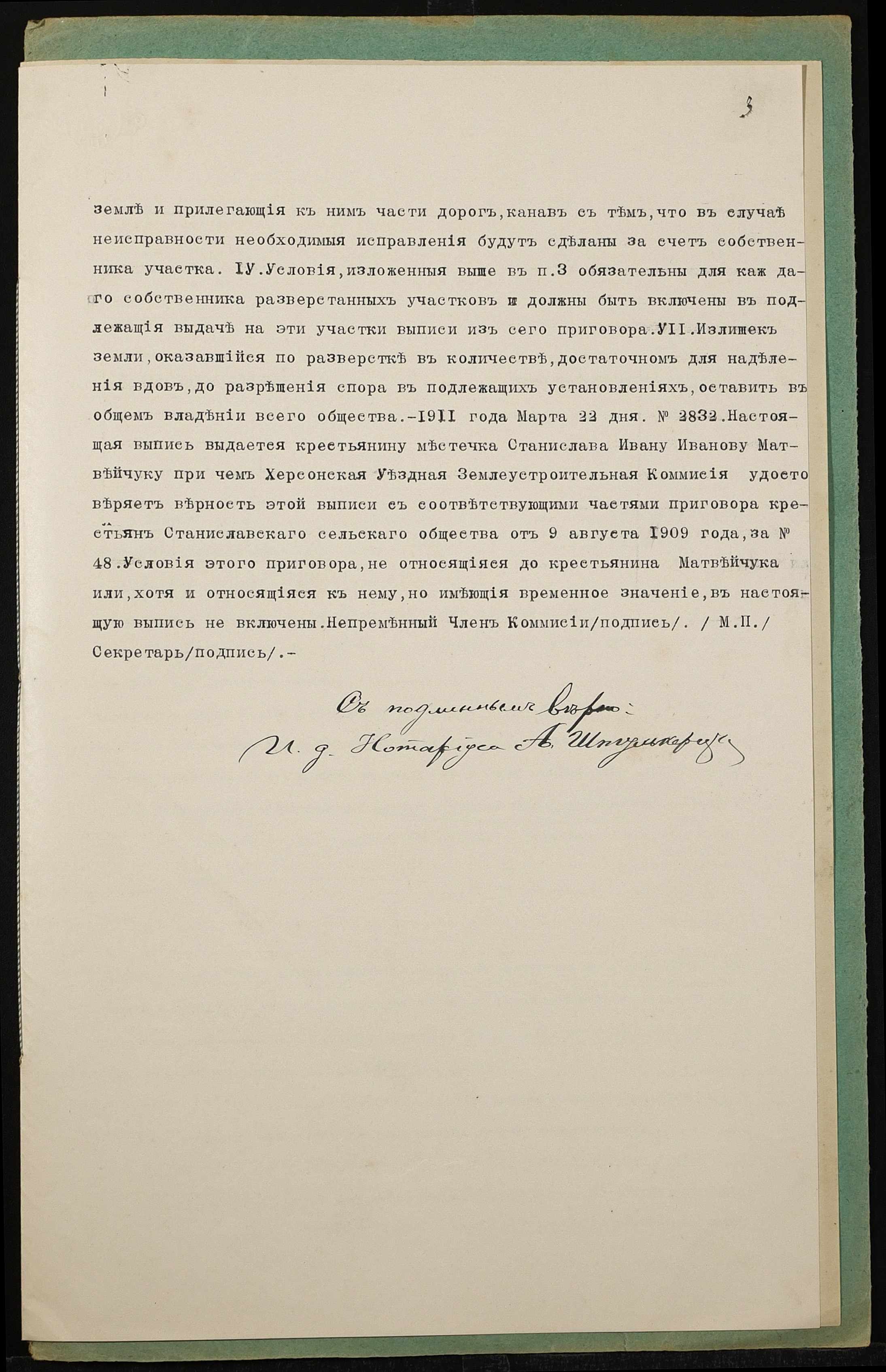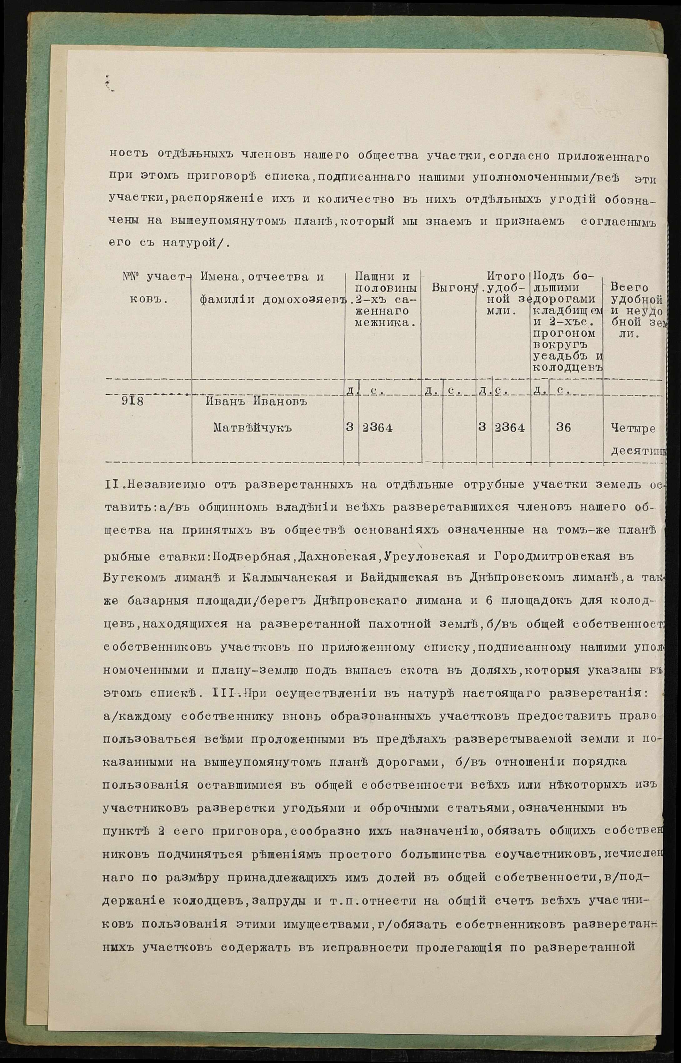 • • • • Справа № 1361 “Справа про вчинення купчої про продаж землі селянином Матвійчуком Іваном Івановичем (Матвийчуком Иваном Ивановичем) на користь селянки Матвійчук Килини Григорівни (Матвийчук Акилины Григорьевны)”