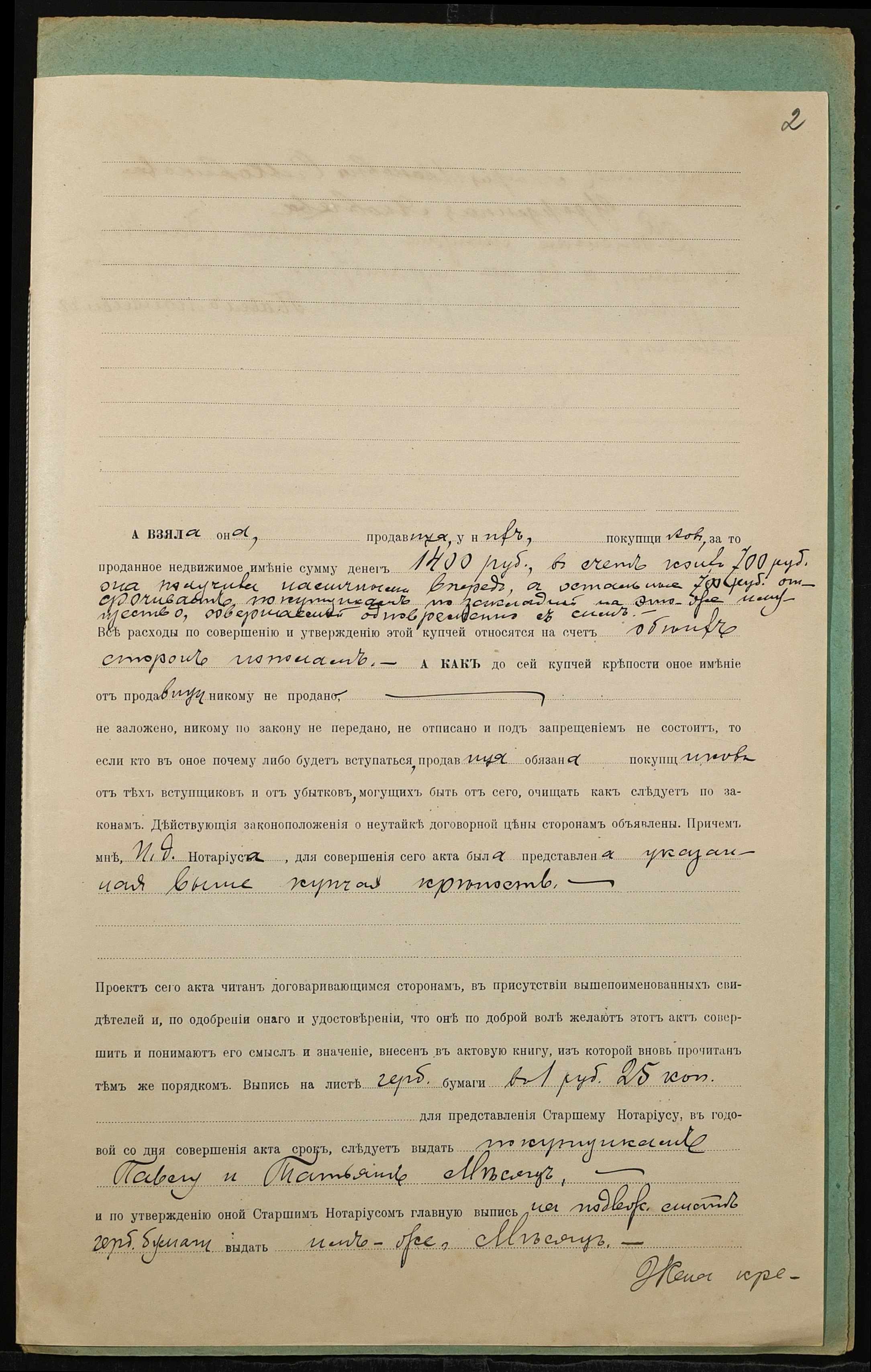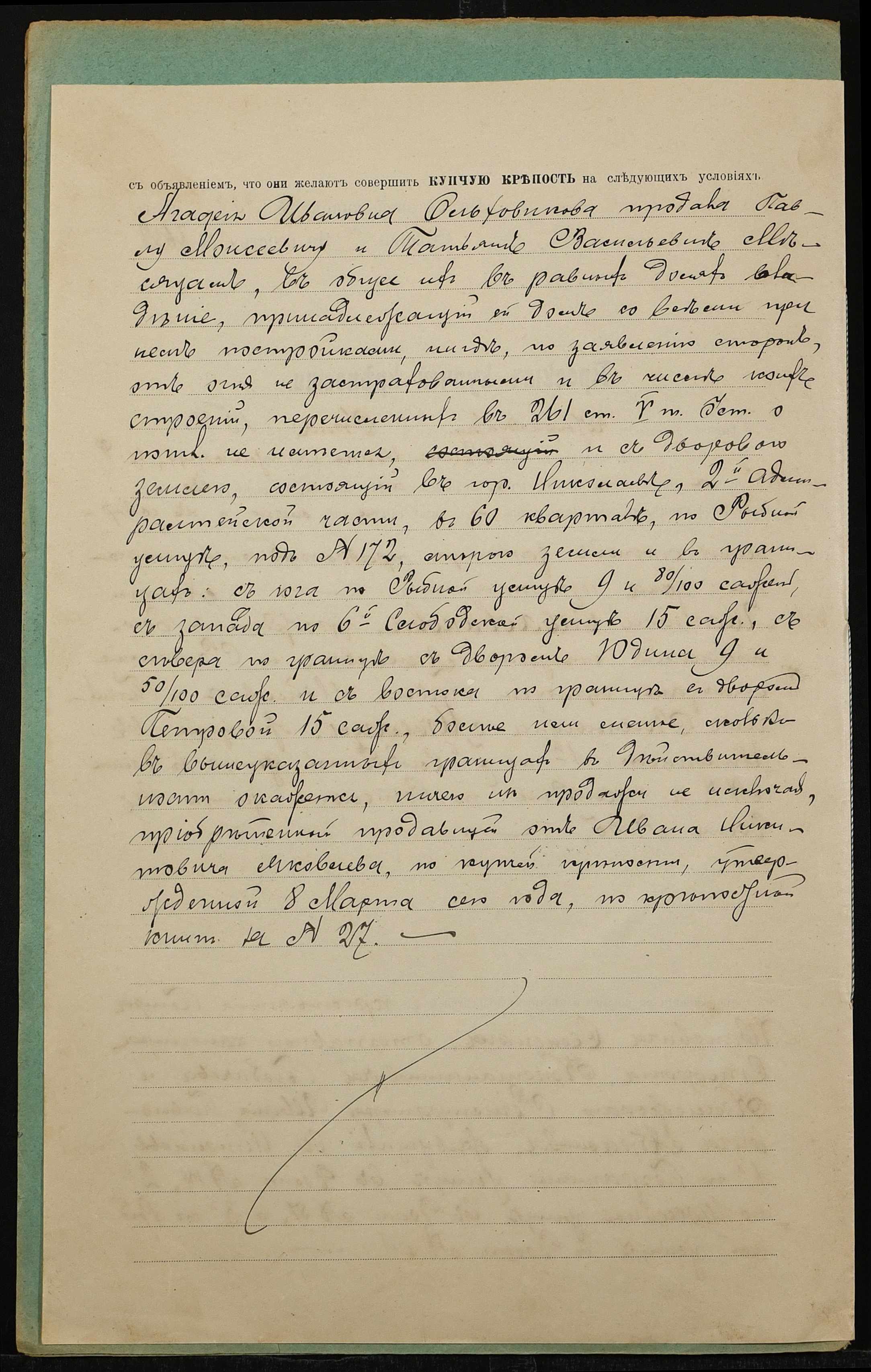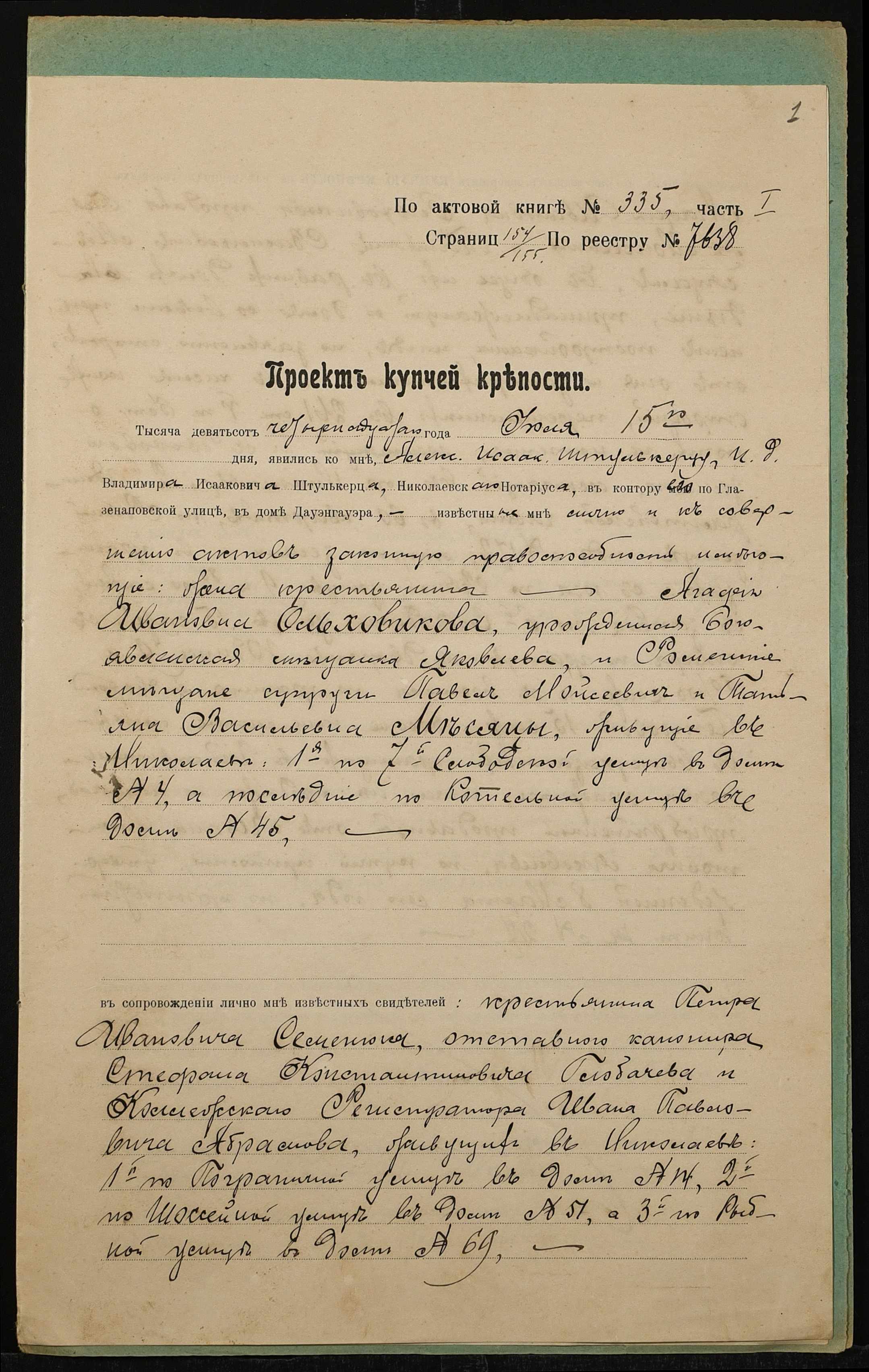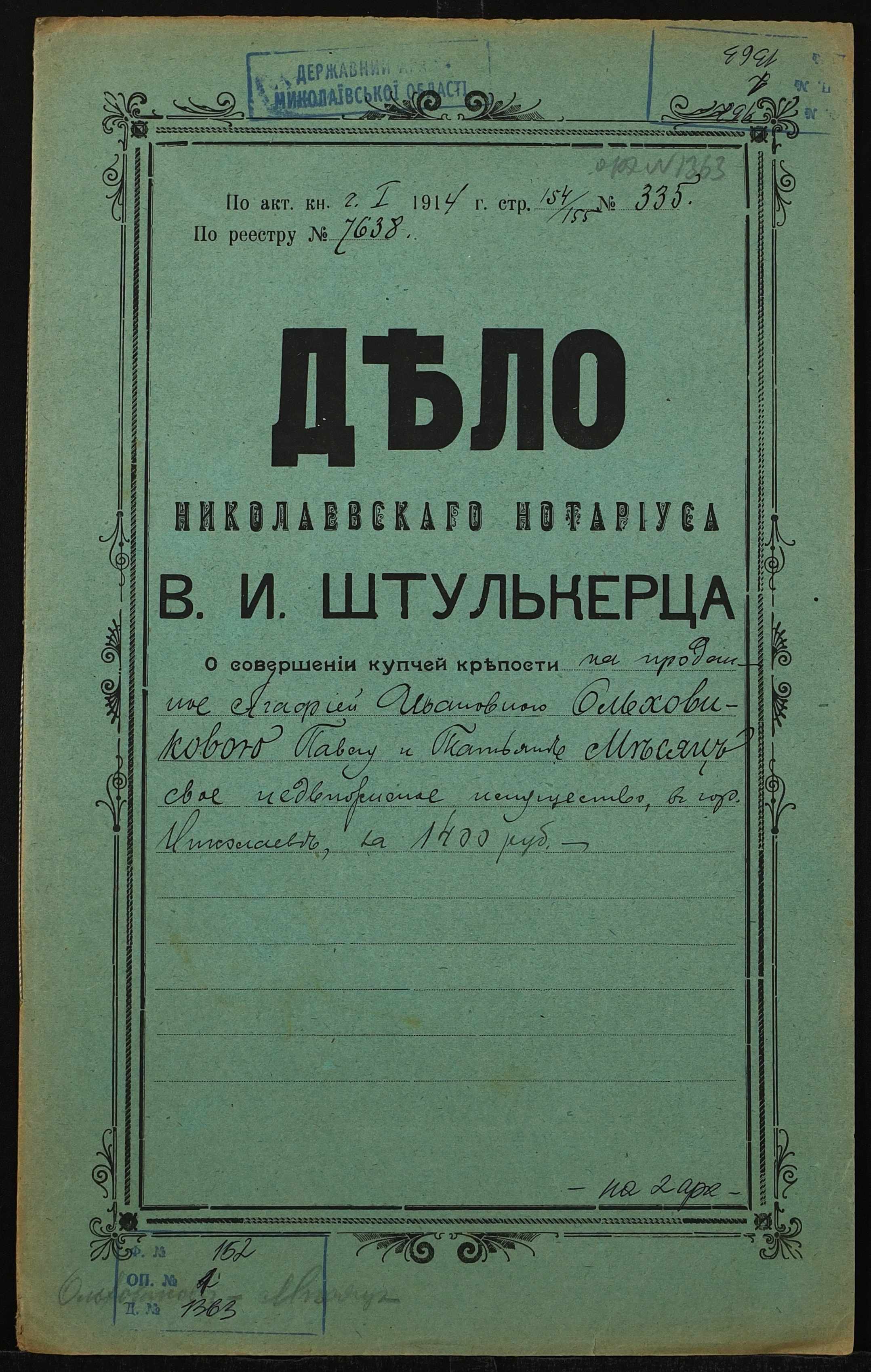 • • • • Справа № 1363 “Справа про вчинення купчої про продаж нерухомого майна у м. Миколаїв Ольховиковою Агафією Іванівною (Ольховиковой Агафьей Ивановной) на користь Мєсяца Павла Мойсейовича (Месяца Павла Моисеевича) і Мєсяц Тетяни Василівни (Месяц Татьяны Васильевны)”