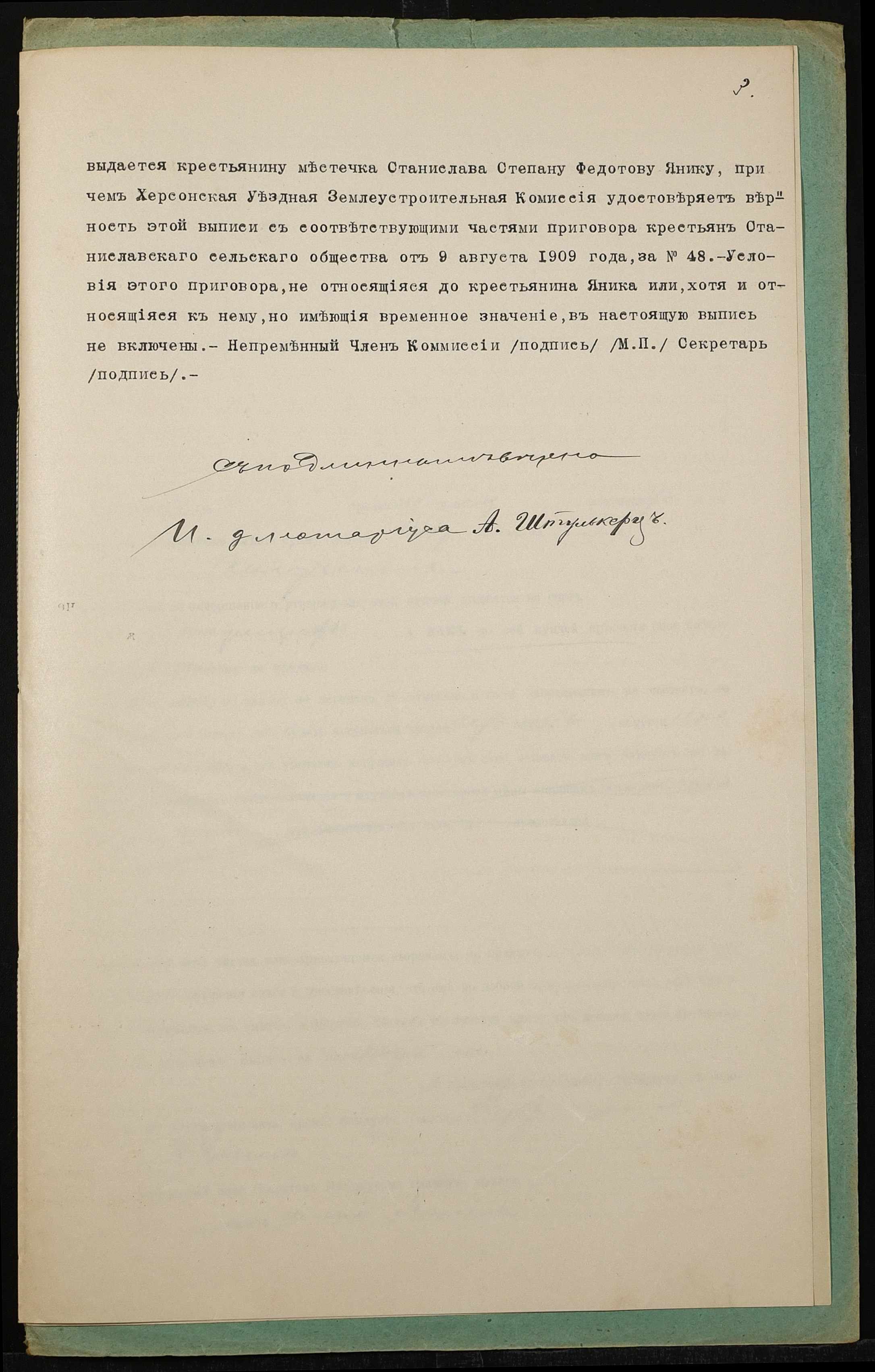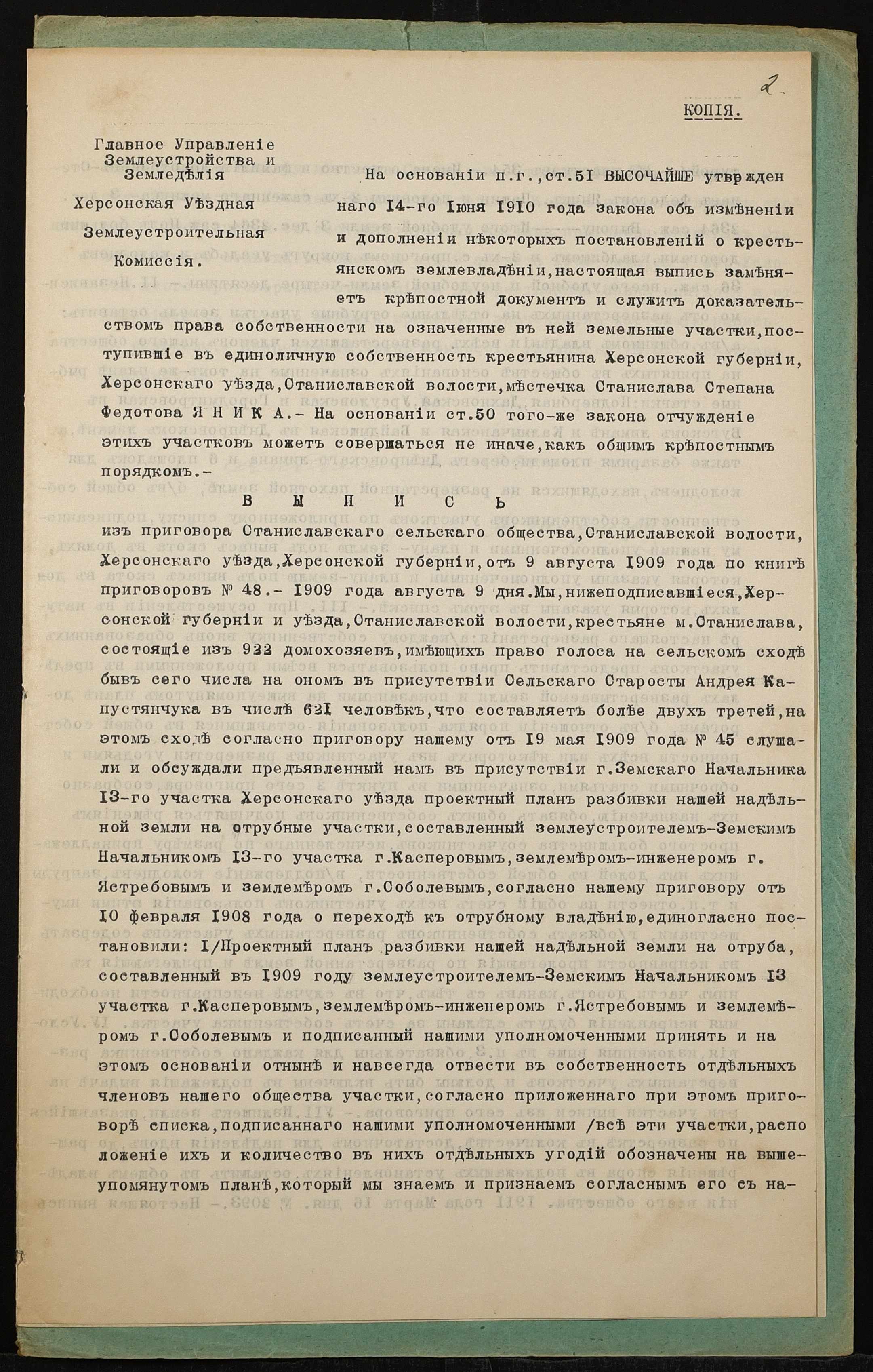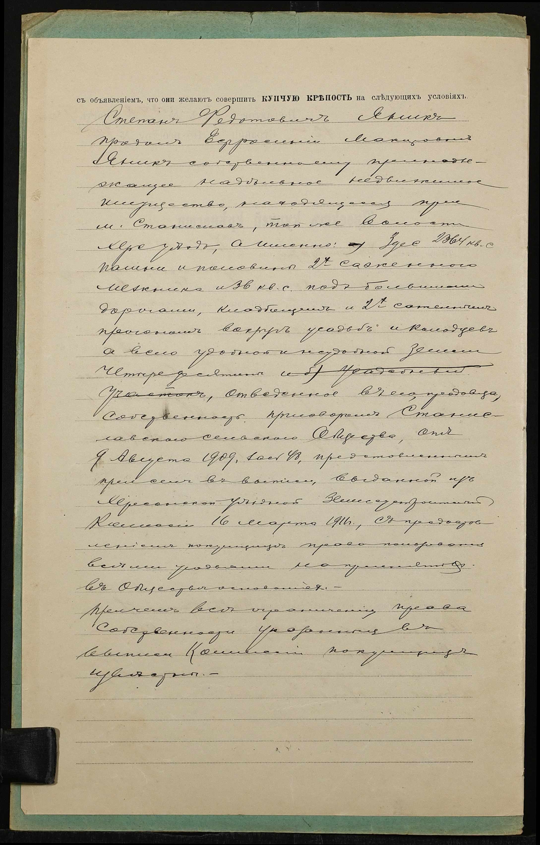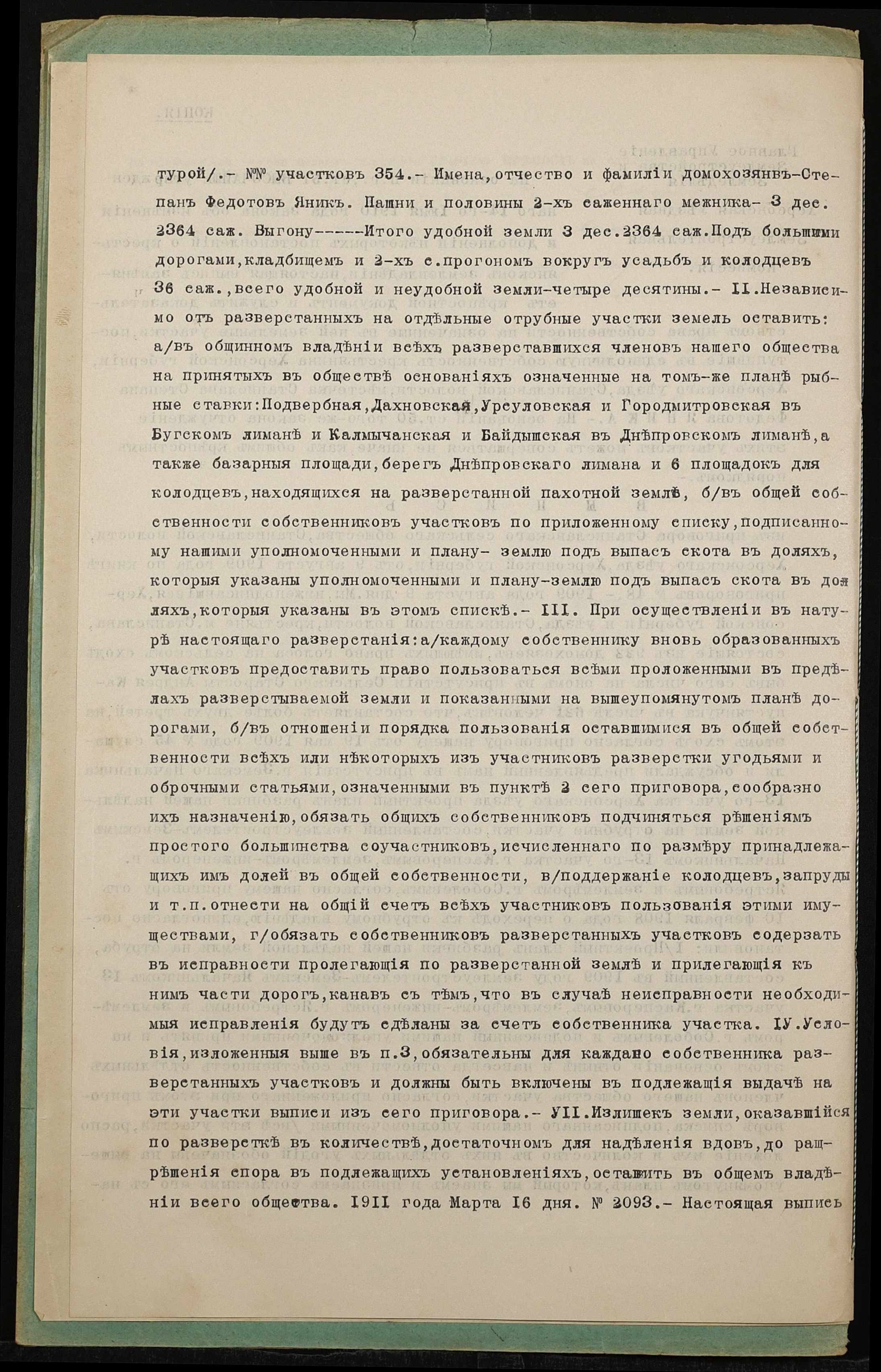 • • • • Справа № 1369 “Справа про вчинення купчої про продаж землі селянином Яніком Степаном Федотовичем (Яником Степаном Федотовичем) на користь селянки Янік Єфросинії Макарівни (Яник Ефросинии Макаровны)”