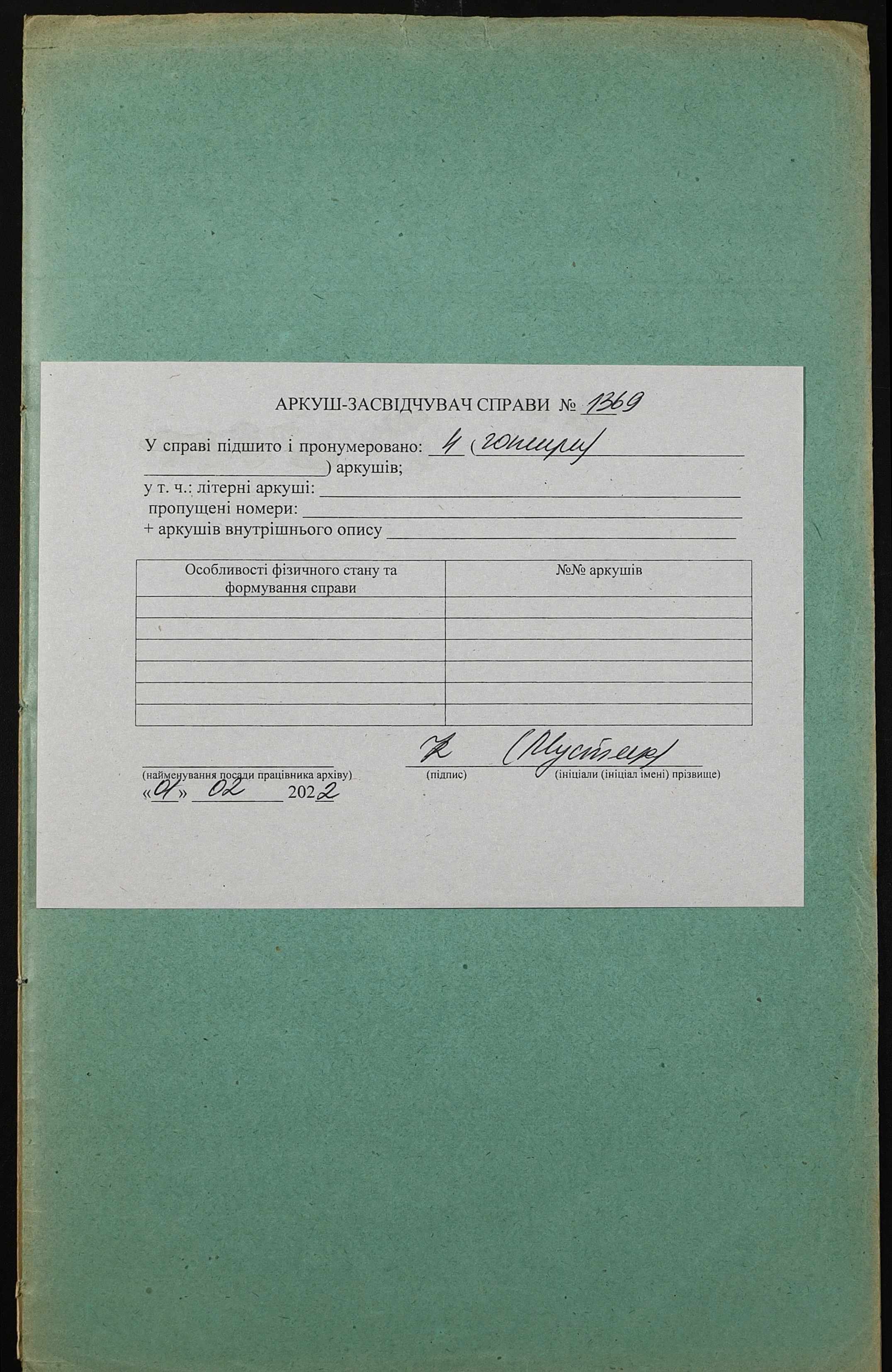 Фонд 152 / Опис 1 / Справа 1369