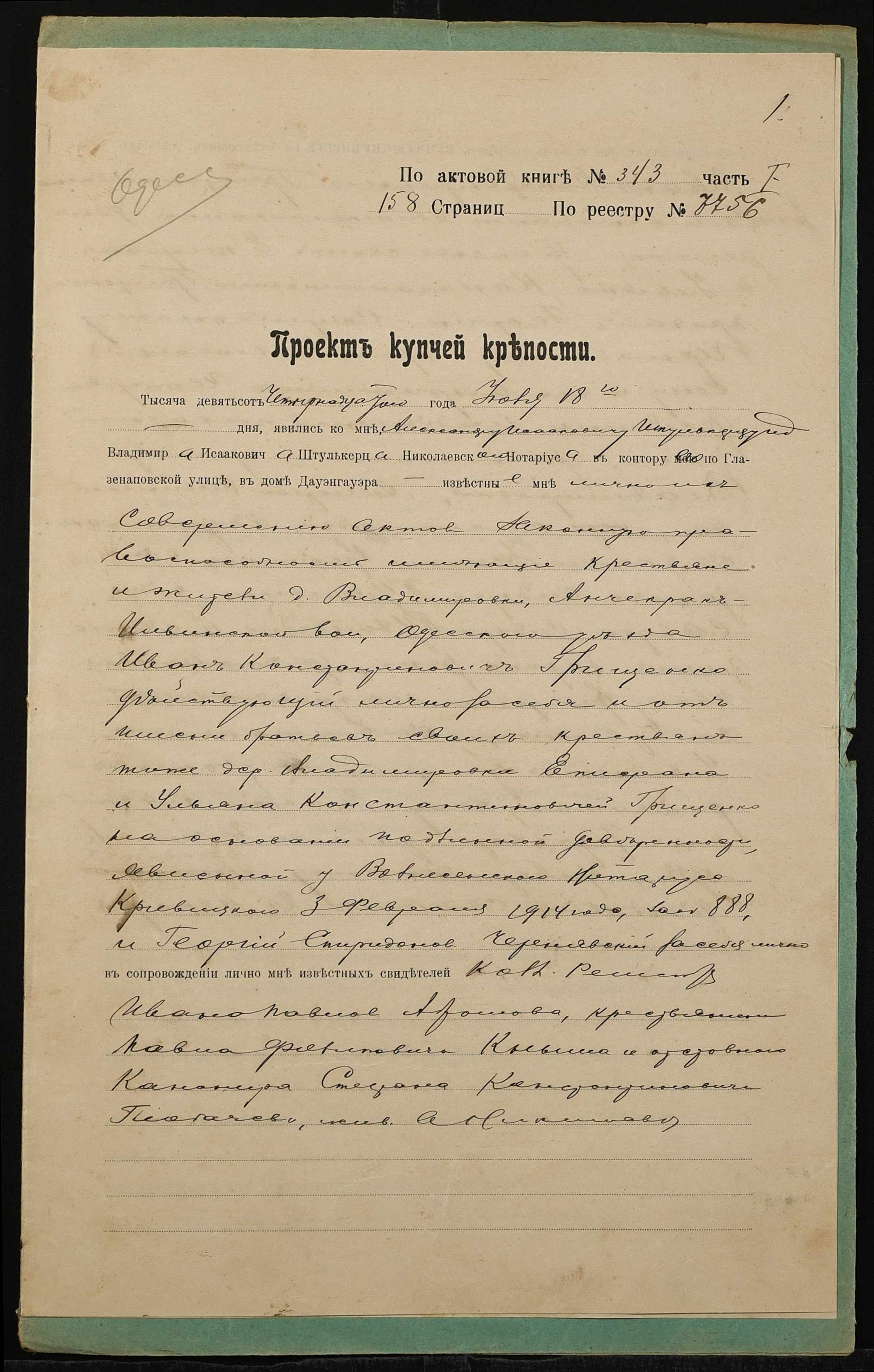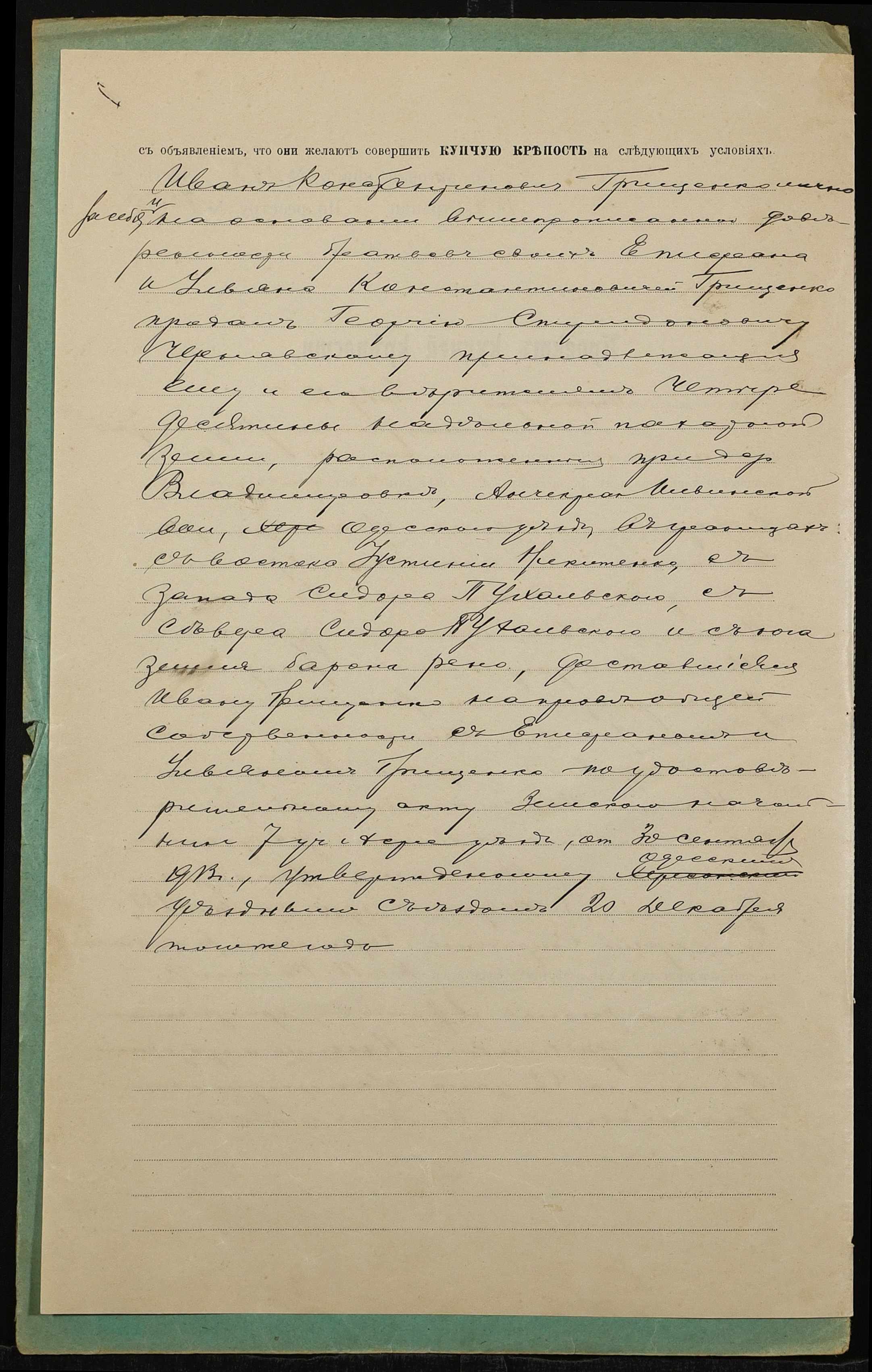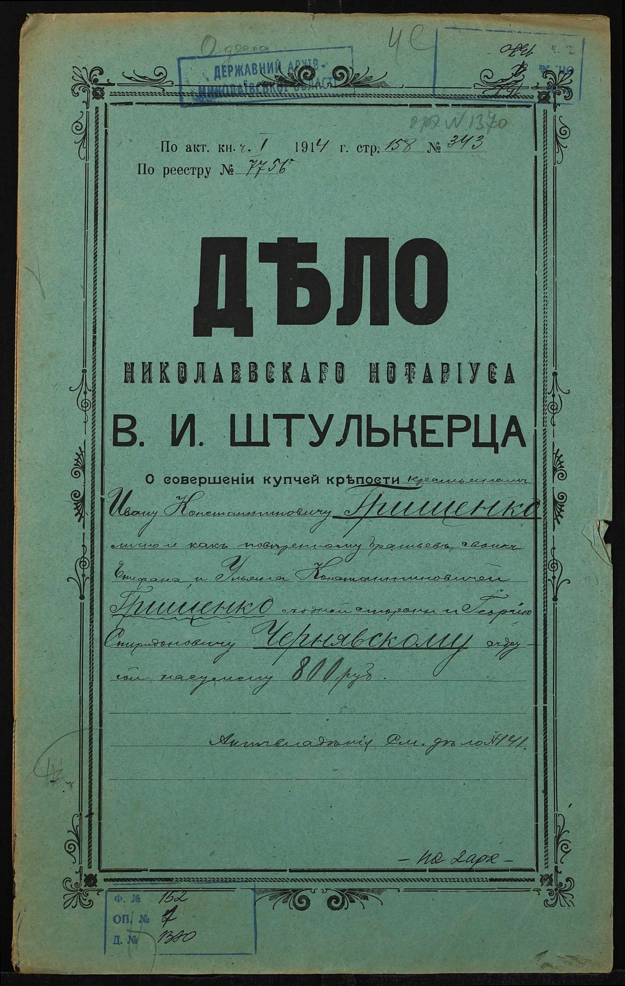 • • • • Справа № 1370 “Справа про вчинення купчої про продаж землі селянином Грищенком Іваном Костянтиновичем (Грищенко Иваном Константиновичем), повіреним його братів Грищенків Єпіфана і Іуліана Костянтиновичів (Грищенко Епифана и Иулиана Константиновичей), на користь селянина Чернявського Георгія Спиридоновича (Чернявского Георгия Спиридоновича)”