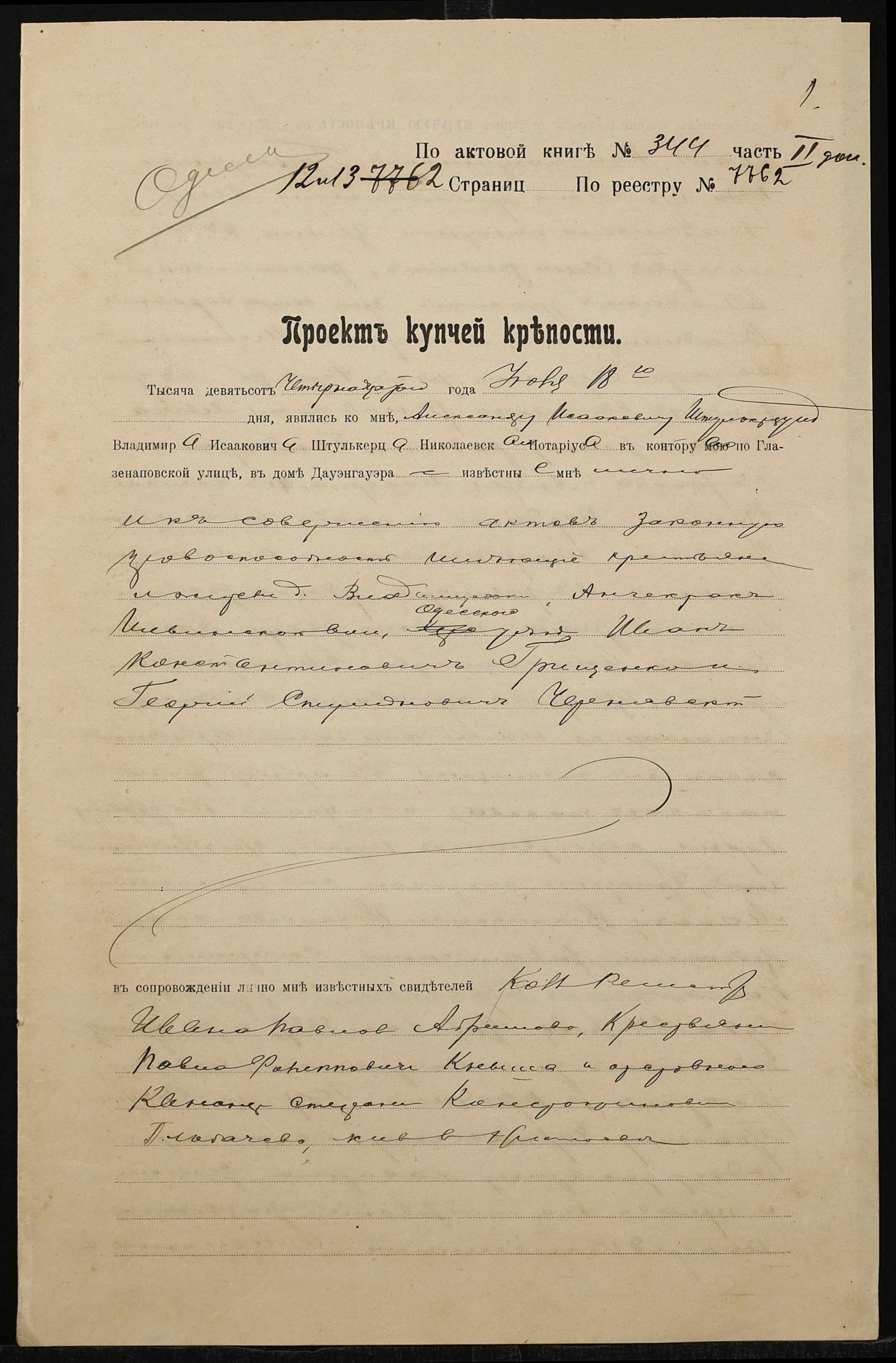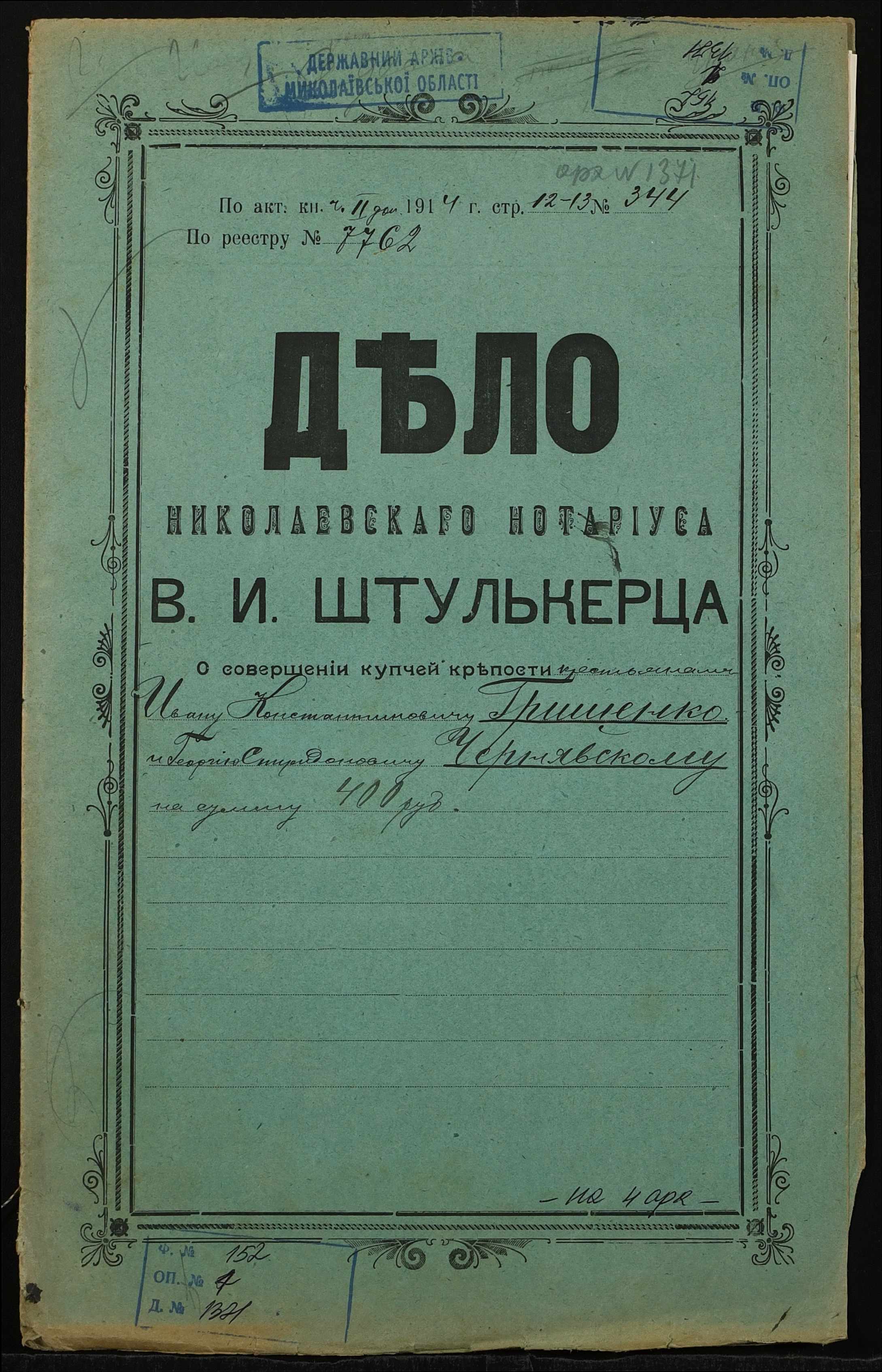 ◦ ◦ Фонд № 152 “Контора миколаївського нотаріуса Херсонського окружного суду Штулькерца Володимира Ісааковича”