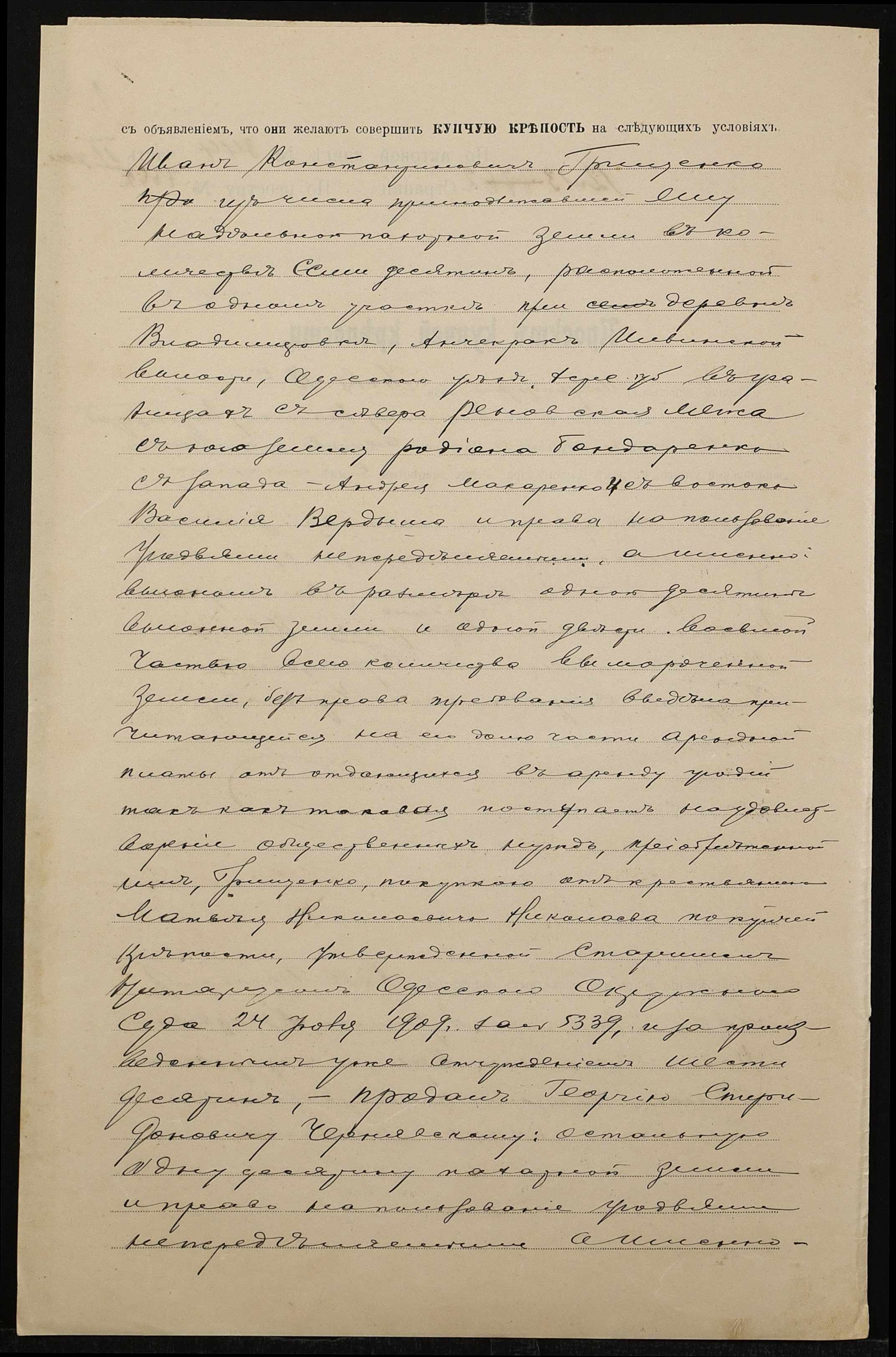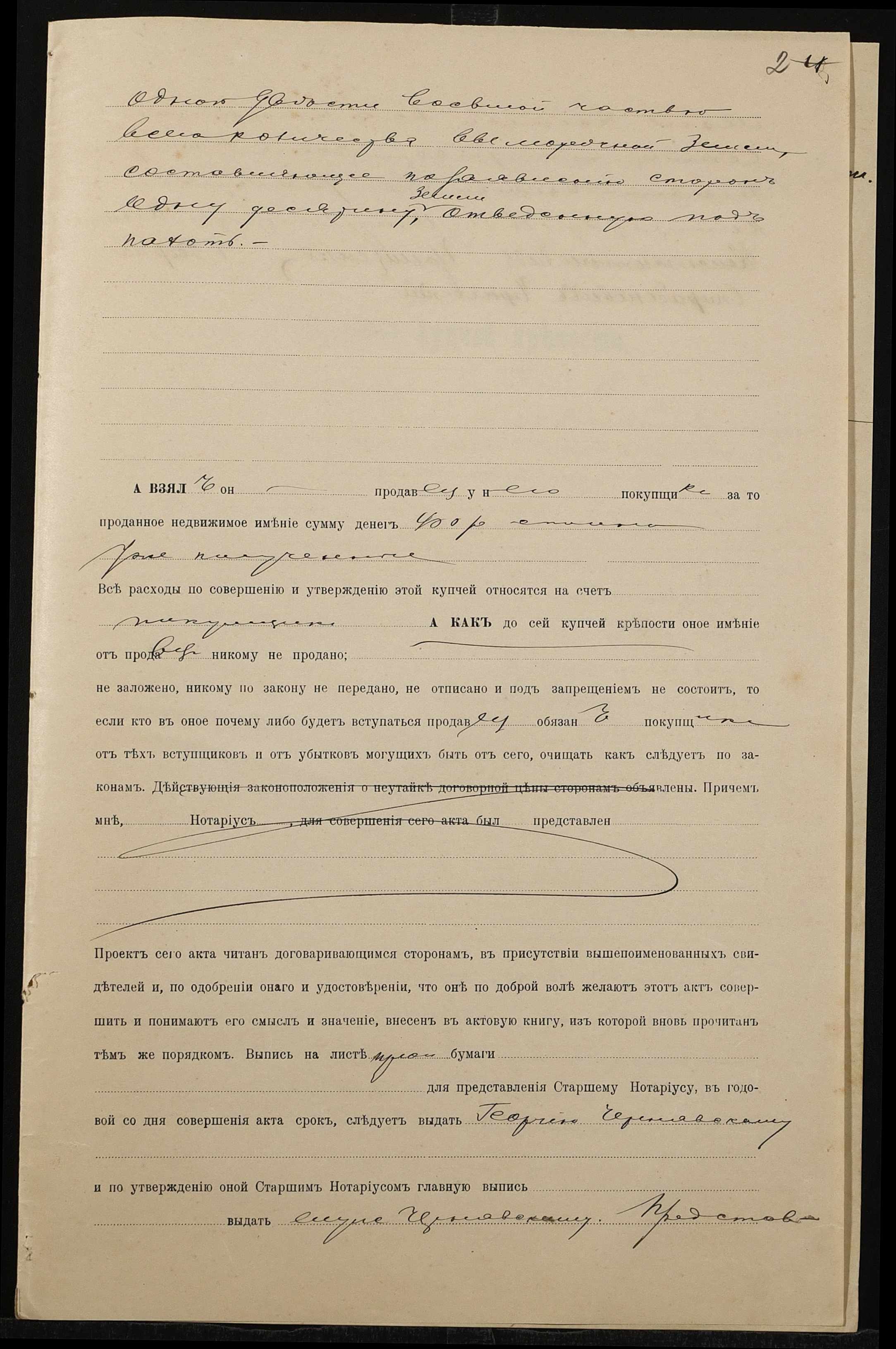 • • • • Справа № 1371 “Справа про вчинення купчої про продаж землі селянином Грищенком Іваном Костянтиновичем (Грищенко Иваном Константиновичем) на користь селянина Чернявського Георгія Спиридоновича (Чернявского Георгия Спиридоновича)”