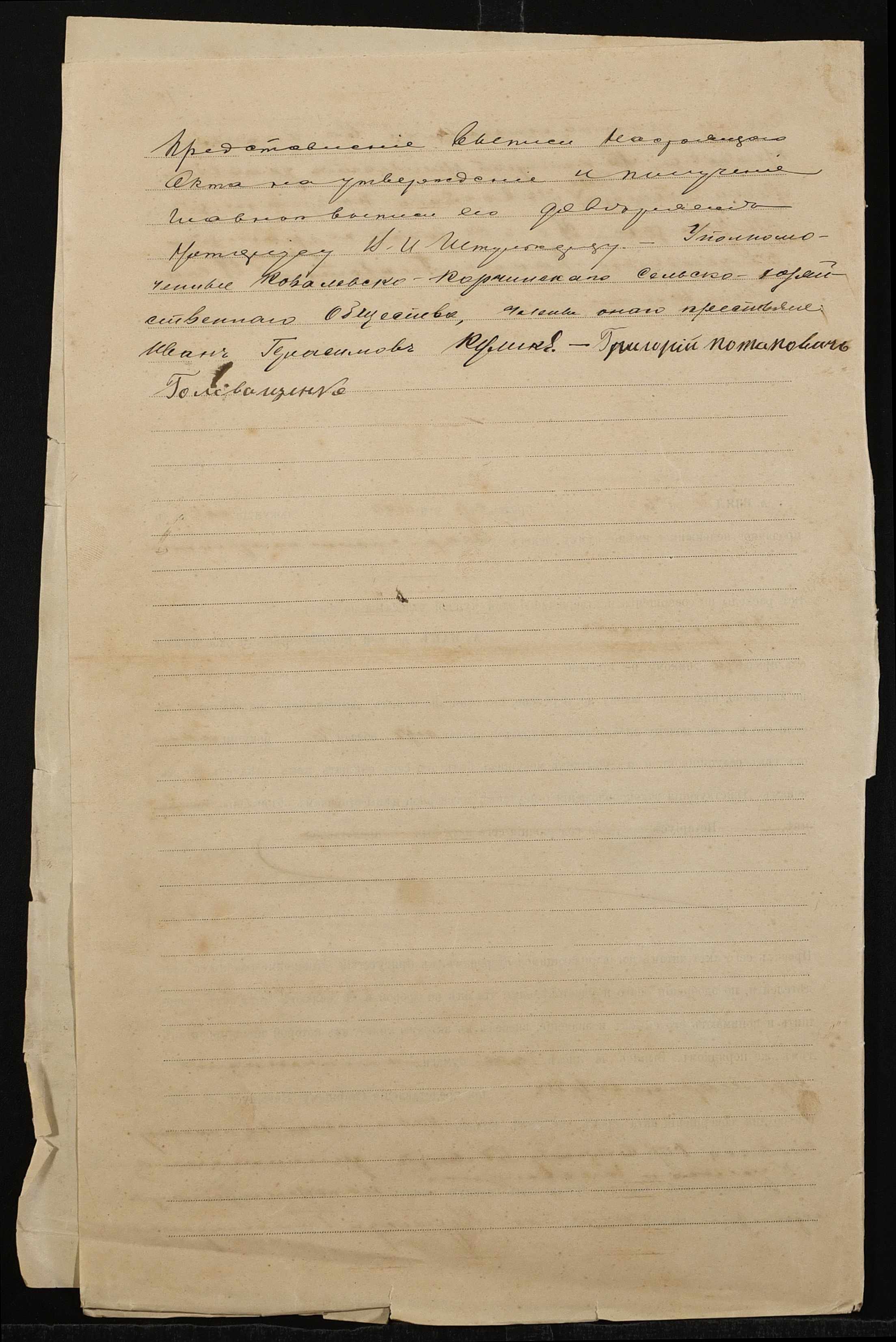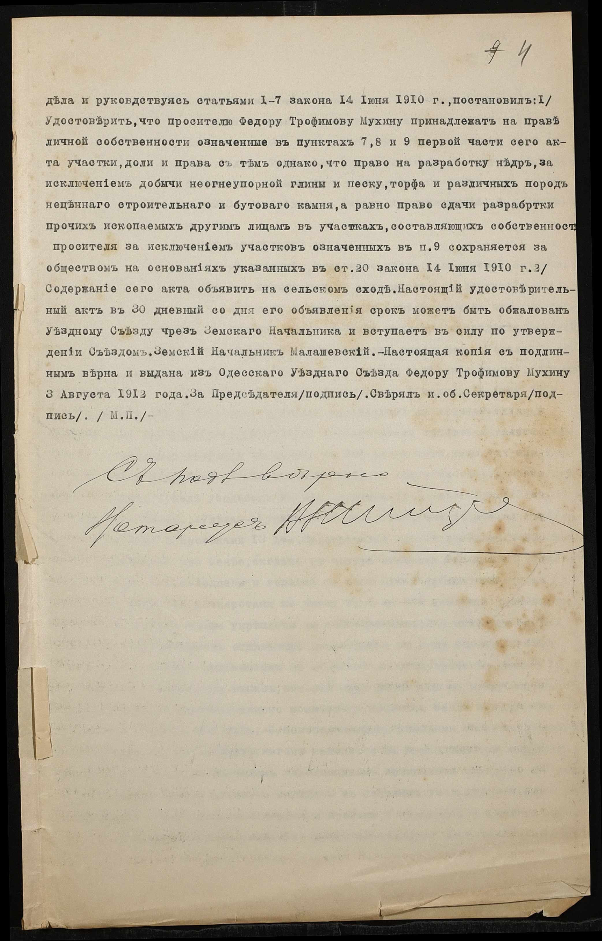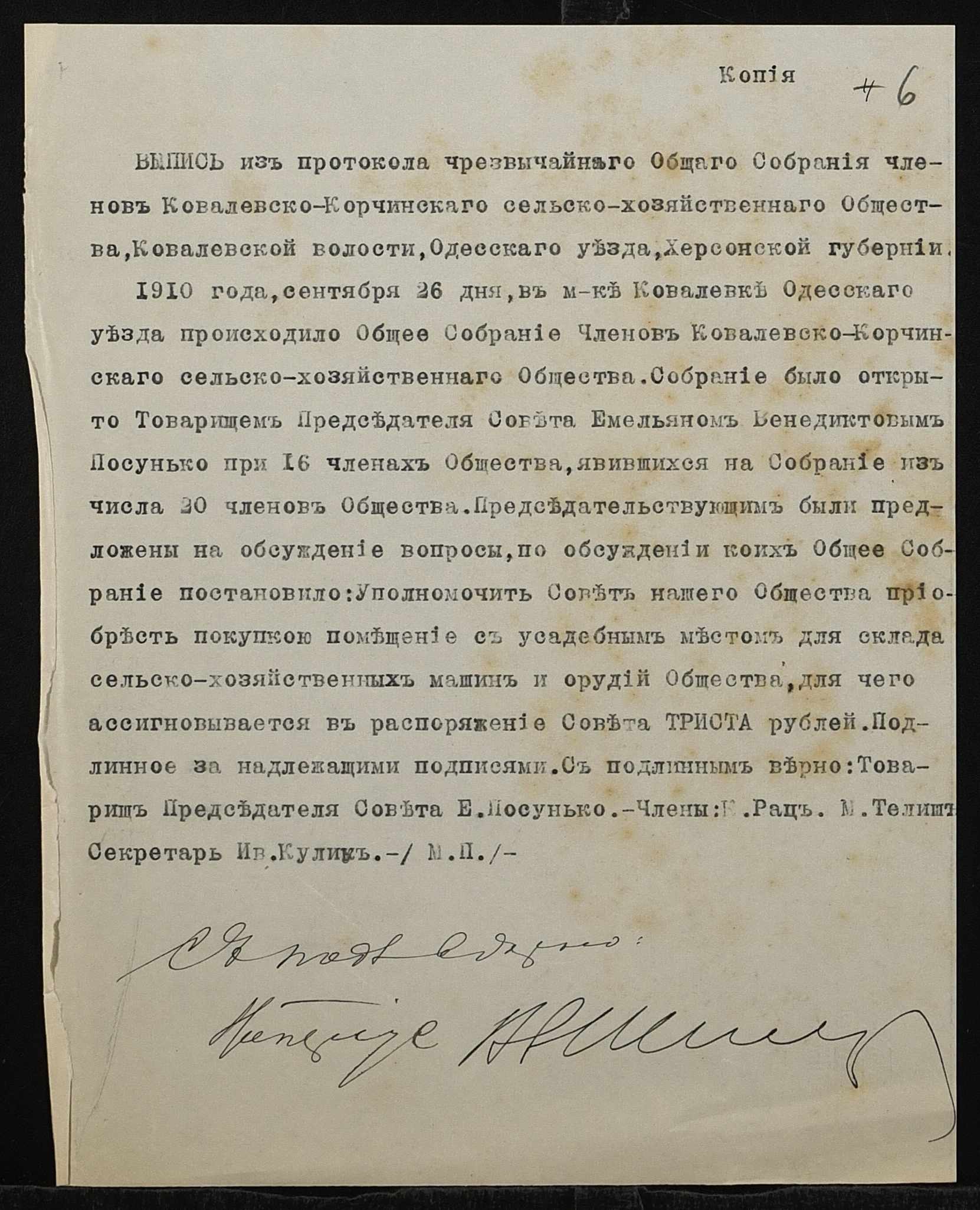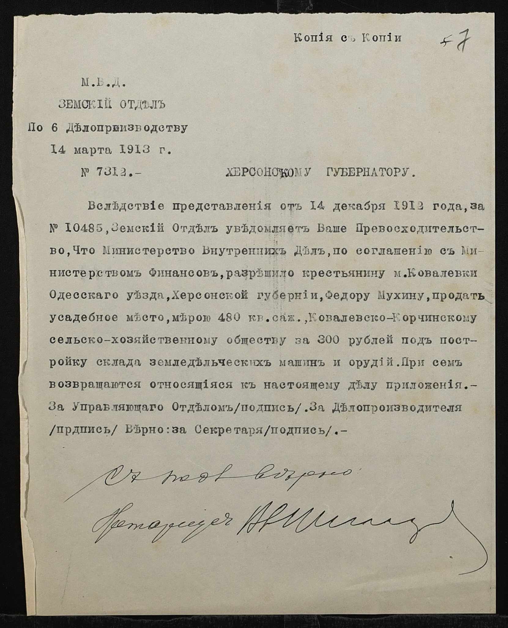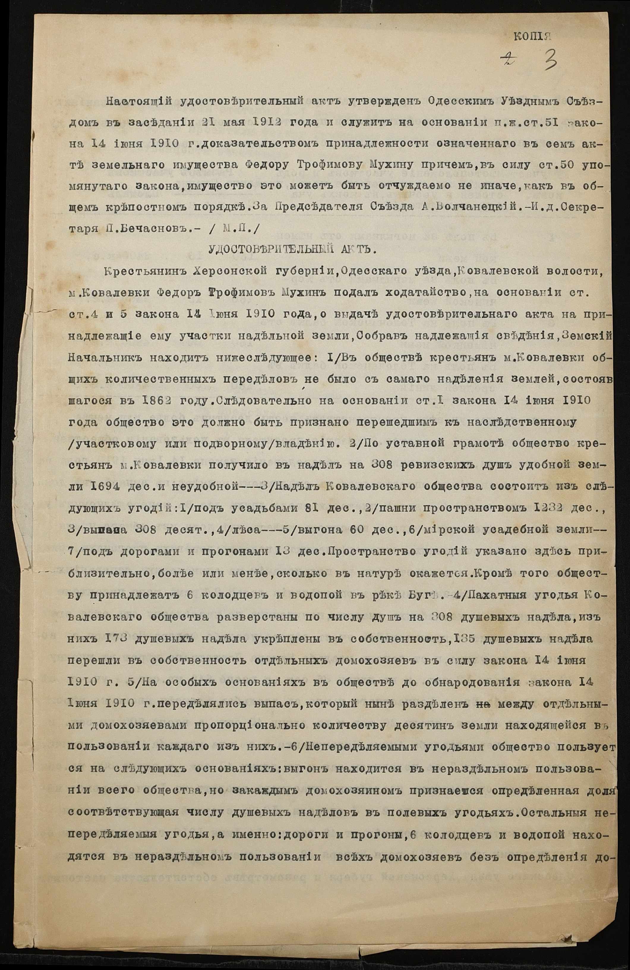 • • • • Справа № 1377 “Справа про вчинення купчої про продаж землі селянином Мухіним Федором Трохимовичем (Мухиным Федором Трофимовичем) на користь Ковалівсько-Корчинського сільськогосподарського товариства Ковалівської волості Одеського повіту”