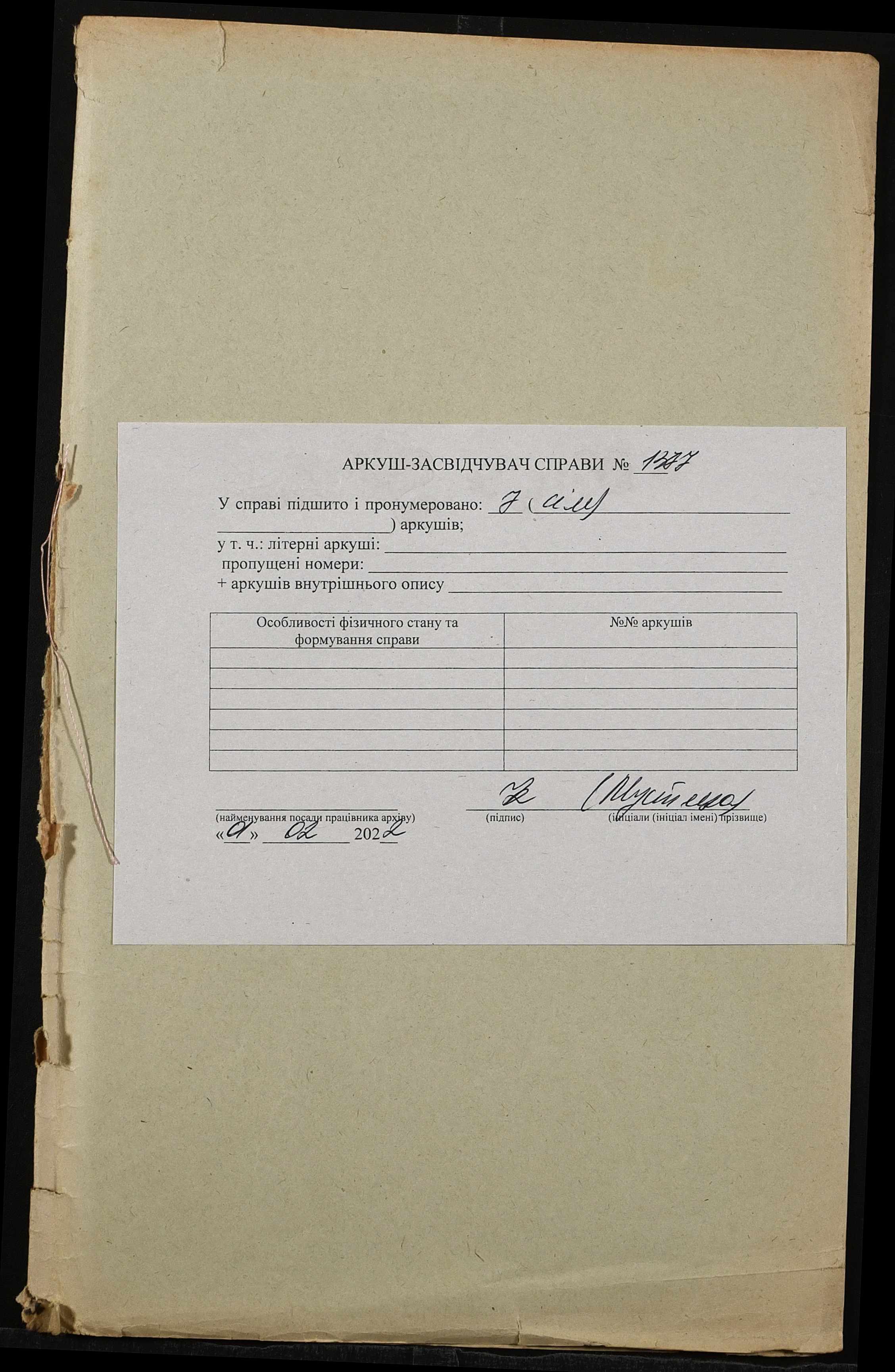 Фонд 152 / Опис 1 / Справа 1377