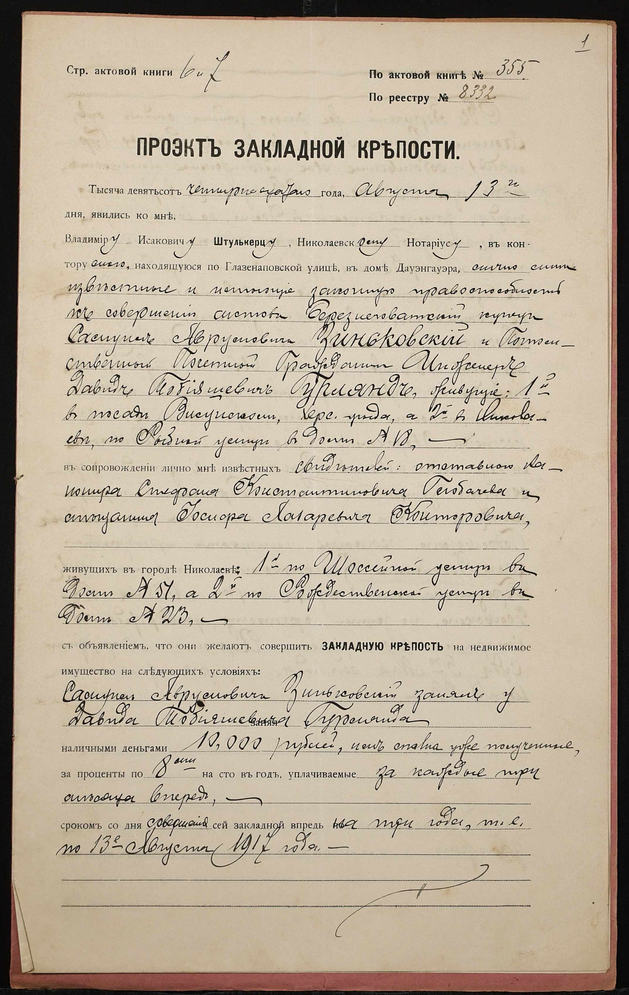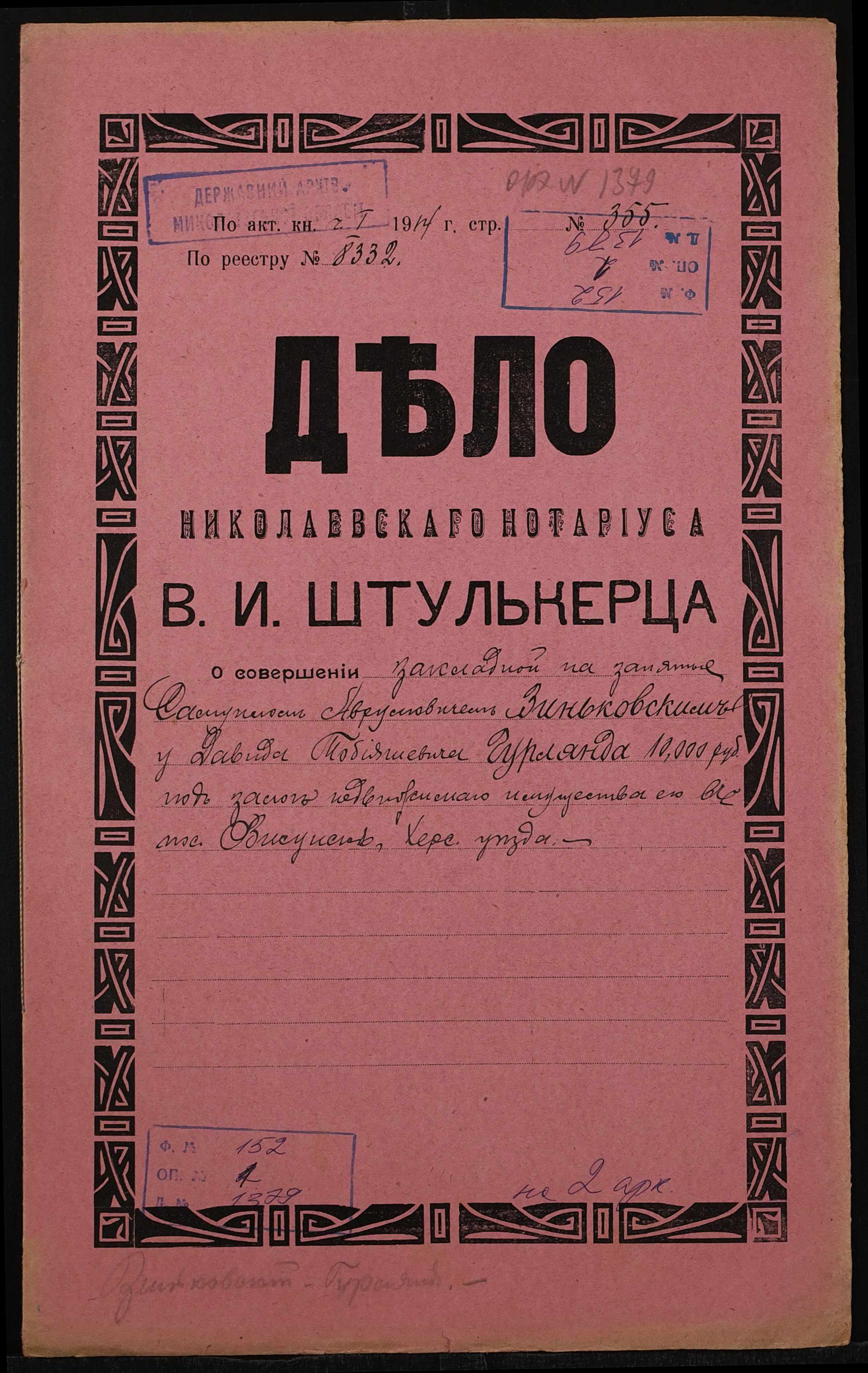 ◦ ◦ Фонд № 152 “Контора миколаївського нотаріуса Херсонського окружного суду Штулькерца Володимира Ісааковича”
