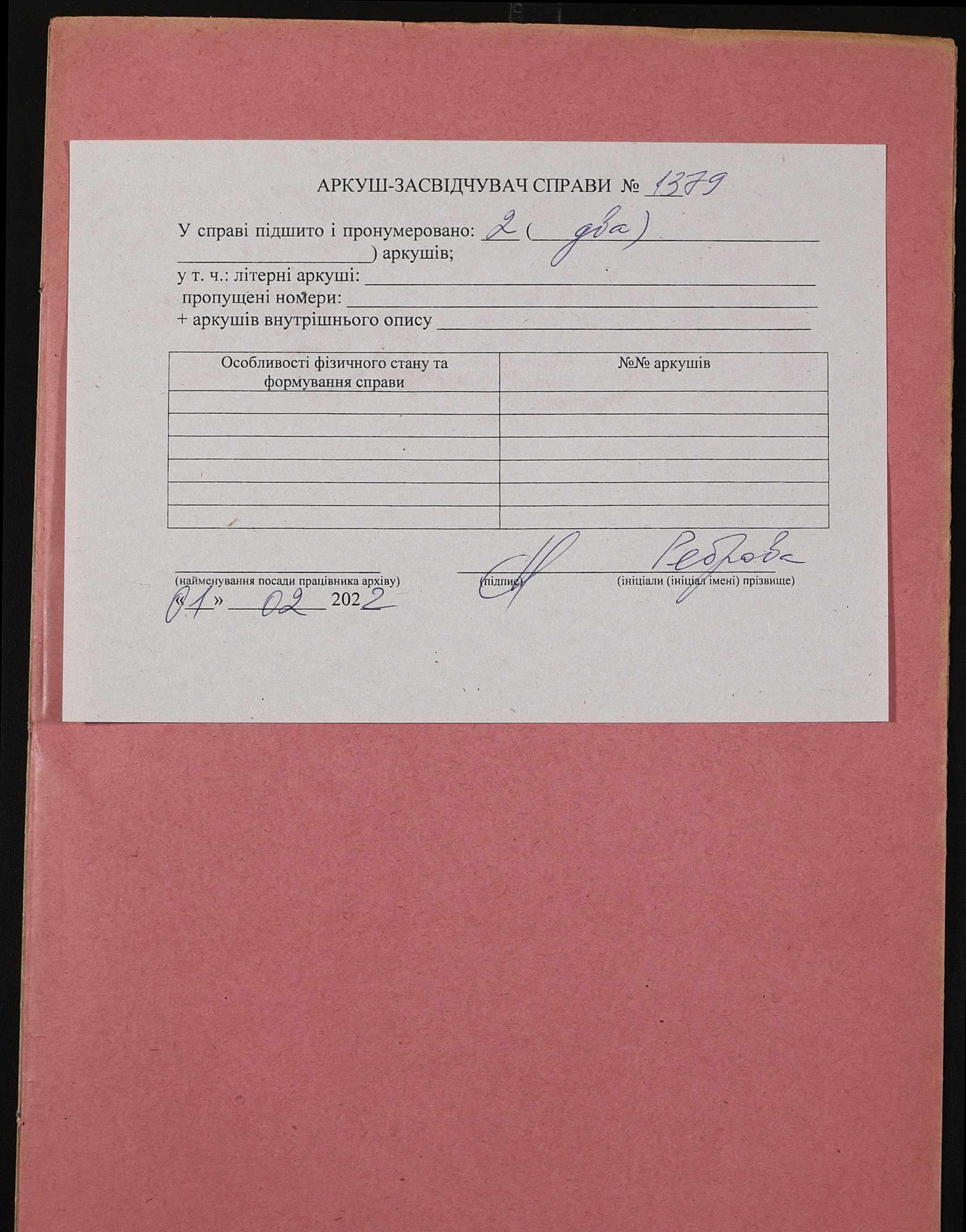 Фонд 152 / Опис 1 / Справа 1379