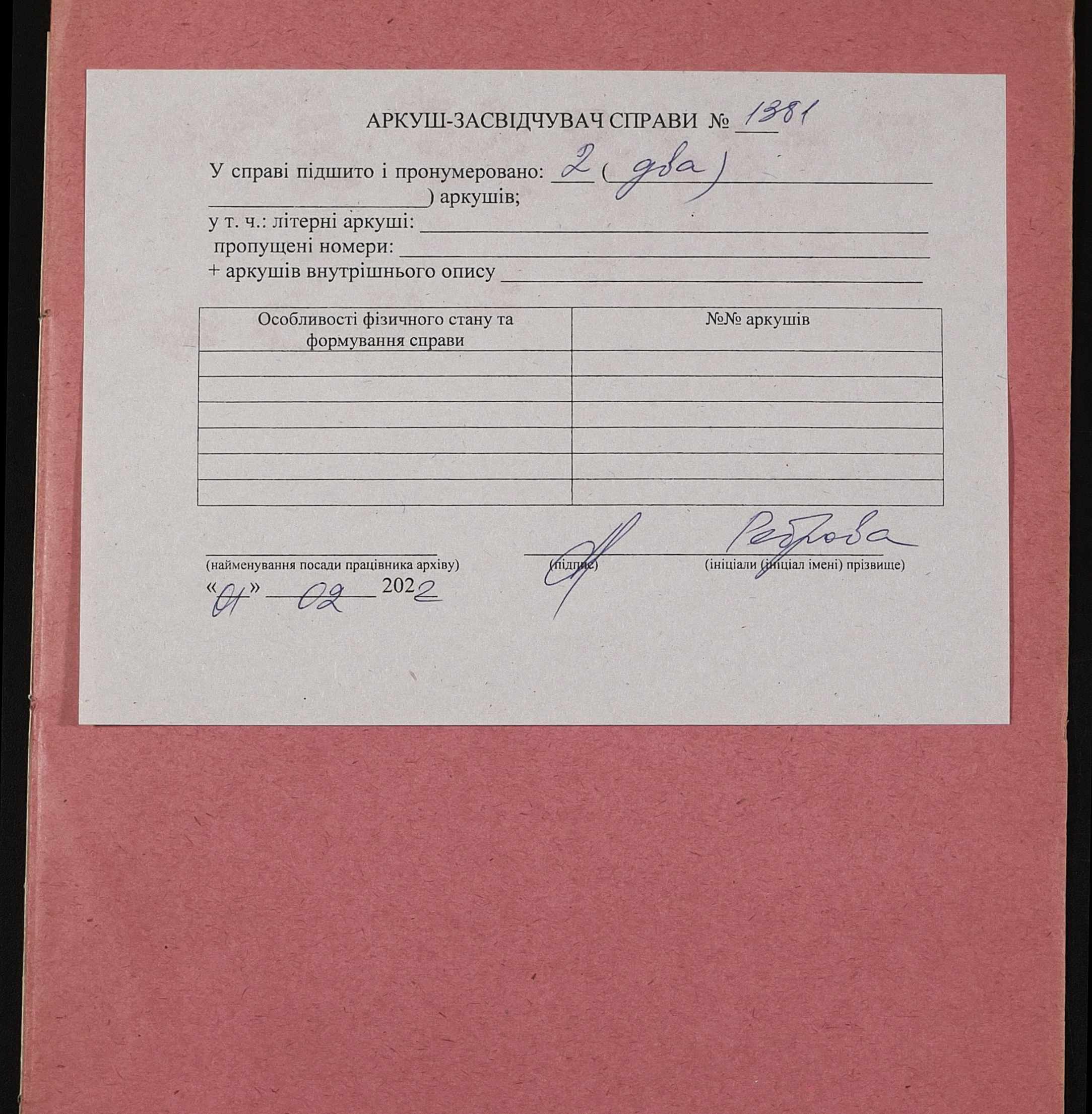 Фонд 152 / Опис 1 / Справа 1381