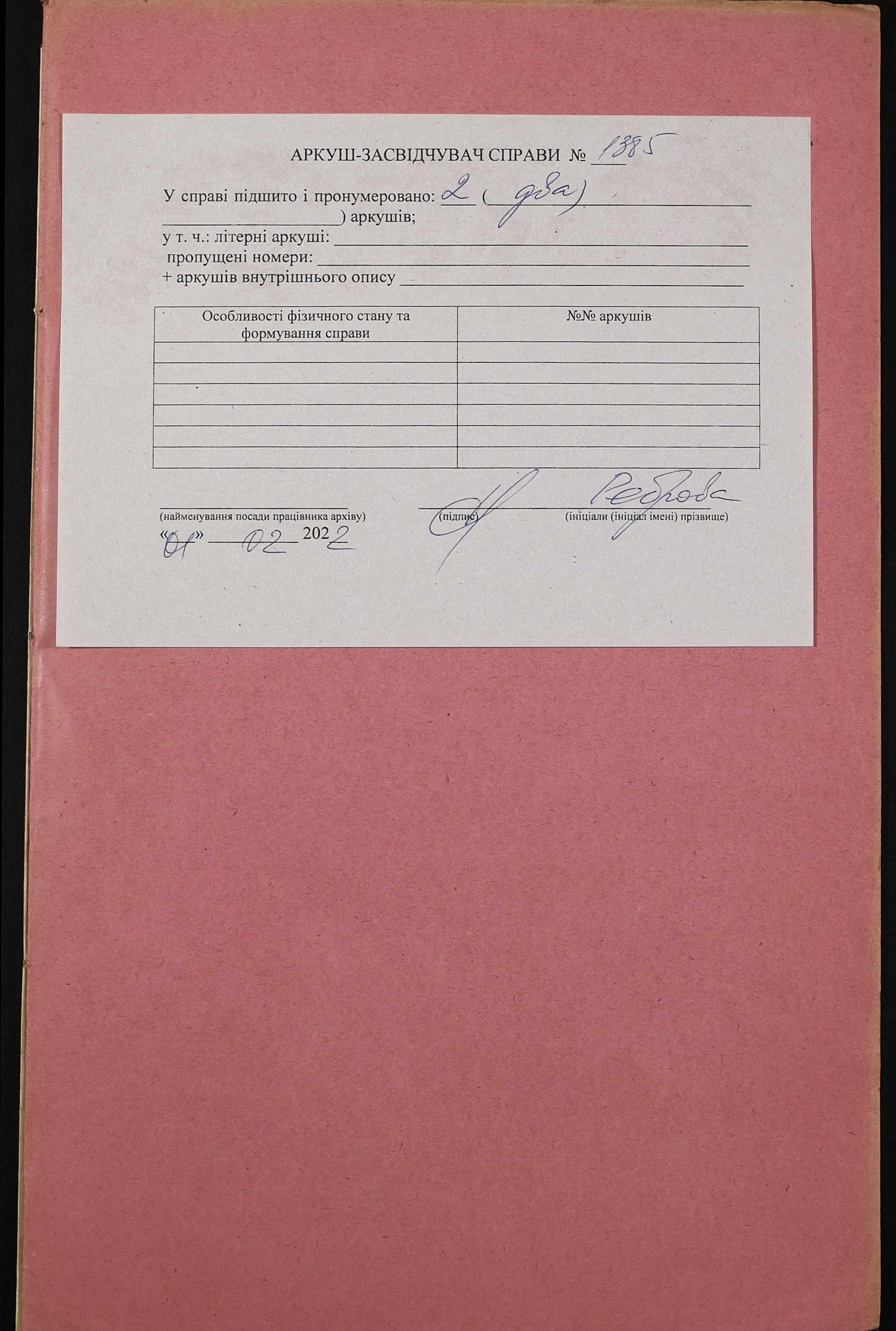 Фонд 152 / Опис 1 / Справа 1385