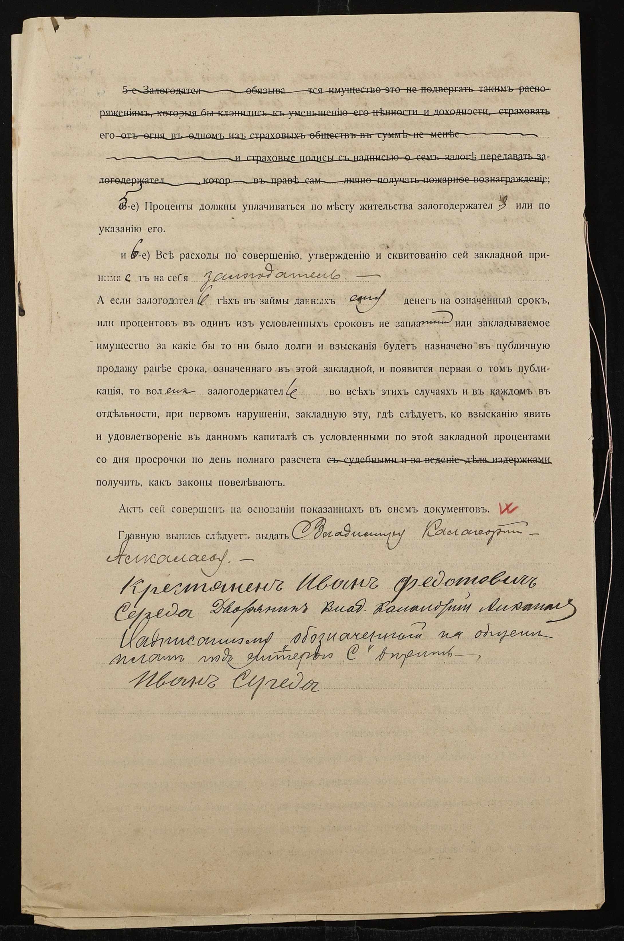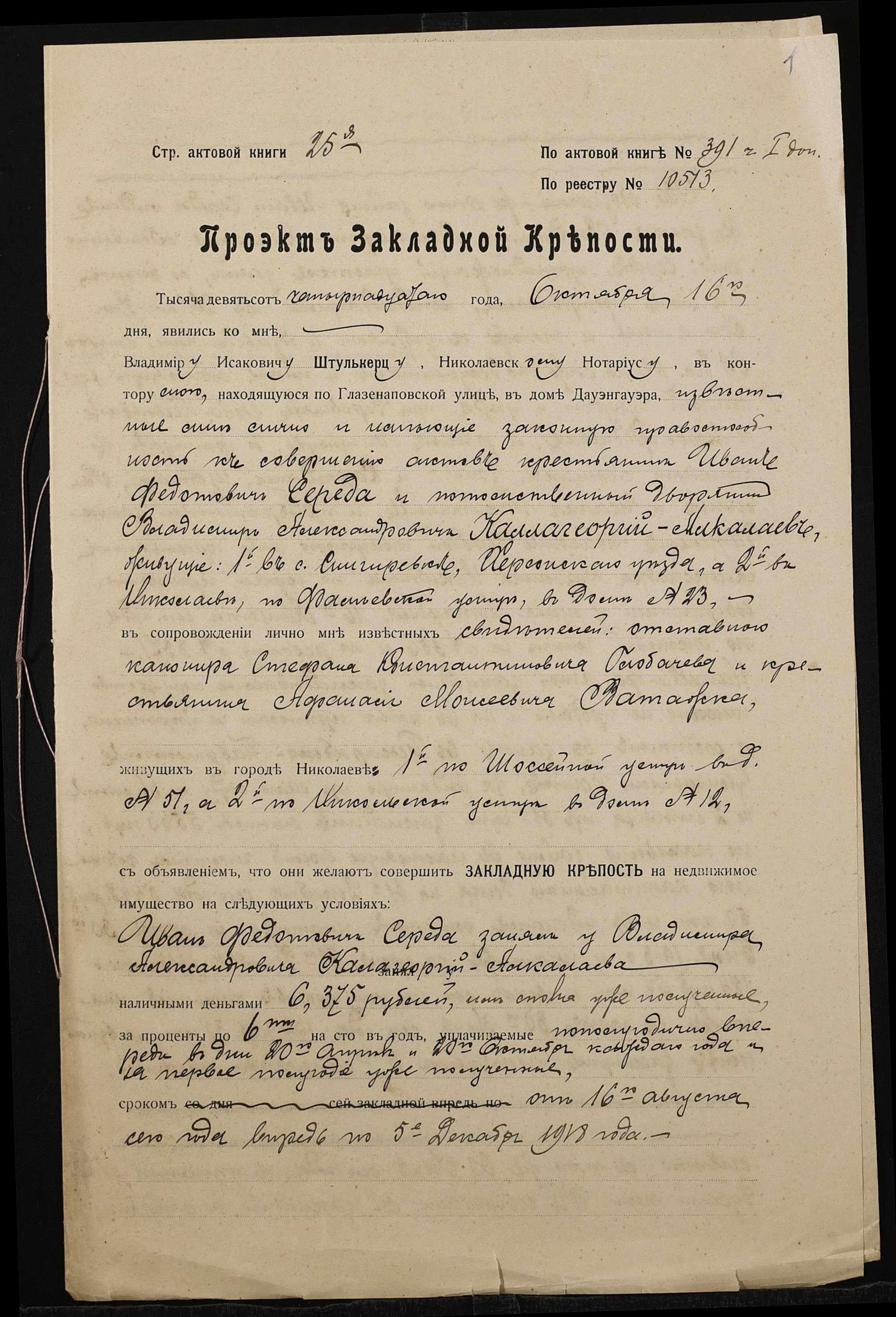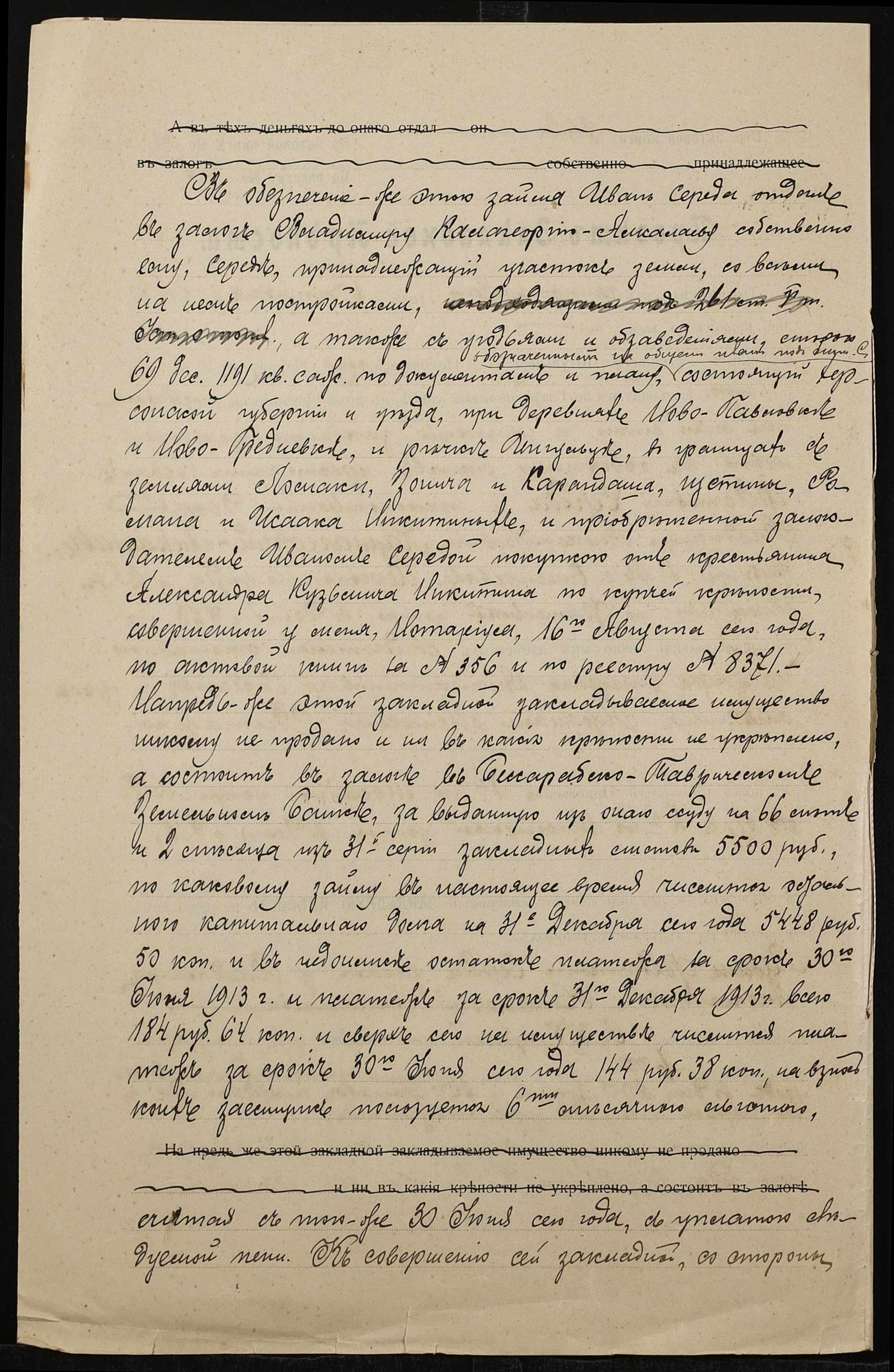 • • • • Справа № 1391 “Справа про вчинення заставної на нерухоме майно у Херсонському повіті, закладене Середою Іваном Федотовичем (Середой Иваном Федотовичем) – Калагеоргій-Алкалаєву Володимиру Олександровичу (Калагеоргий-Алкалаеву Владимиру Александровичу)”