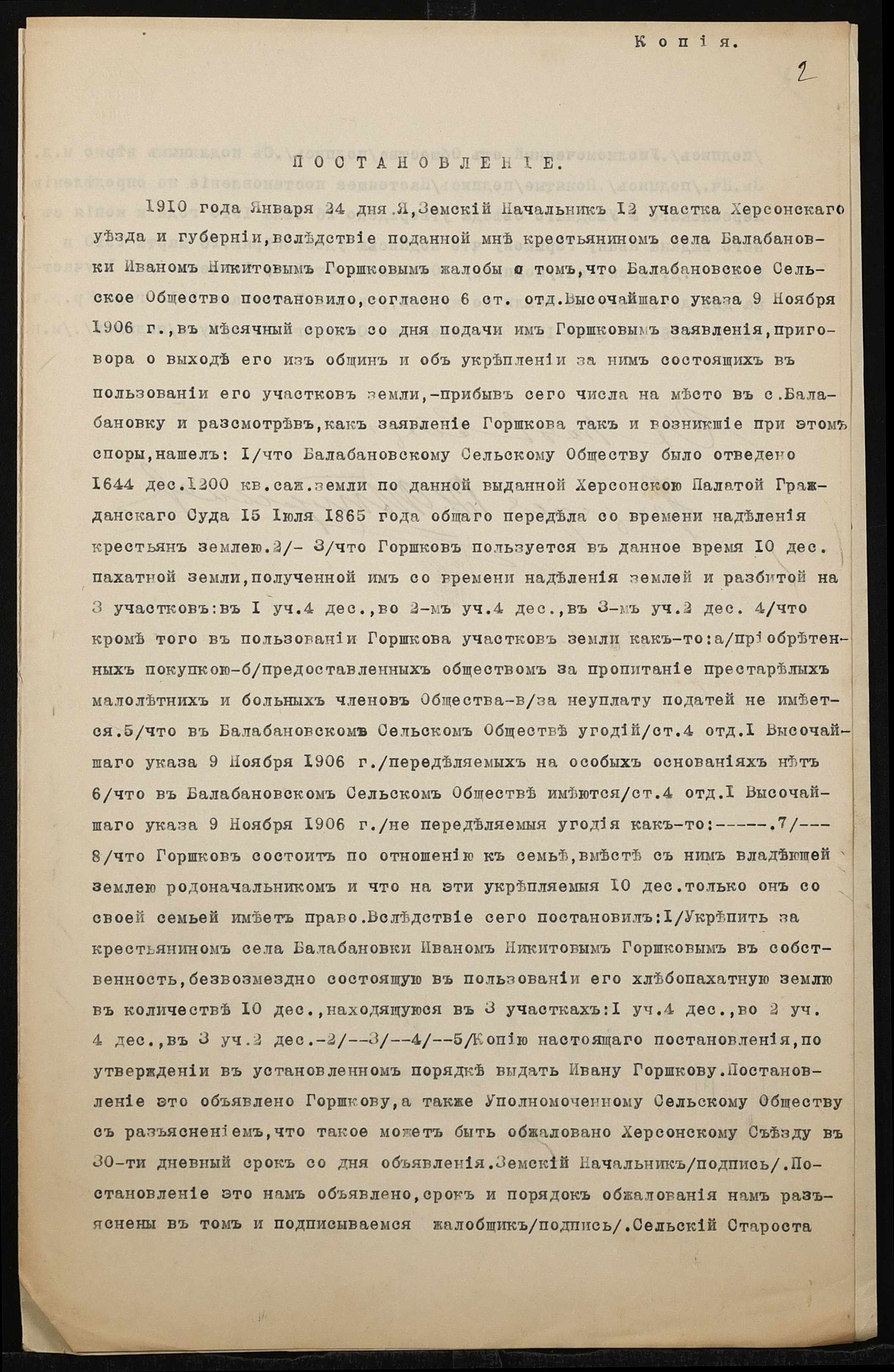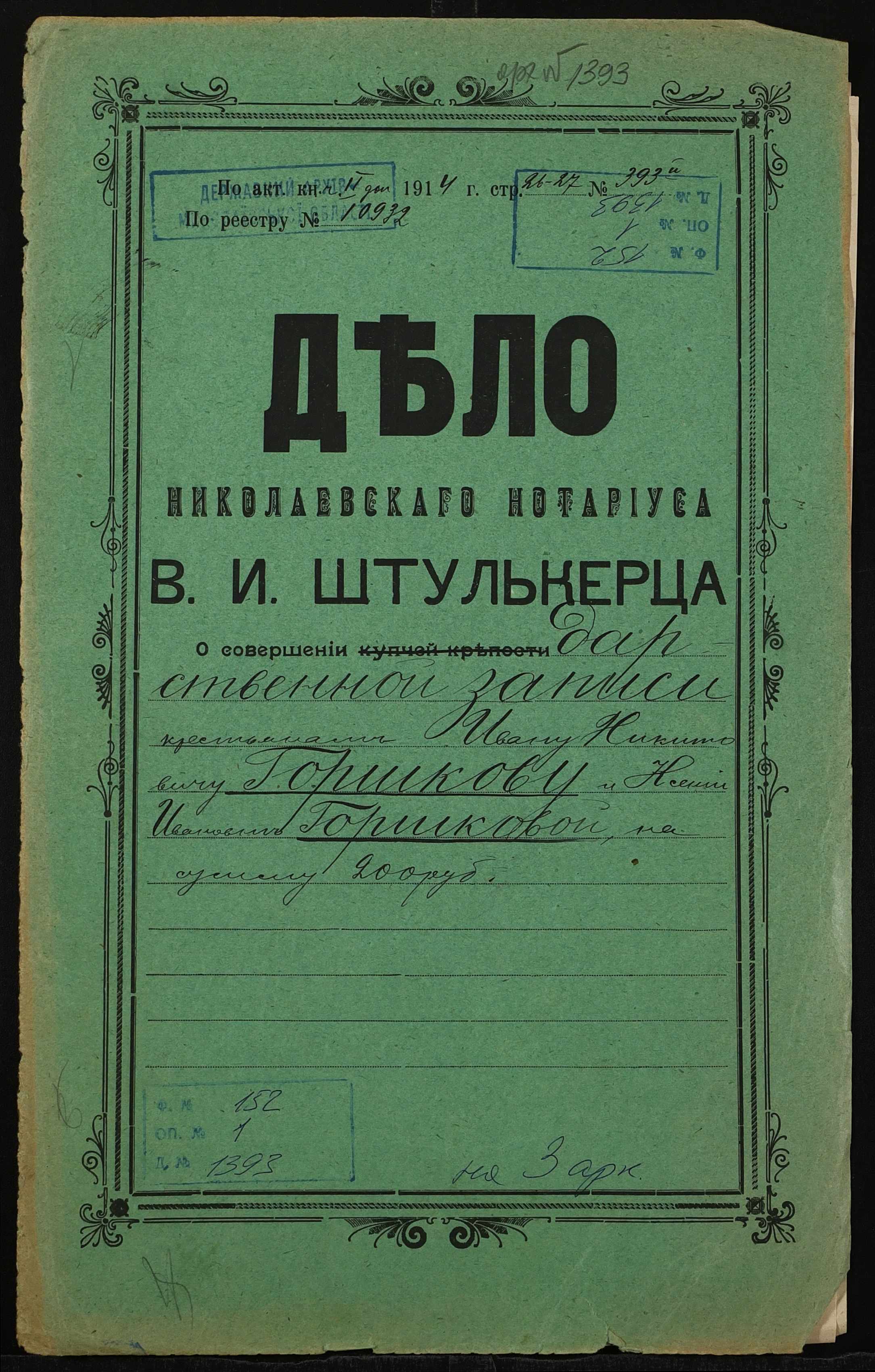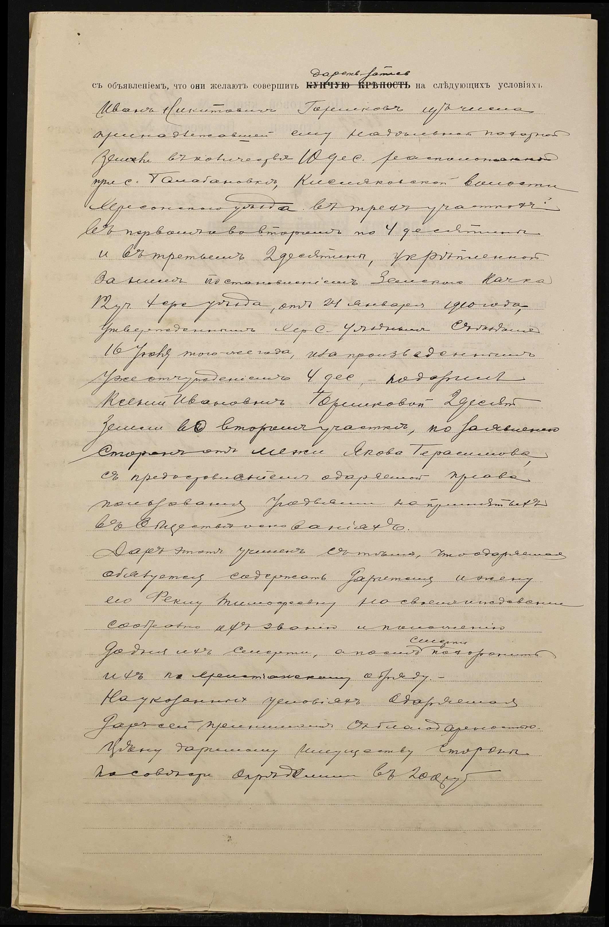 • • • • Справа № 1393 “Справа про вчинення дарчої на землю, передану селянином Горшковим Іваном Микитовичем (Горшковым Иваном Никитовичем) у власність селянки Горшкової Ксенії Іванівни (Горшковой Ксении Ивановны)”