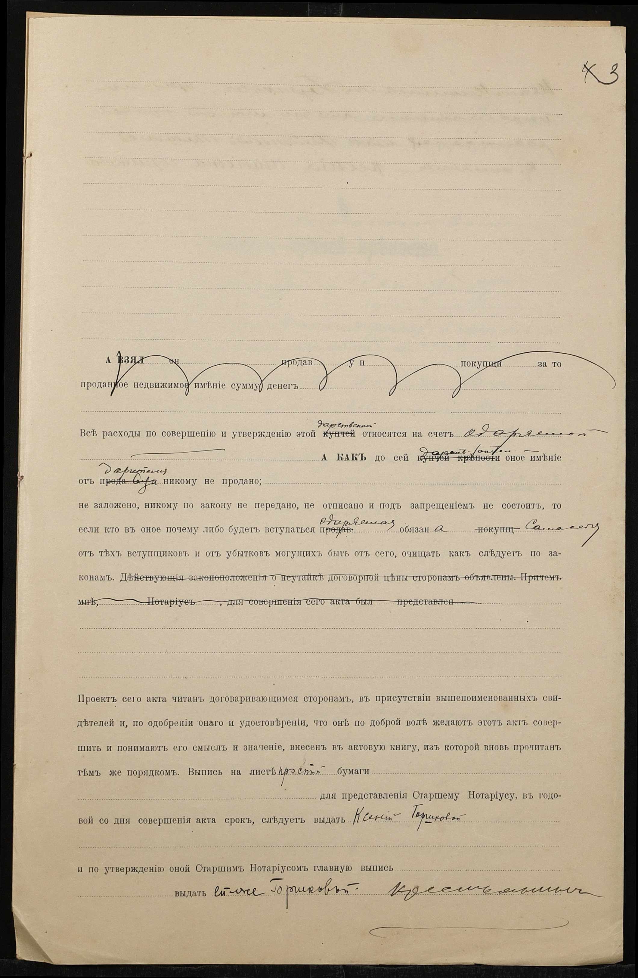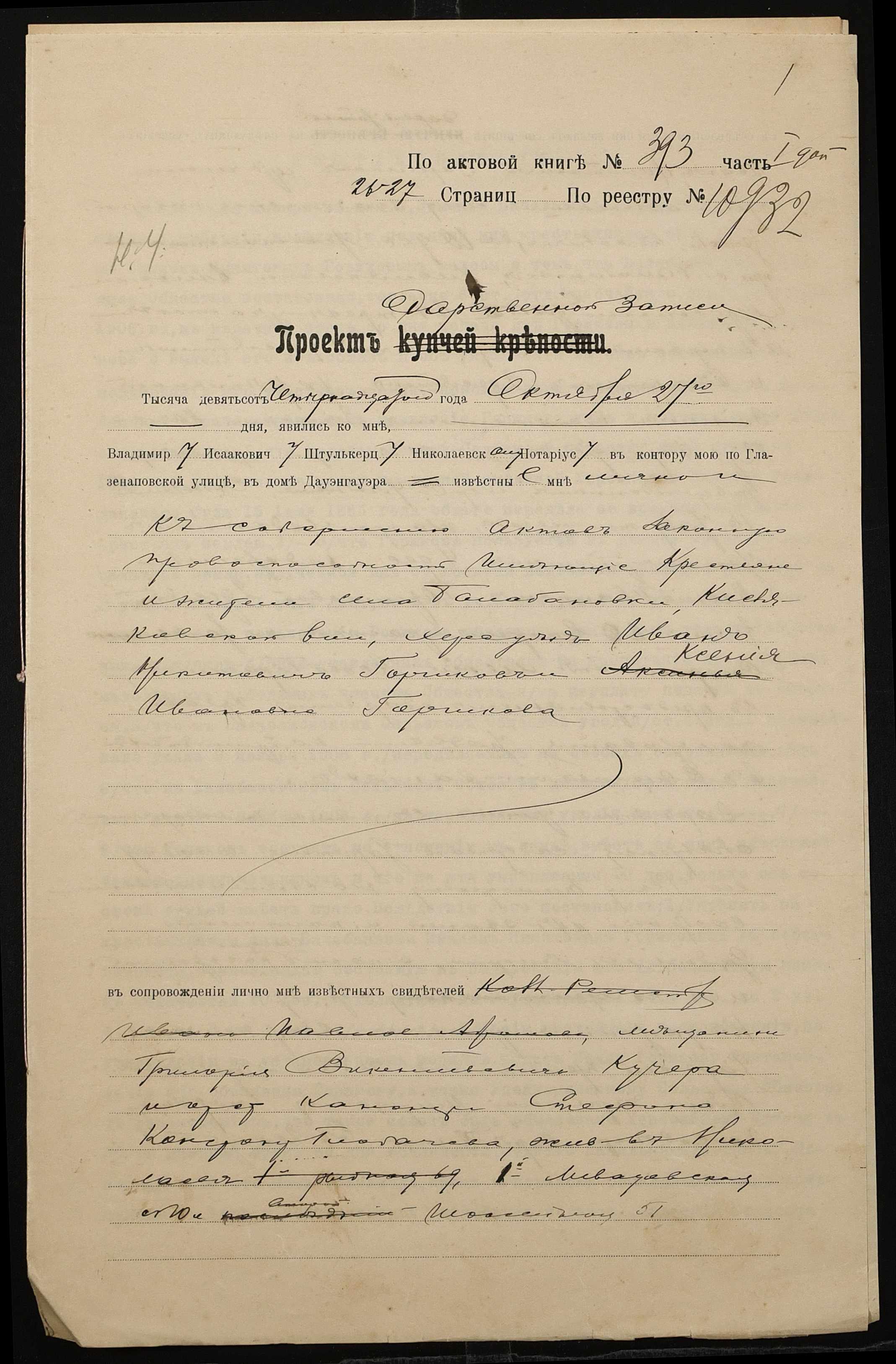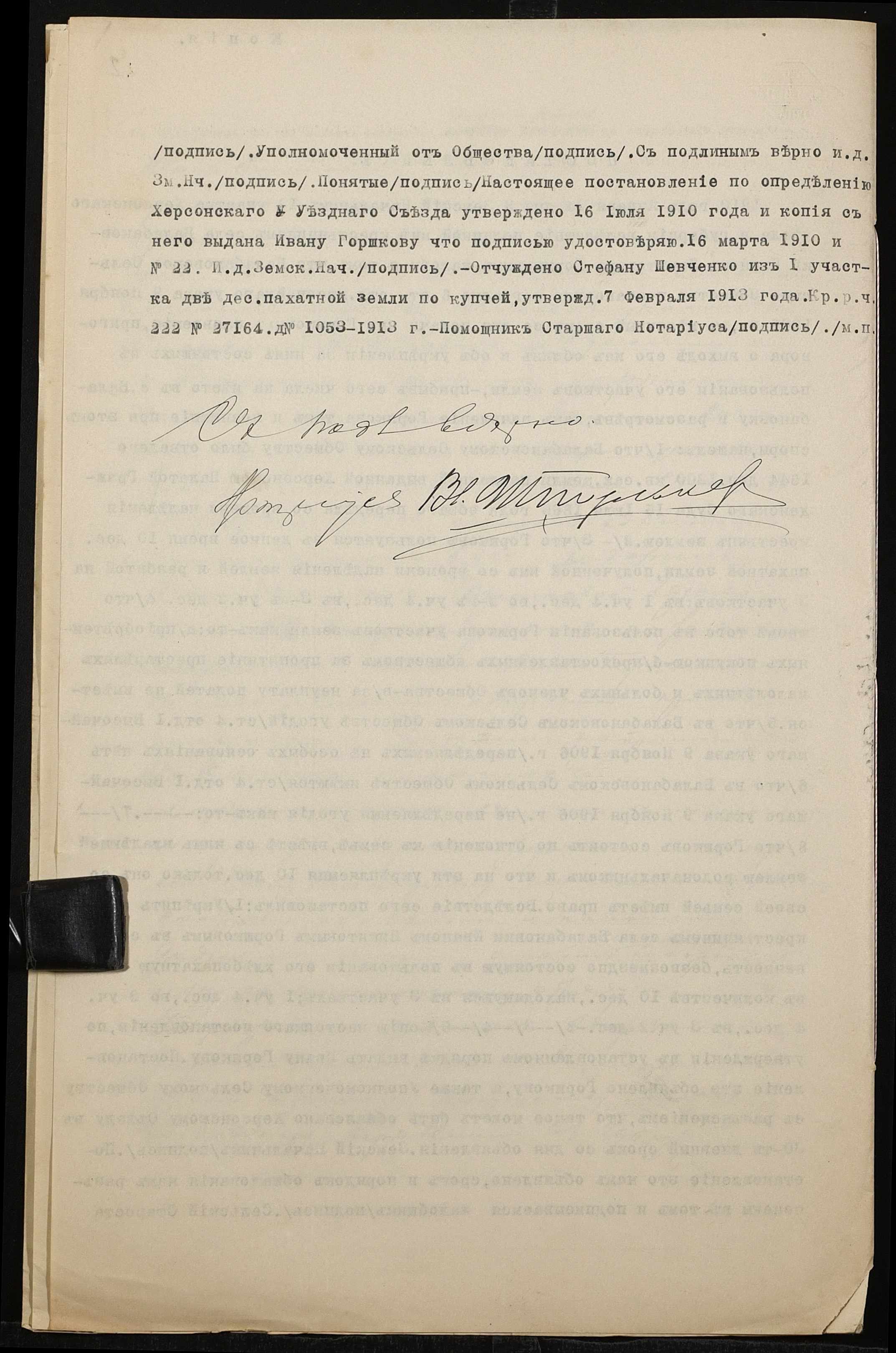 • • • • Справа № 1393 “Справа про вчинення дарчої на землю, передану селянином Горшковим Іваном Микитовичем (Горшковым Иваном Никитовичем) у власність селянки Горшкової Ксенії Іванівни (Горшковой Ксении Ивановны)”