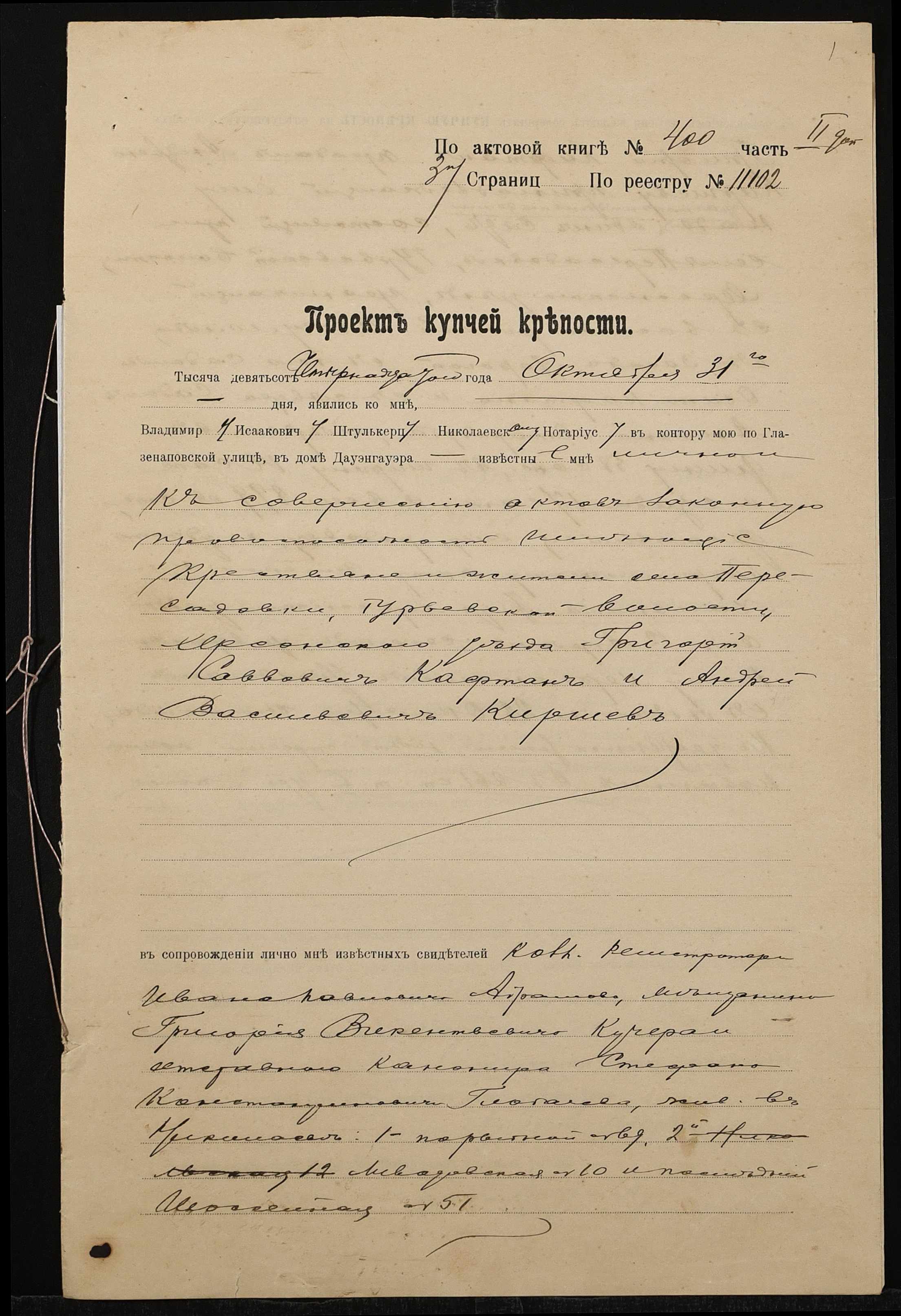 ◦ ◦ Фонд № 152 “Контора миколаївського нотаріуса Херсонського окружного суду Штулькерца Володимира Ісааковича”