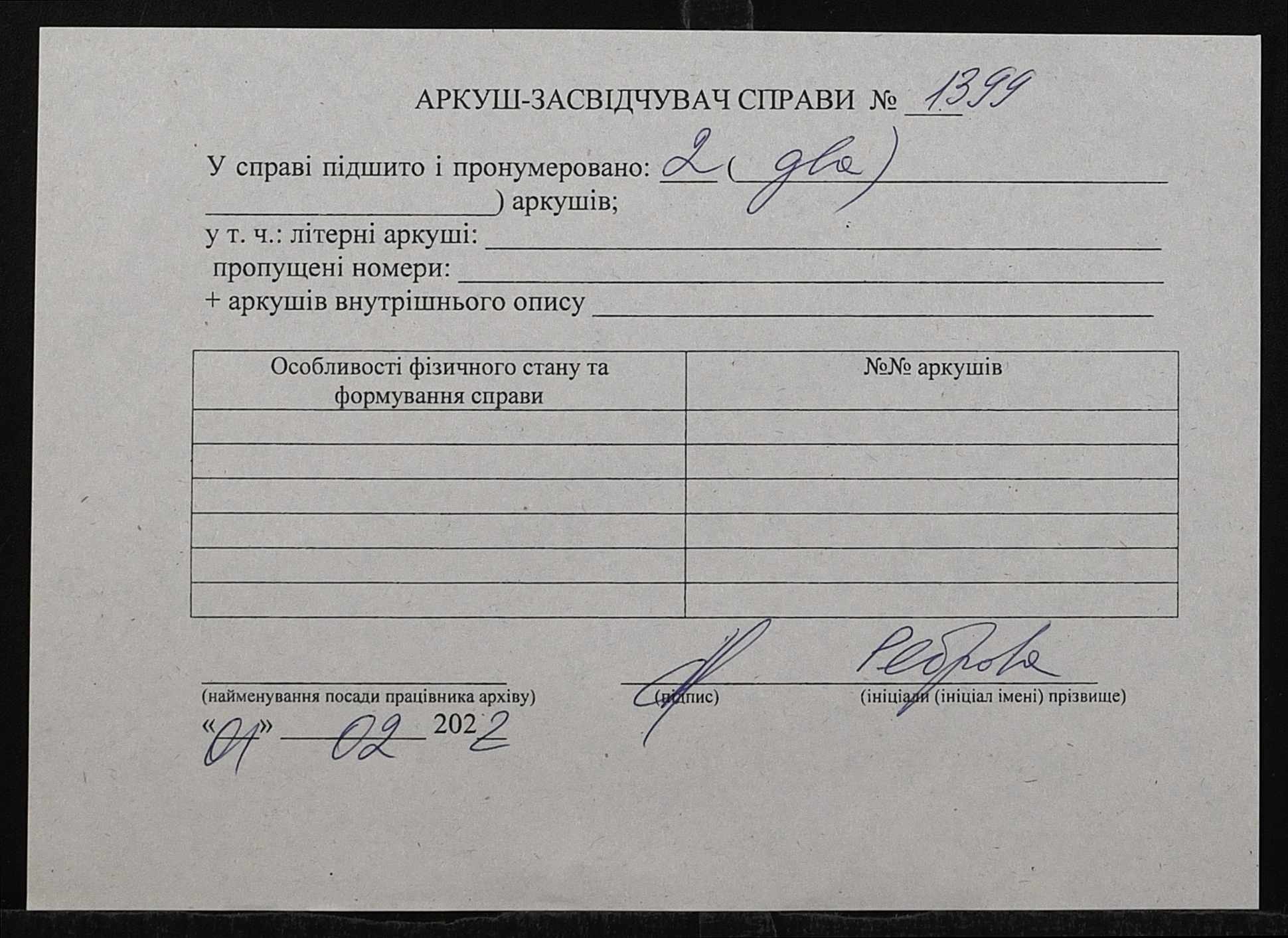 Фонд 152 / Опис 1 / Справа 1399