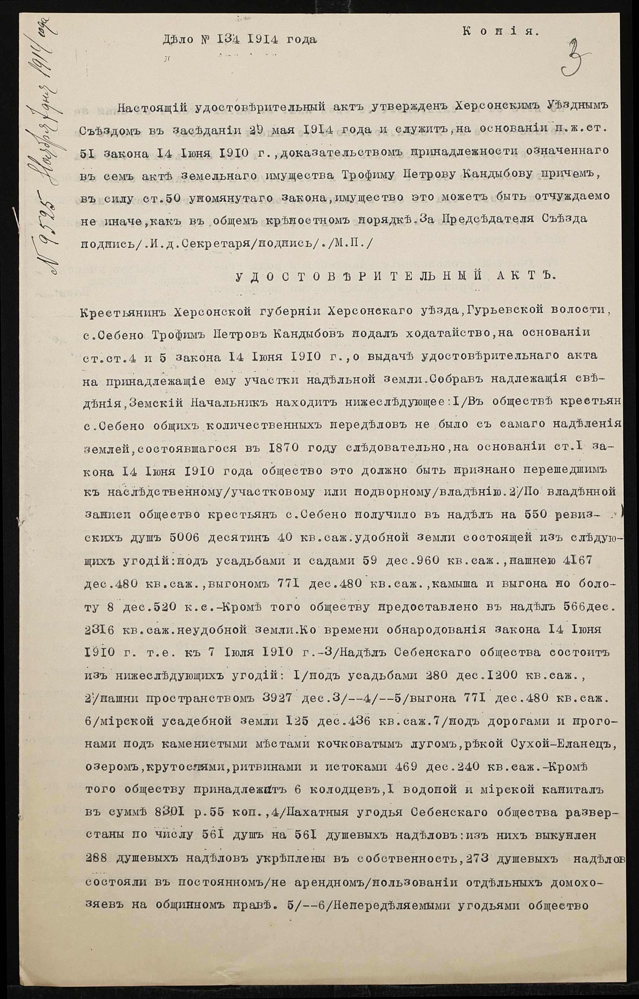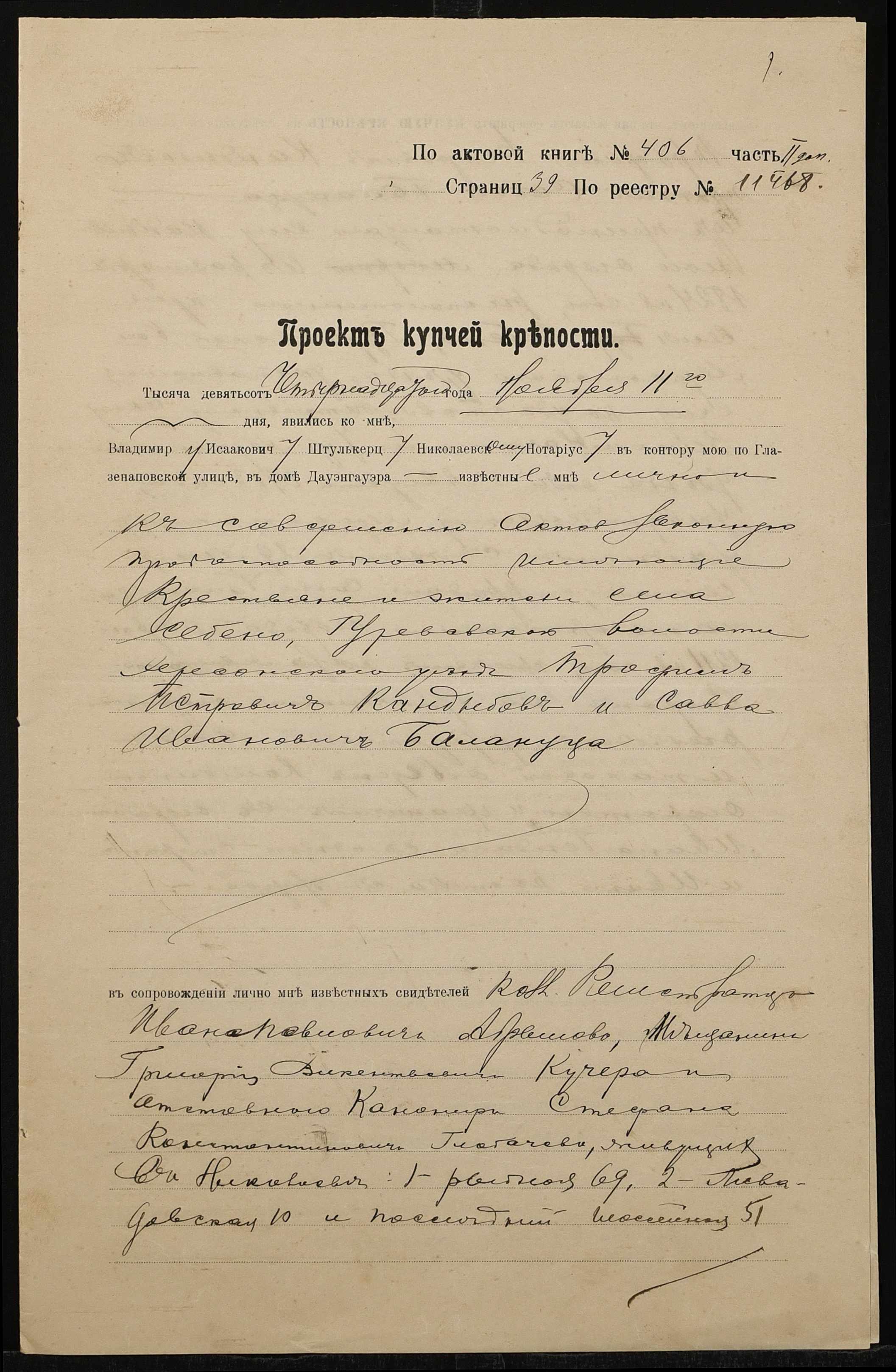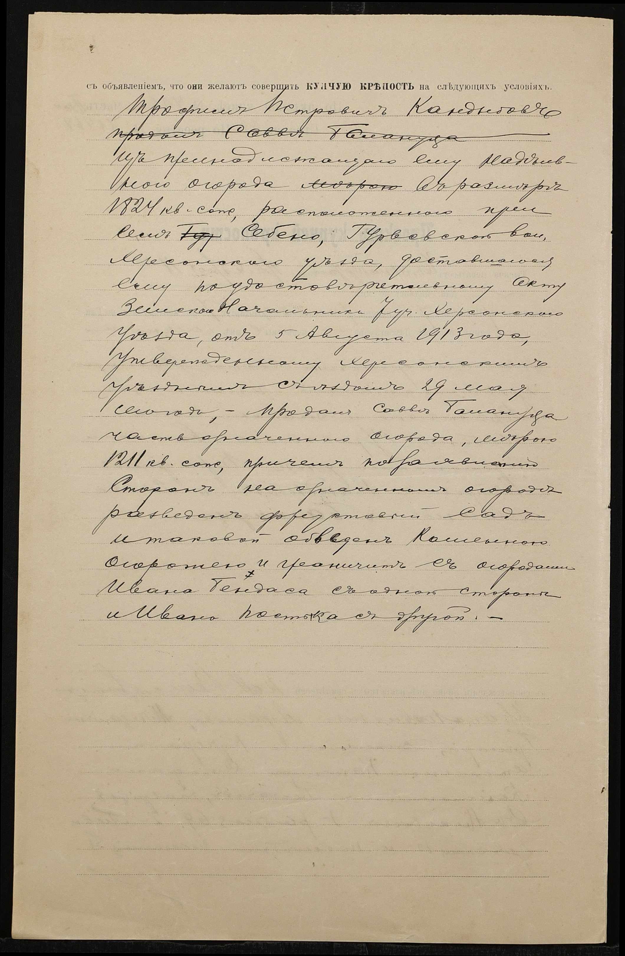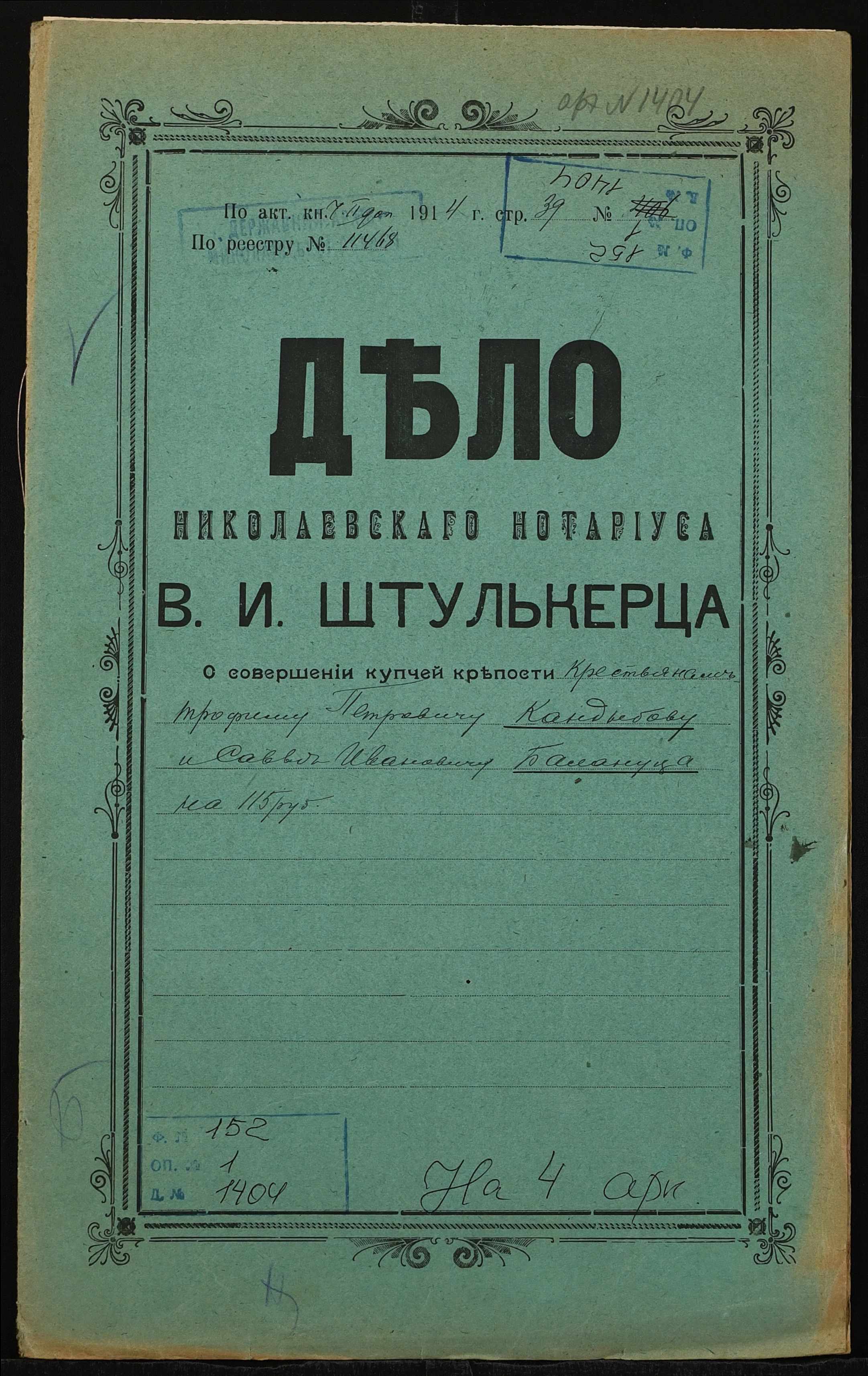 • • • • Справа № 1404 “Справа про вчинення купчої про продаж землі селянином Кандибовим Трохимом Петровичем (Кандыбовым Трофимом Петровичем) на користь селянина Балануци Сави Івановича (Балануцы Саввы Ивановича)”