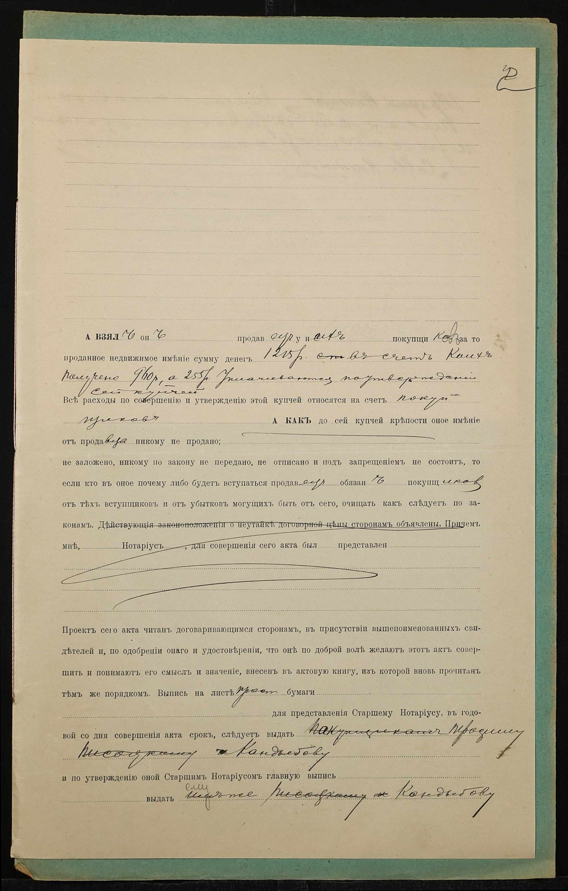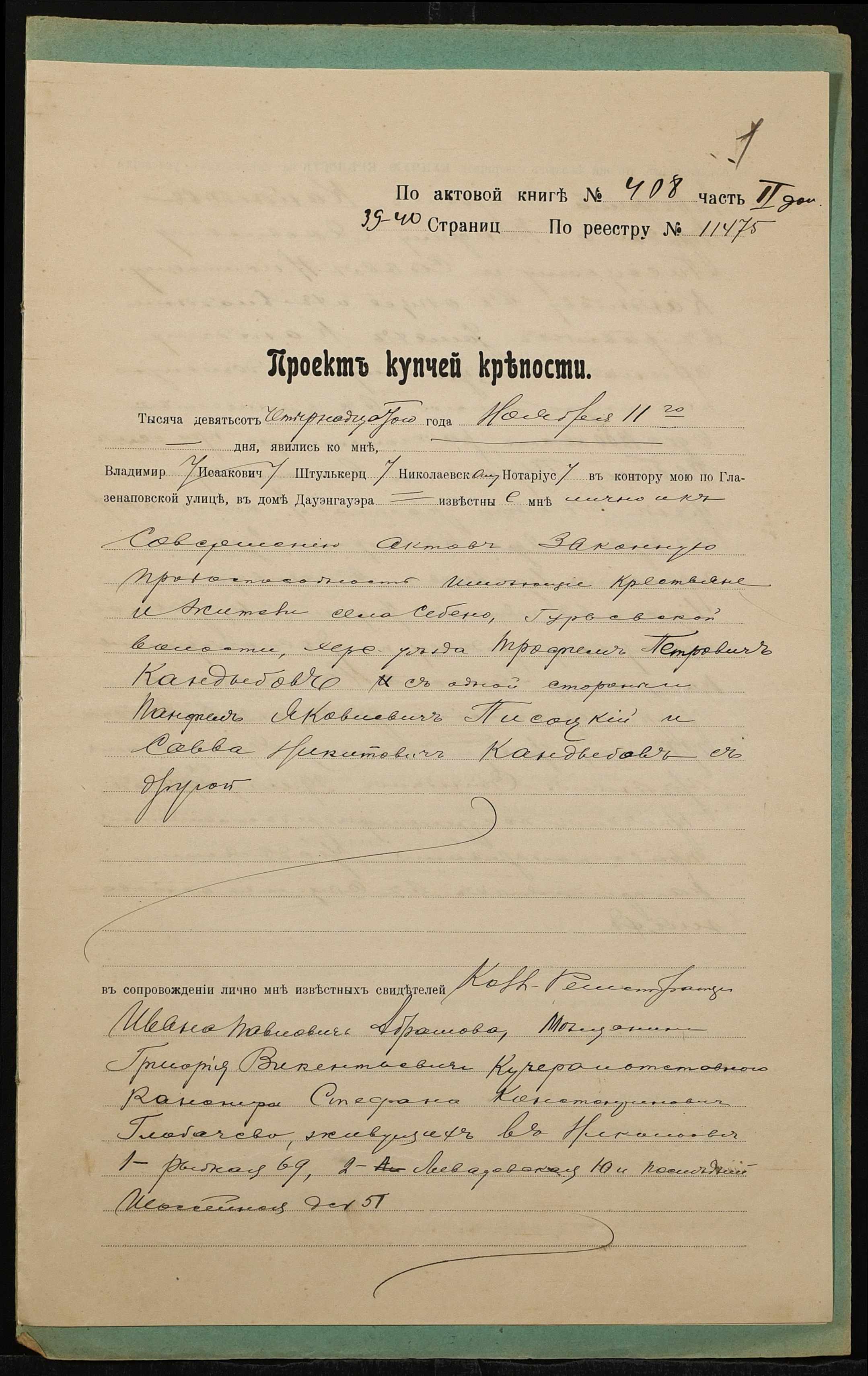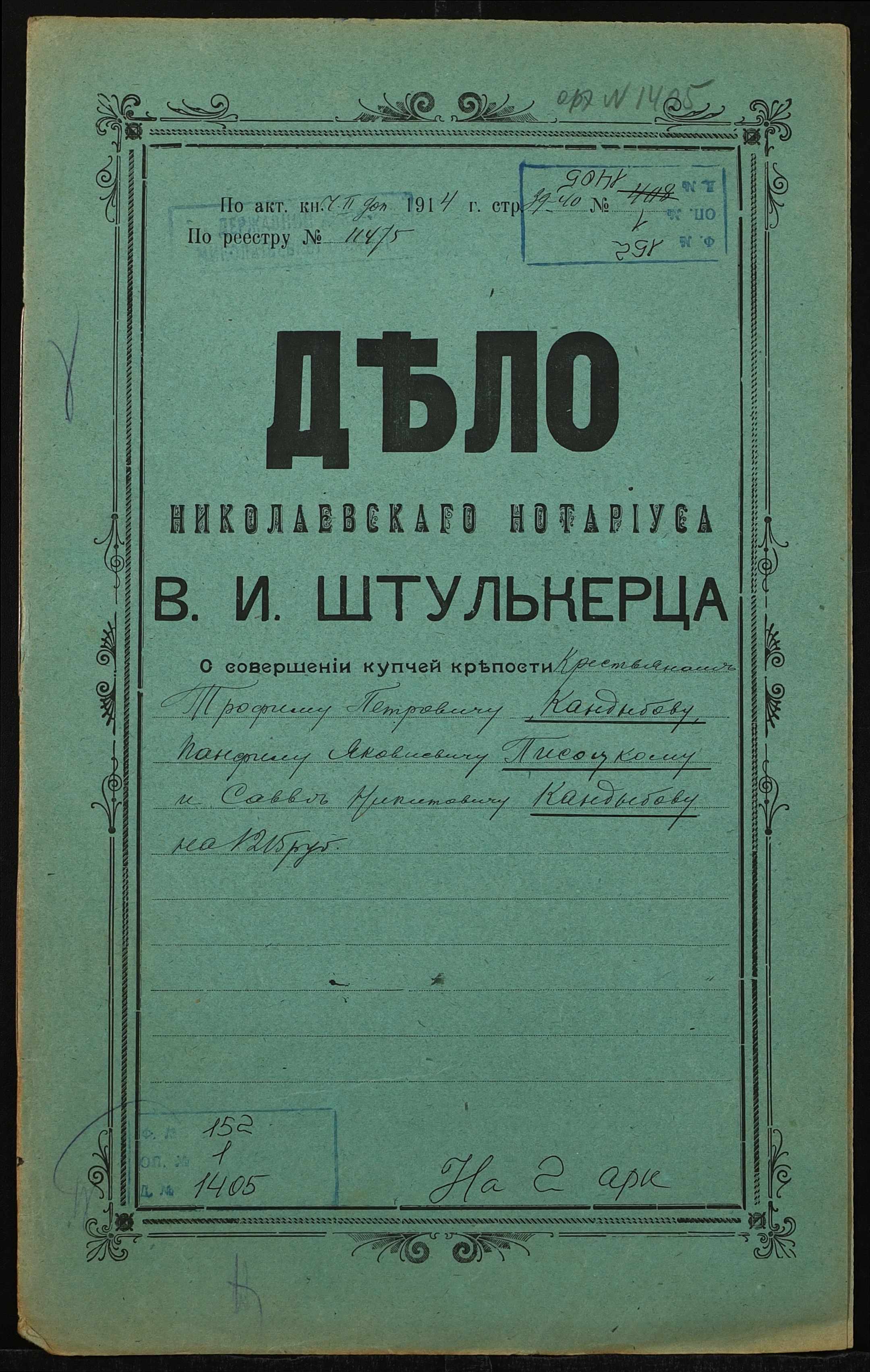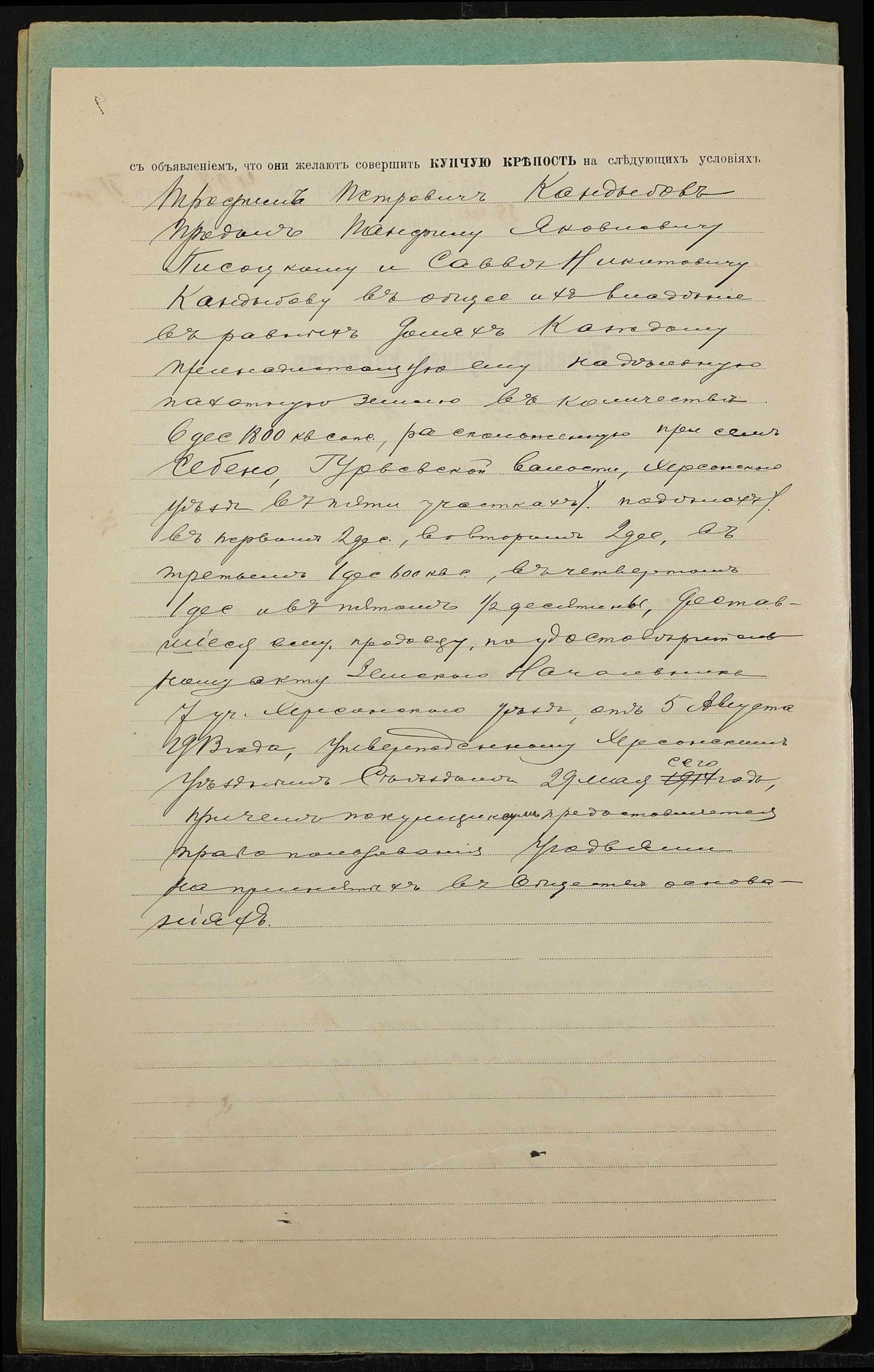 • • • • Справа № 1405 “Справа про вчинення купчої про продаж землі селянином Кандибовим Трохимом Петровичем (Кандыбовым Трофимом Петровичем) на користь селян Пісоцького Панфіла Яковича (Писоцкого Панфила Яковлевича) і Кандибова Сави Микитовича (Кандыбова Саввы Никитовича)”