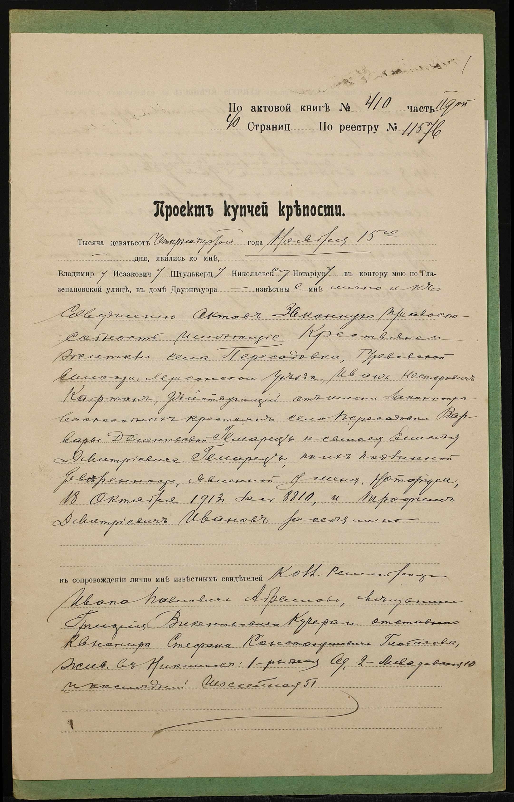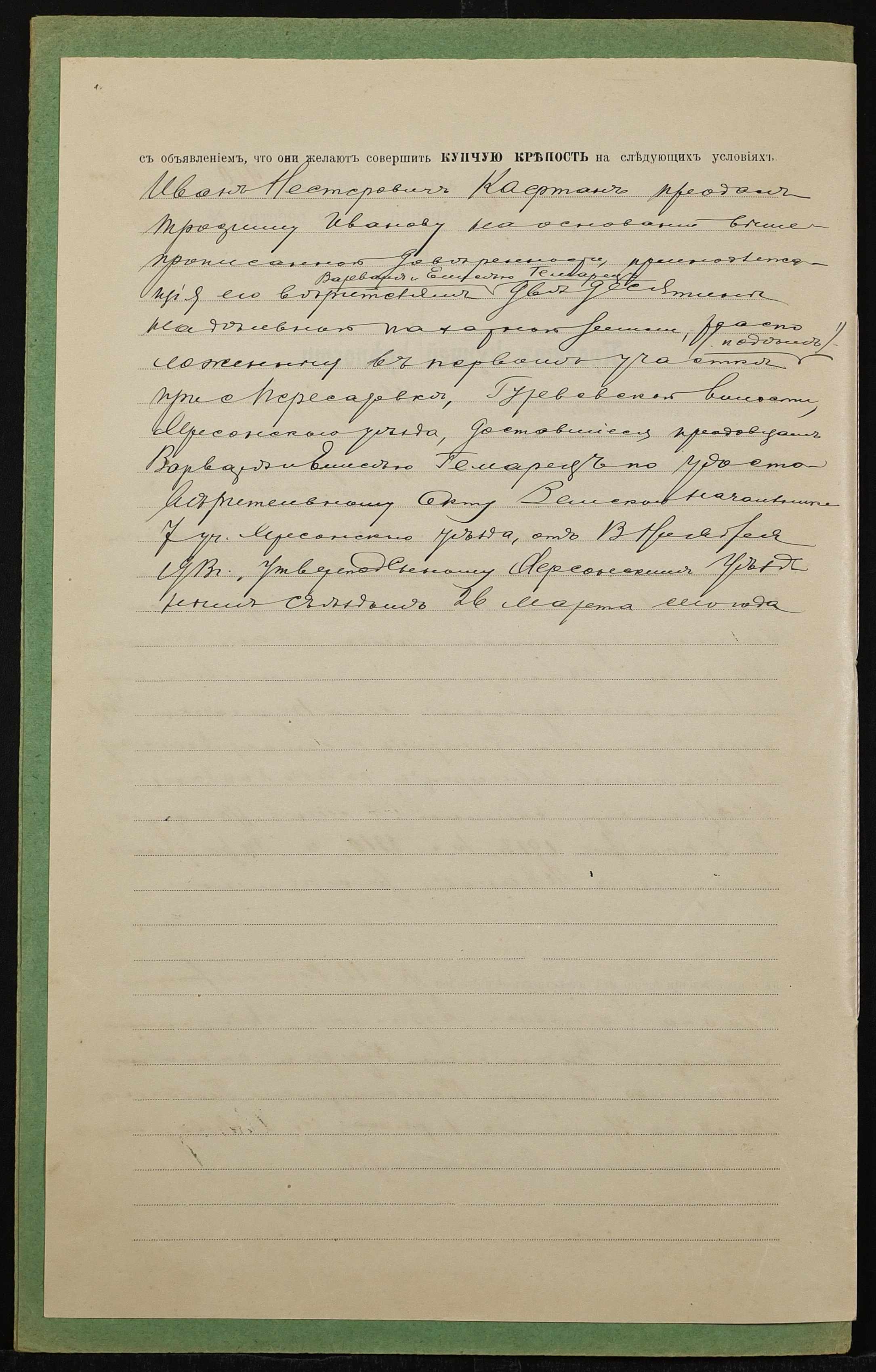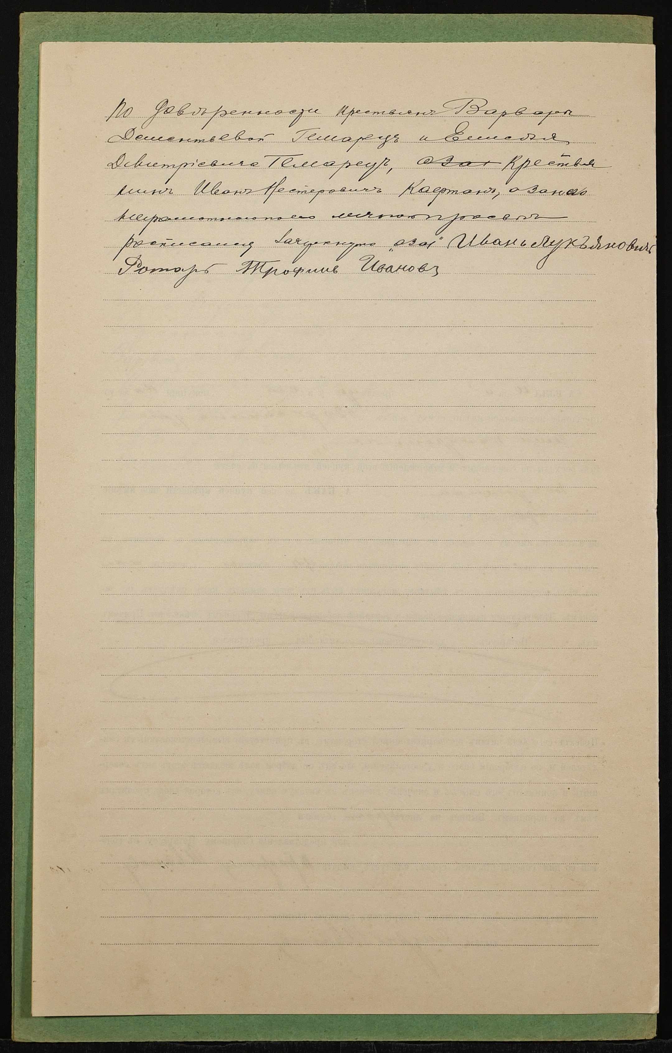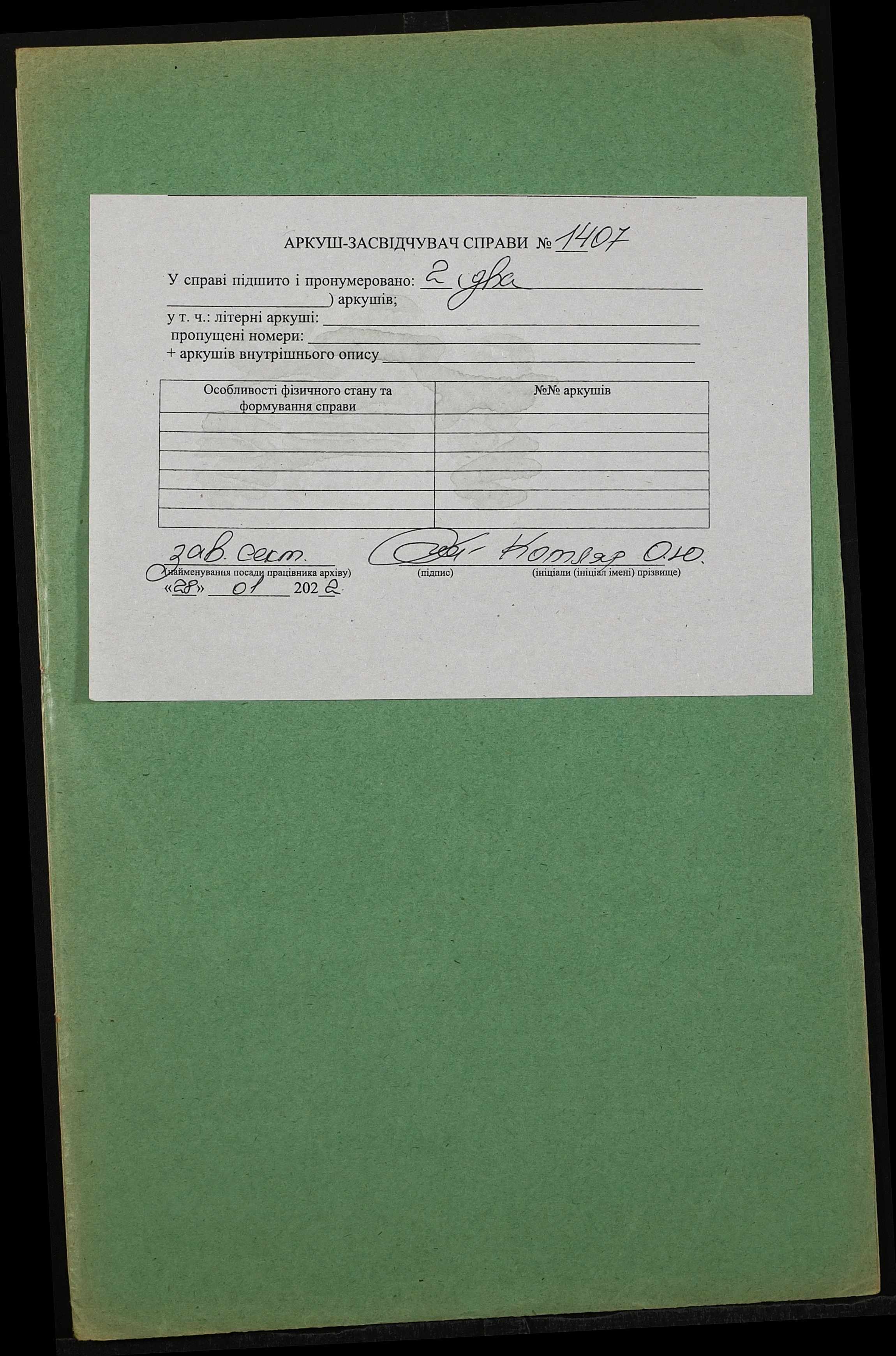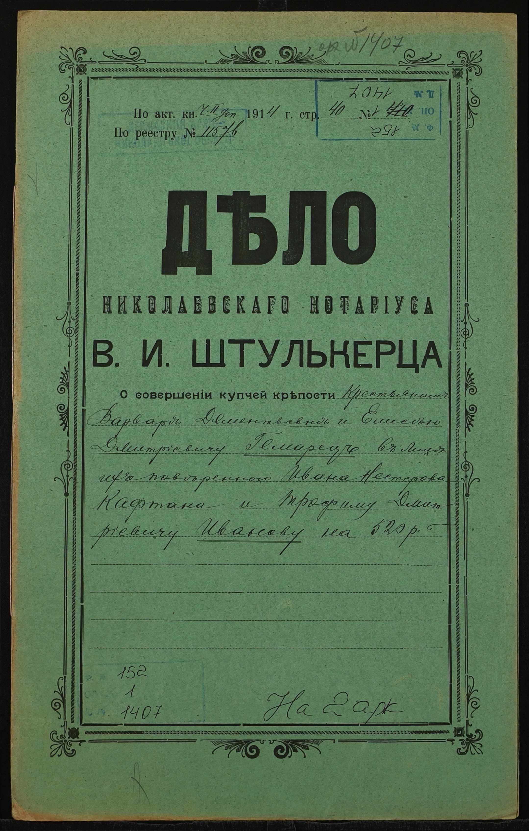• • • • Справа № 1407 “Справа про вчинення купчої про продаж землі селянином Кафтаном Іваном Несторовичем (Кафтаном Иваном Нестеровичем), повіреним селян Гемарець Варвари Дементіївни (Гемарец Варвары Дементьевны) і Гемарця Єлисея Дмитровича (Гемарца Елисея Дмитриевича), на користь селянина Іванова Трохима Дмитровича (Иванова Трофима Дмитриевича)”