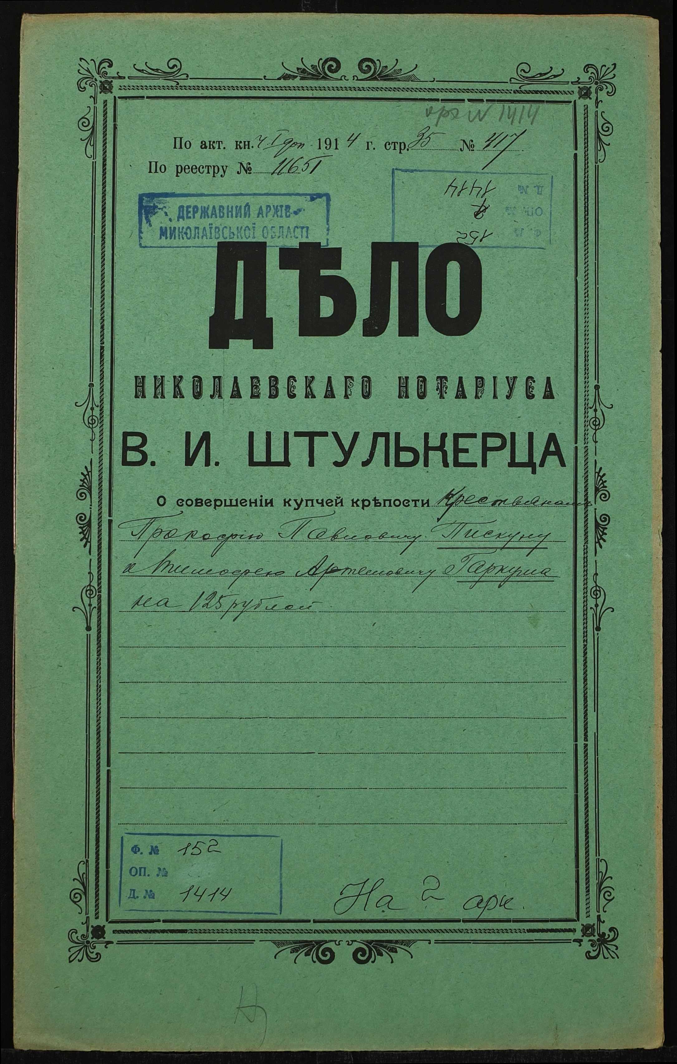 Фонд 152 / Опис 1 / Справа 1414
