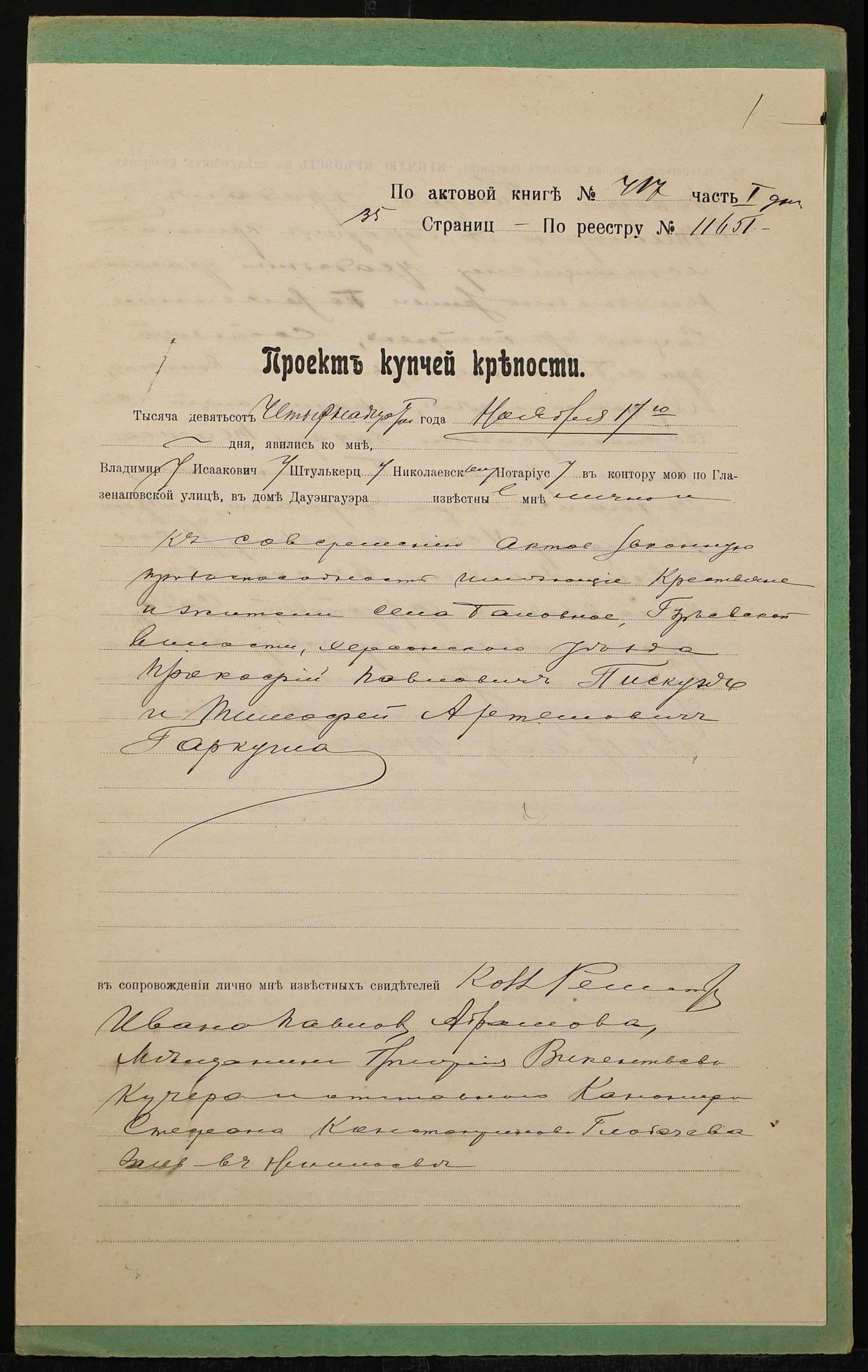 ◦ ◦ Фонд № 152 “Контора миколаївського нотаріуса Херсонського окружного суду Штулькерца Володимира Ісааковича”