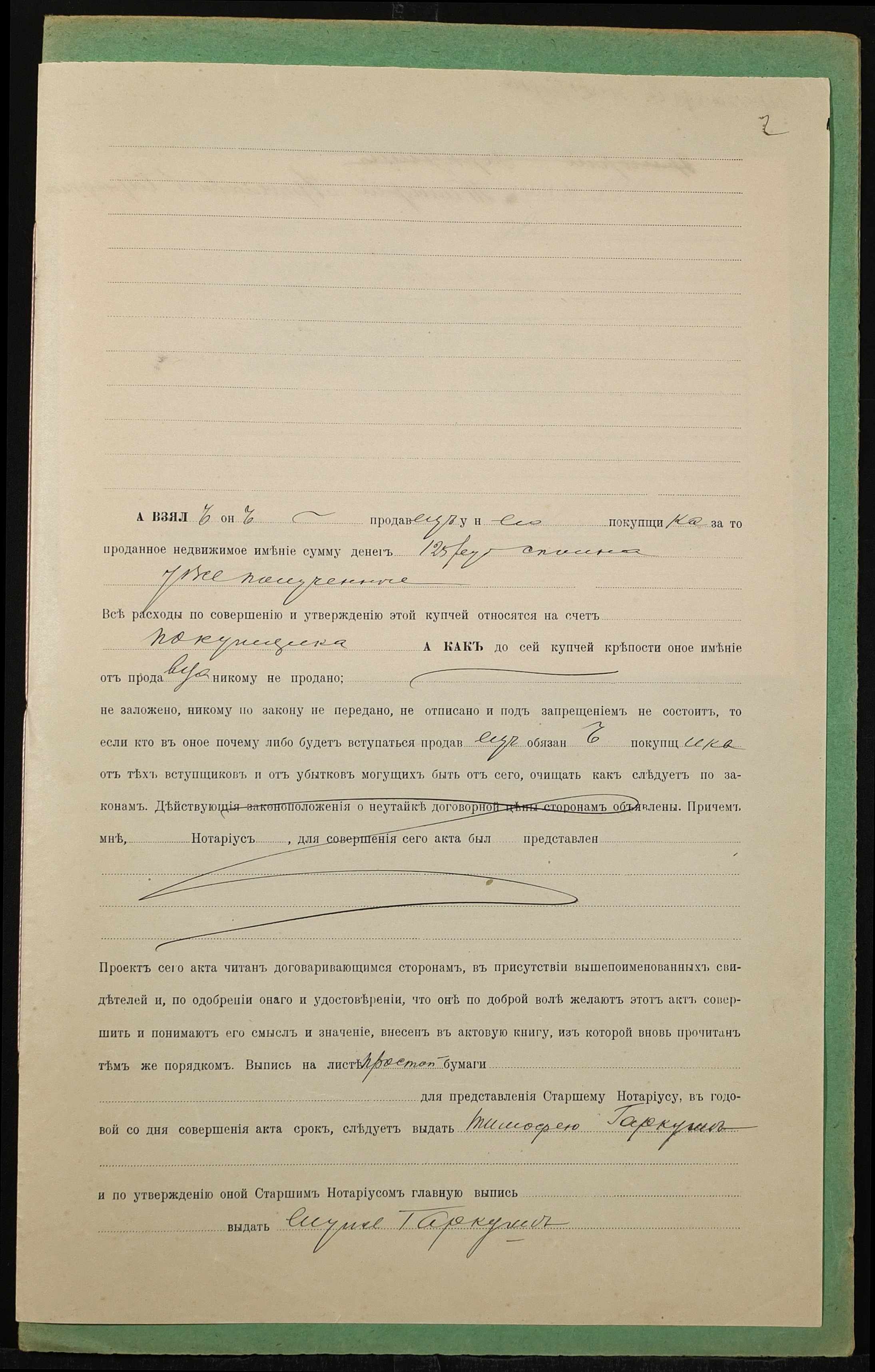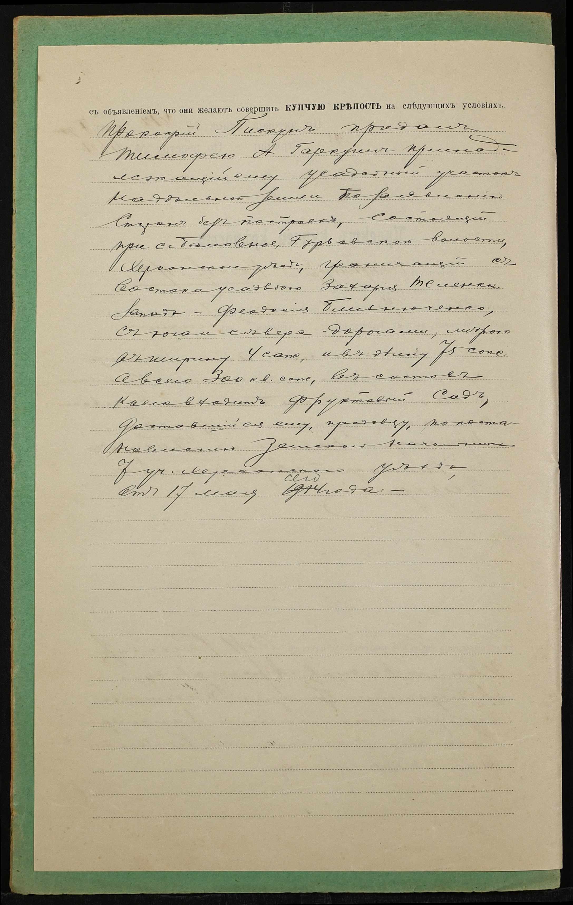 • • • • Справа № 1414 “Справа про вчинення купчої про продаж землі селянином Піскуном Прокопом Павловичем (Пискуном Прокофием Павловичем) на користь селянина Гаркуші Тимофія Артемовича (Гаркуши Тимофея Артемовича)”