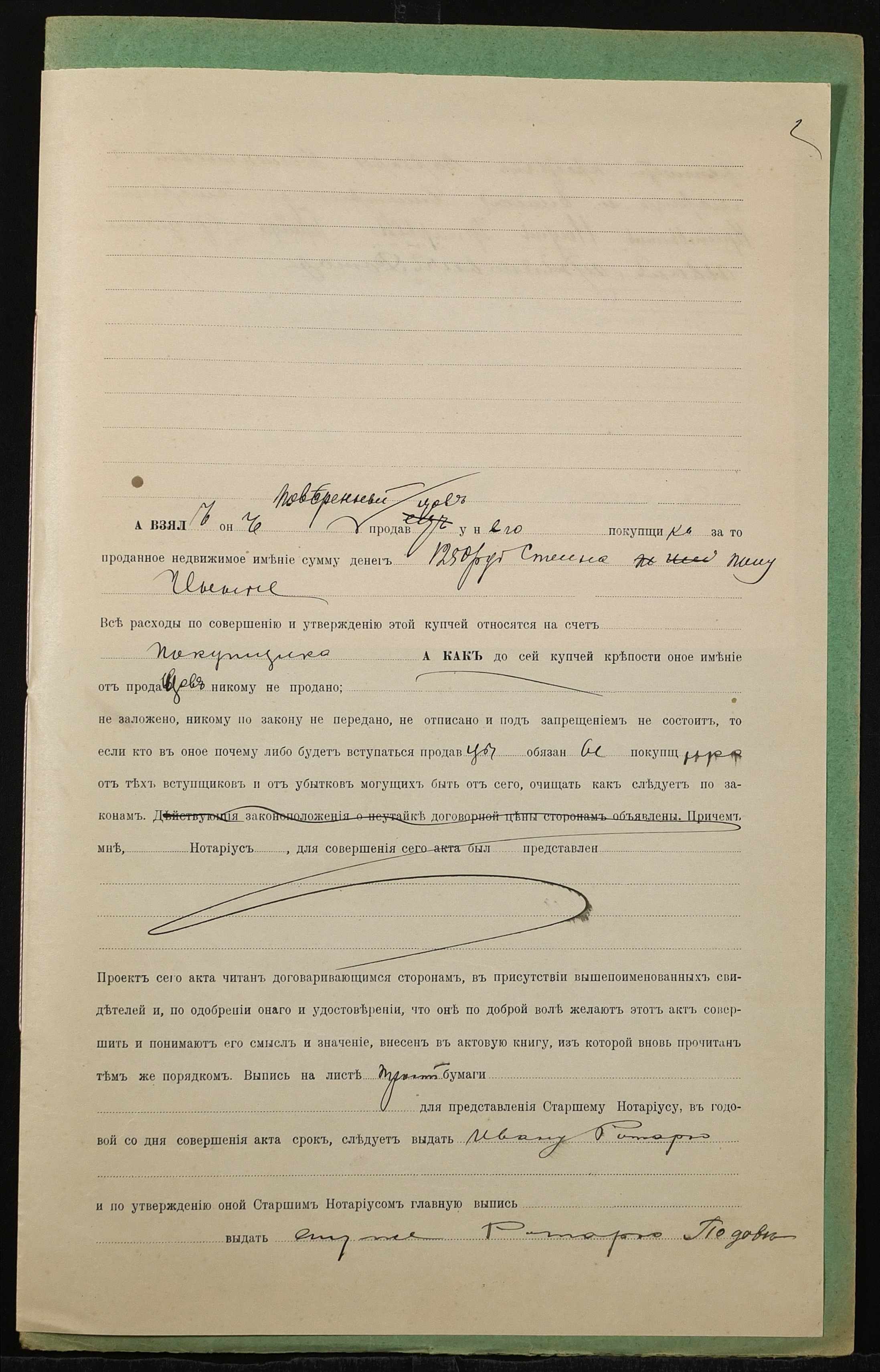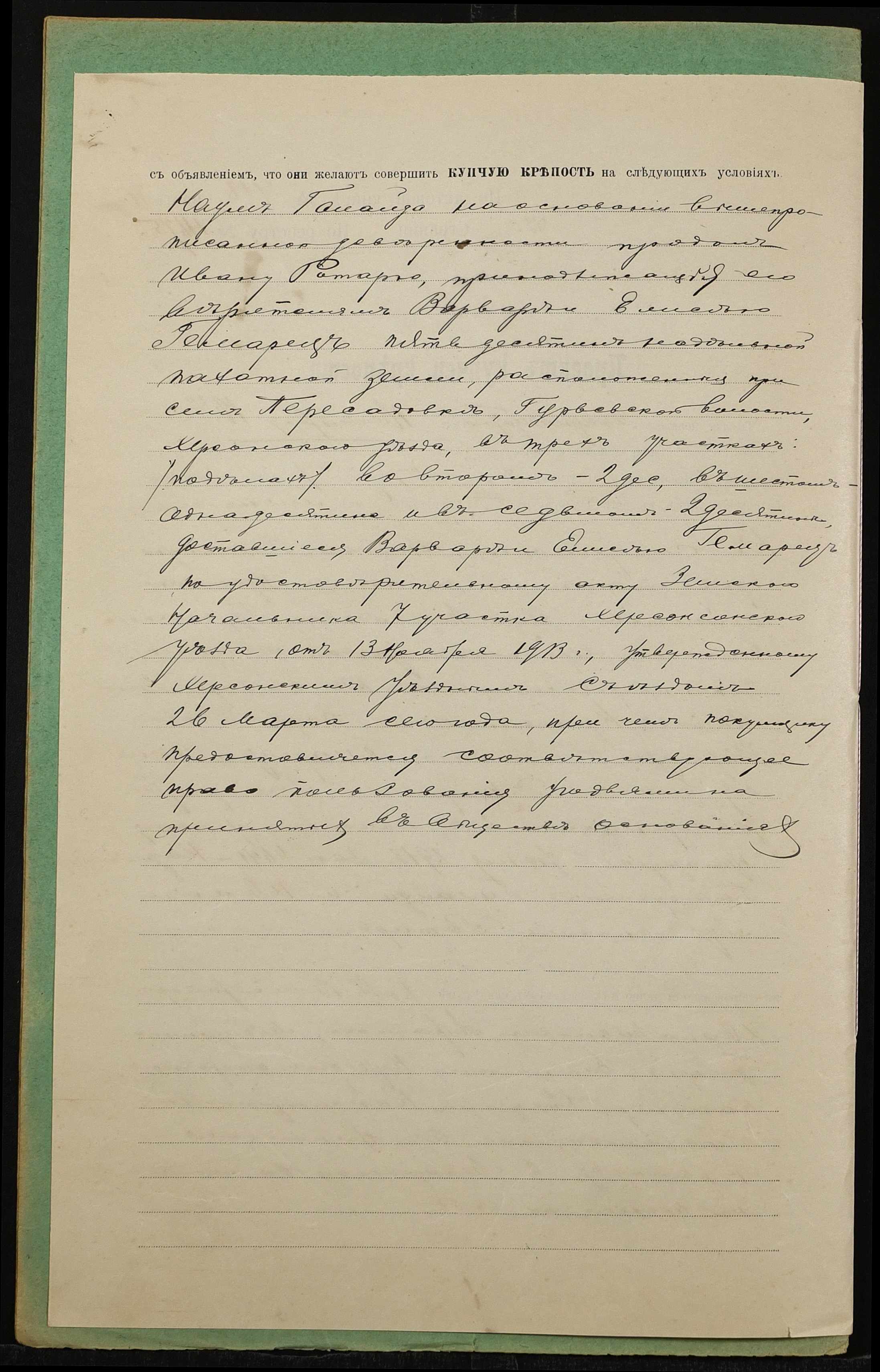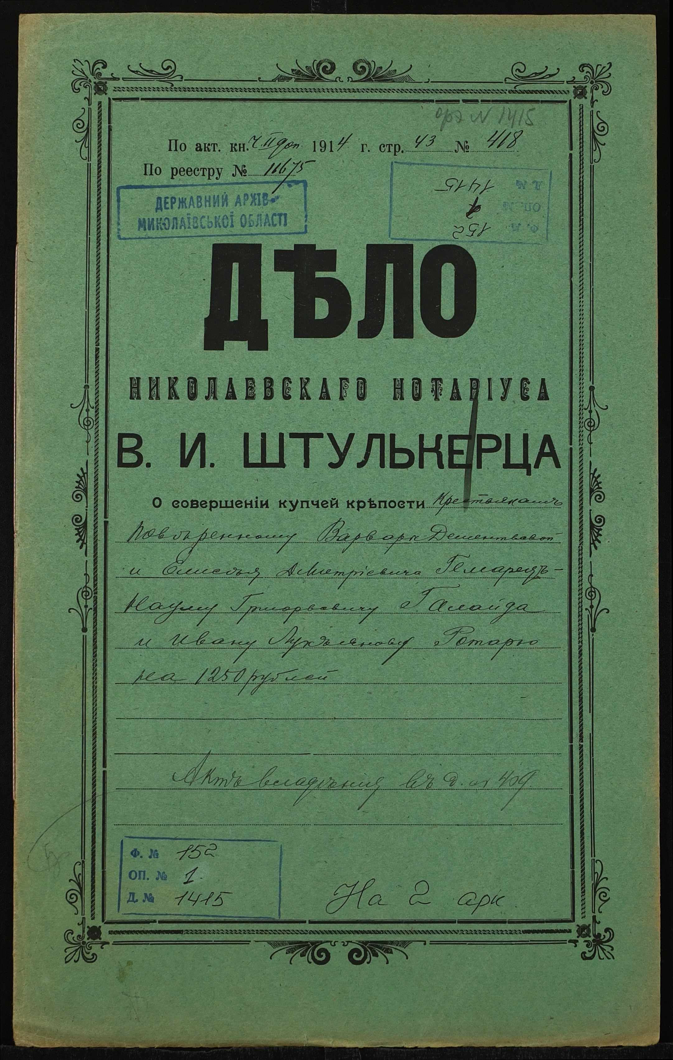 • • • • Справа № 1415 “Справа про вчинення купчої про продаж землі селянином Галайдою Наумом Григоровичем (Галайдой Наумом Григорьевичем), повіреним селян Гемарець Варвари Дементіївни (Гемарец Варвары Дементьевны) і Гемарця Єлисея Дмитровича (Гемарца Елисея Дмитриевича), на користь селянина Ротаря Івана Лук’яновича (Ротаря Ивана Лукьяновича)”
