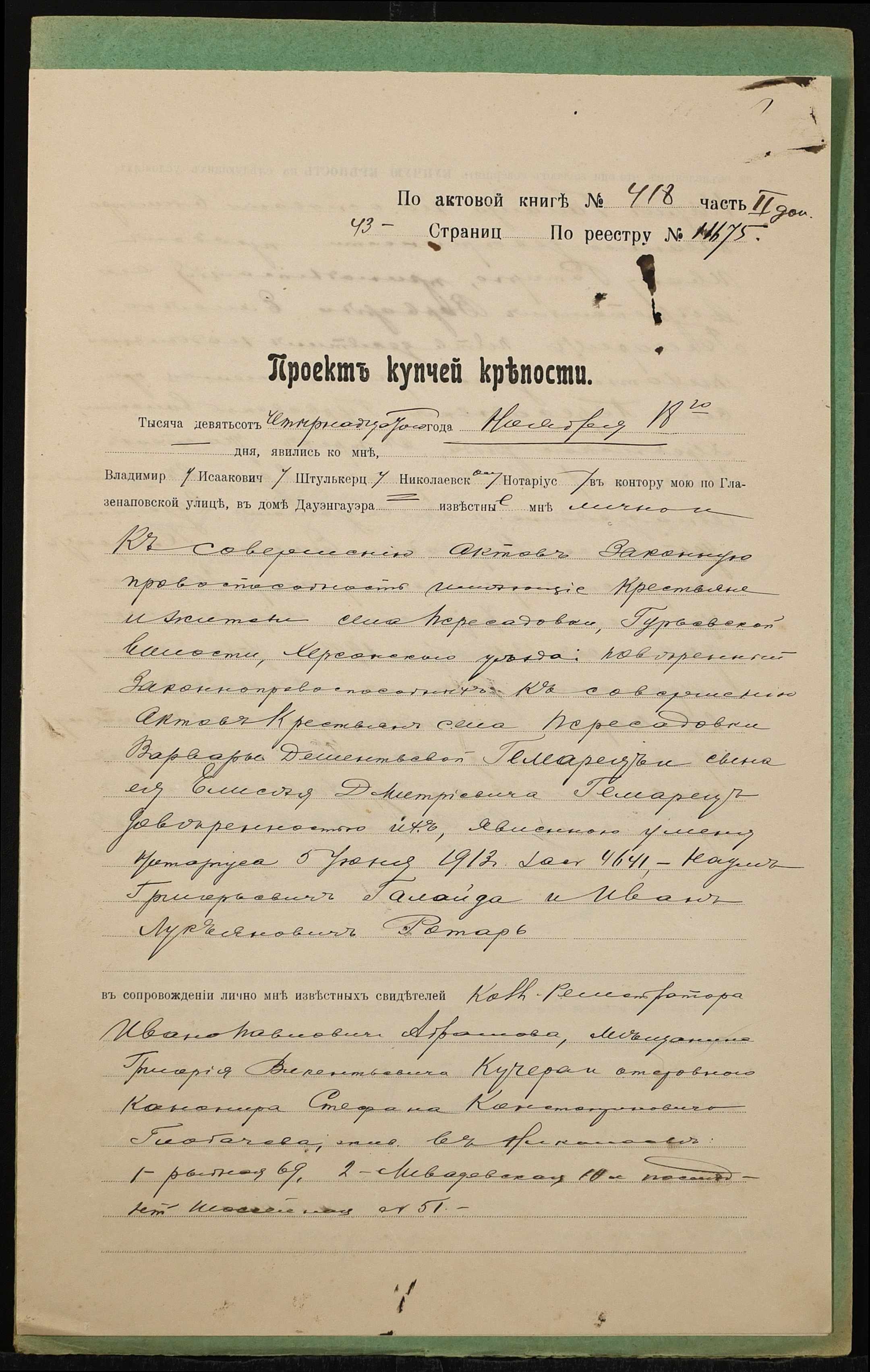 ◦ ◦ Фонд № 152 “Контора миколаївського нотаріуса Херсонського окружного суду Штулькерца Володимира Ісааковича”