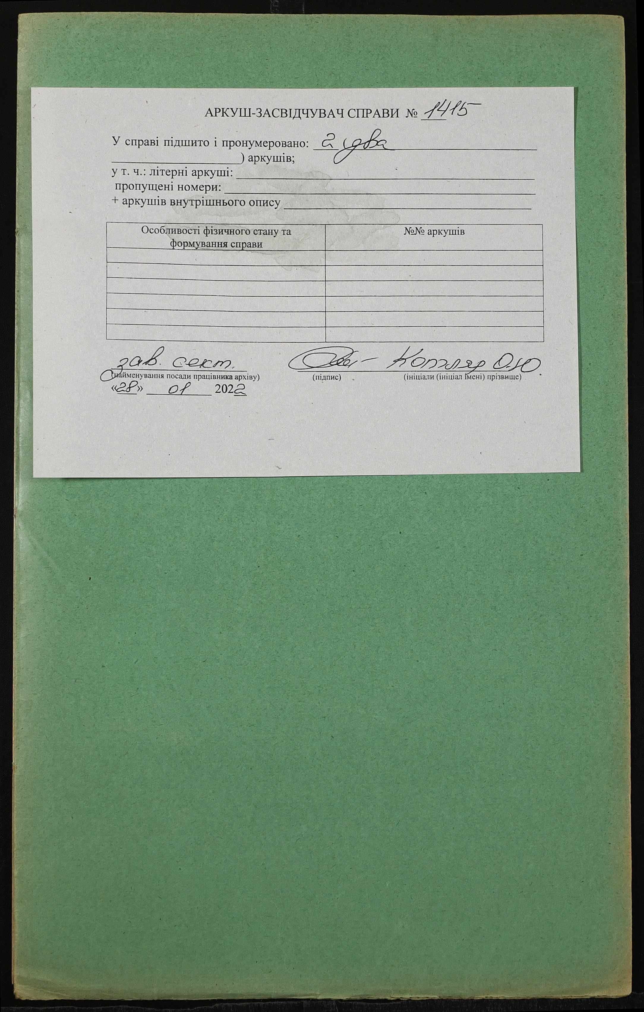 Фонд 152 / Опис 1 / Справа 1415