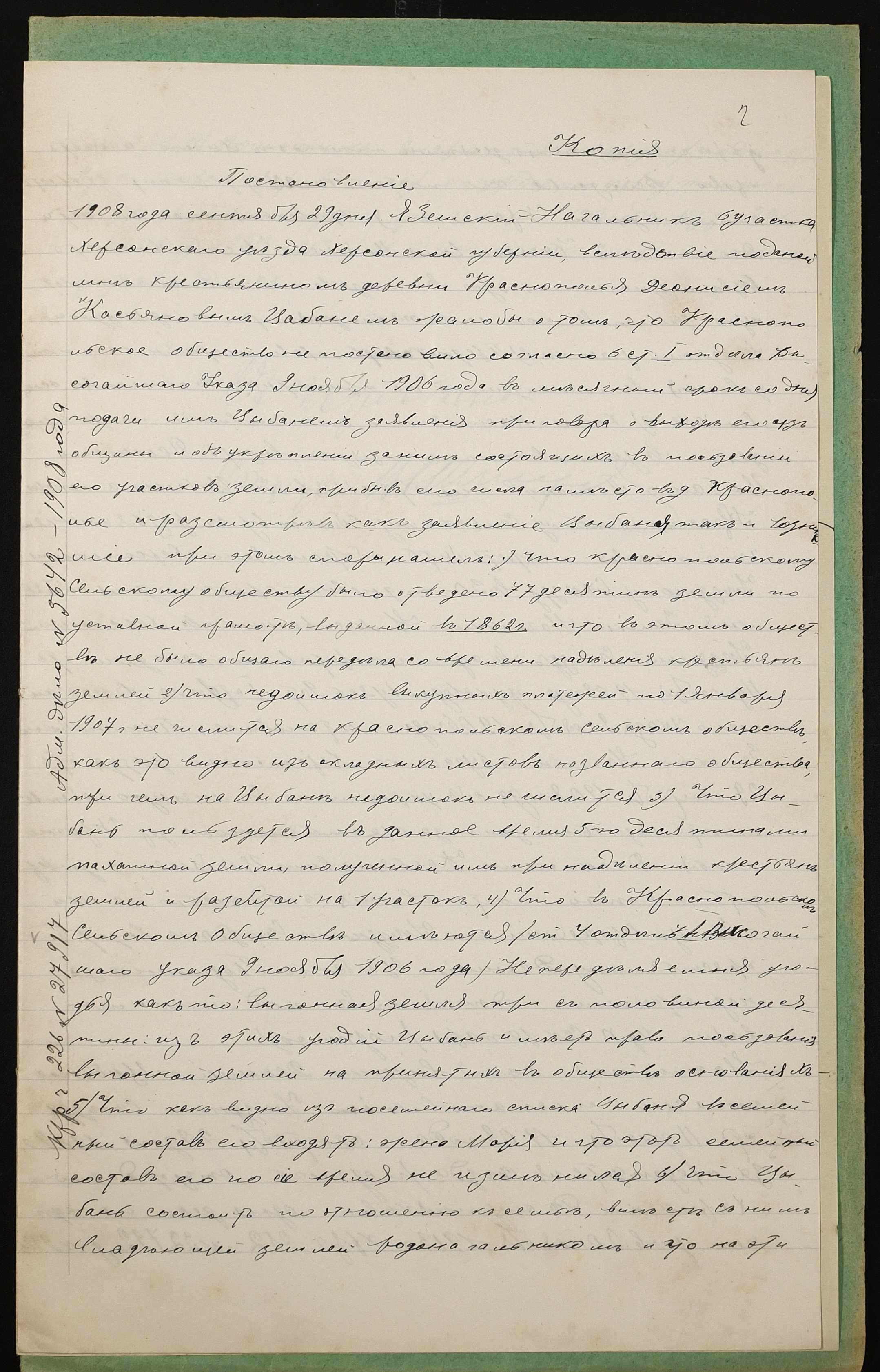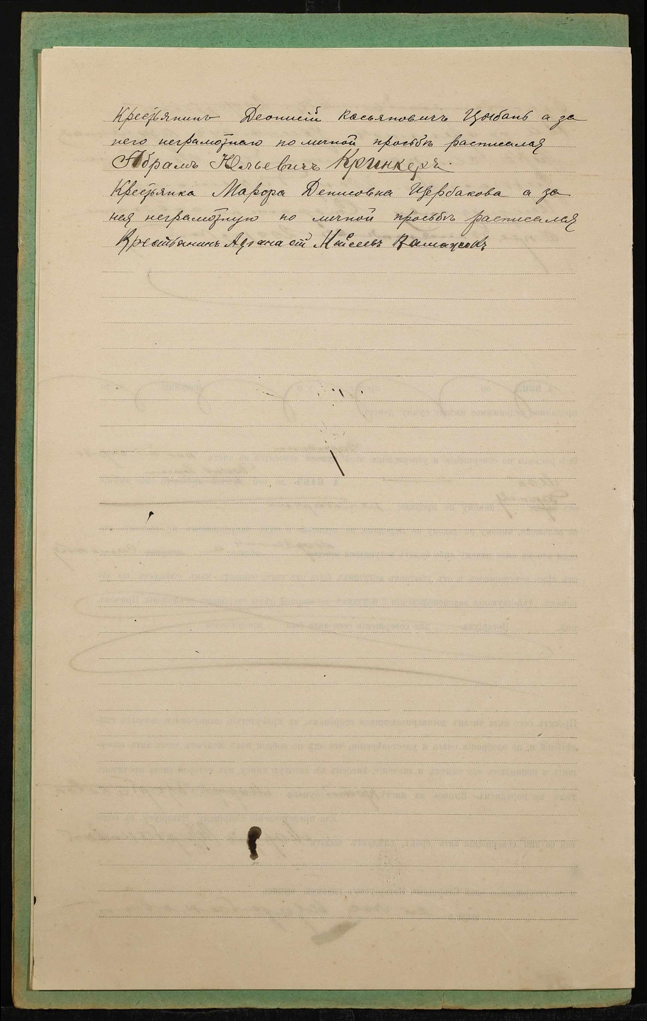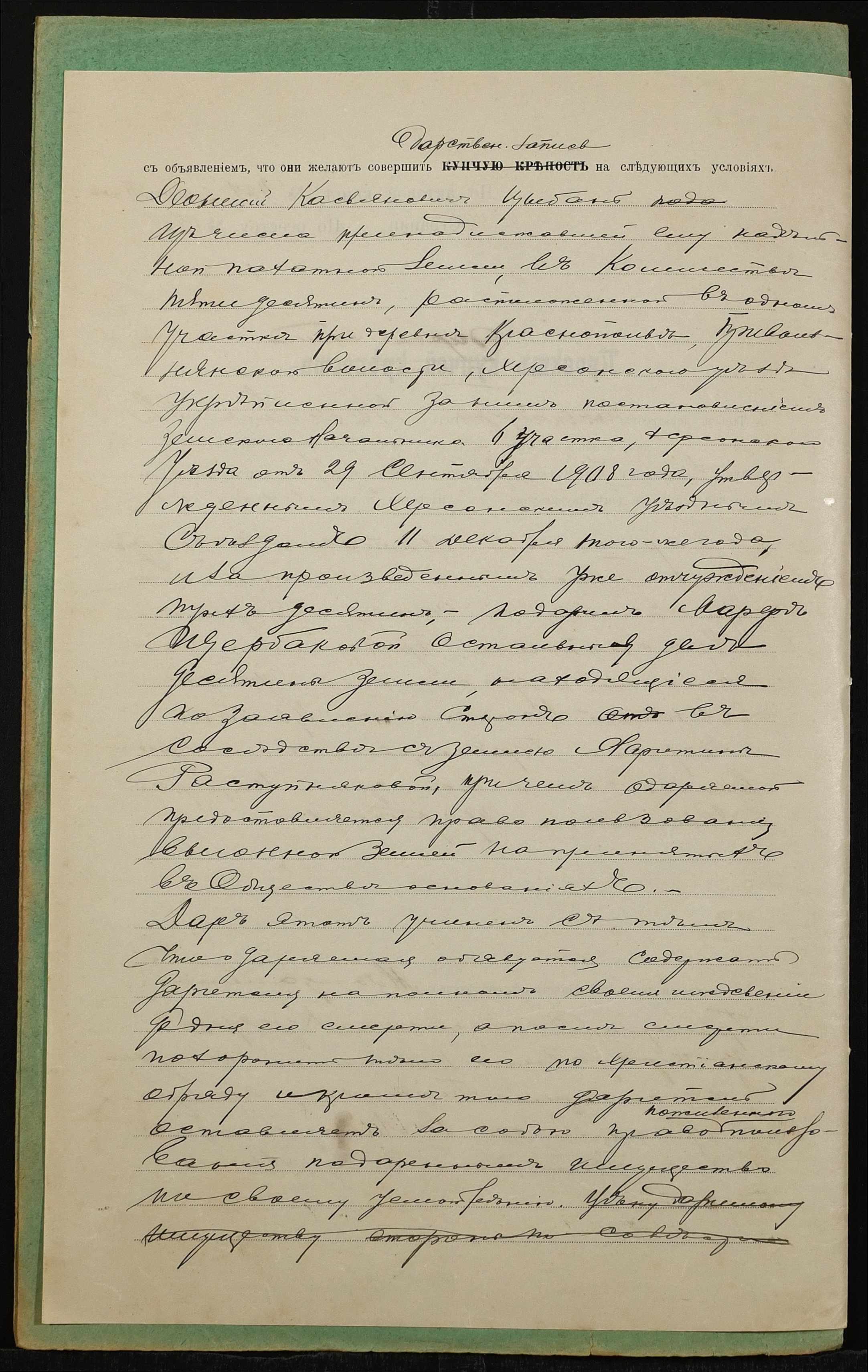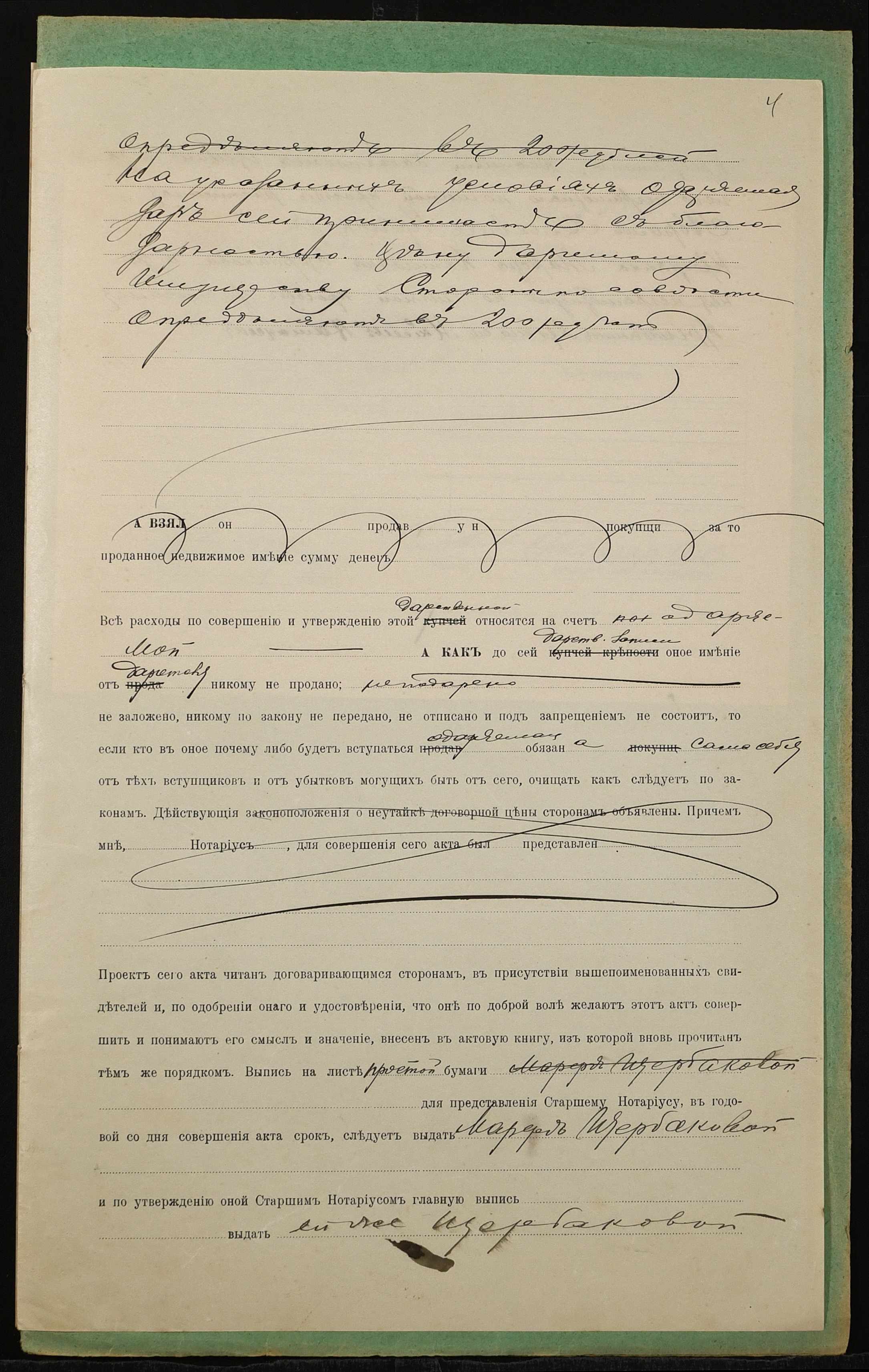 • • • • Справа № 1417 “Справа про вчинення дарчої на землю, передану селянином Цибанєм Деонісієм Касьяновичем (Цыбанем Деонисием Касьяновичем) у власність селянки Щербакової Марфи Денисівни (Щербаковой Марфы Денисовны)”