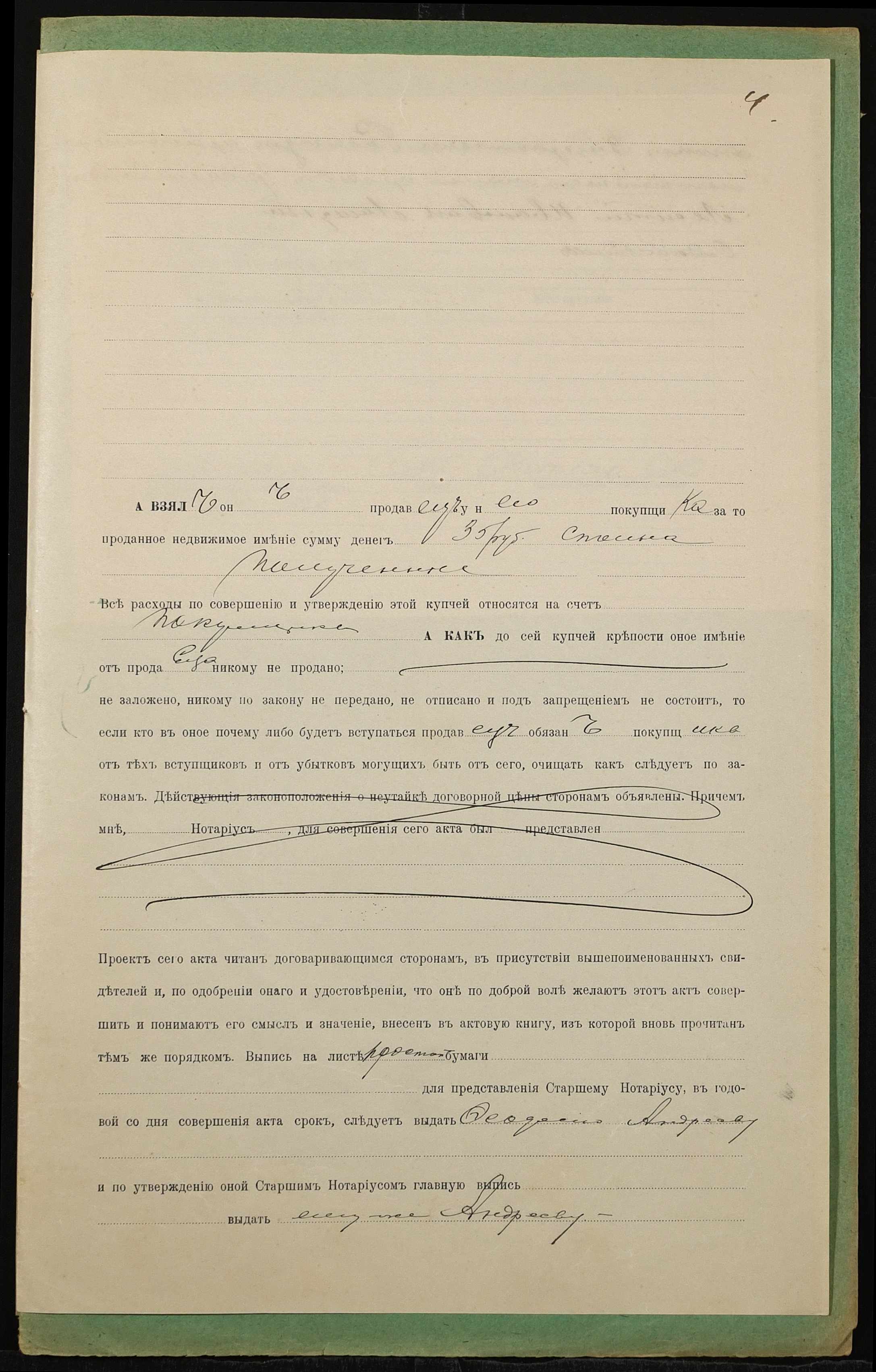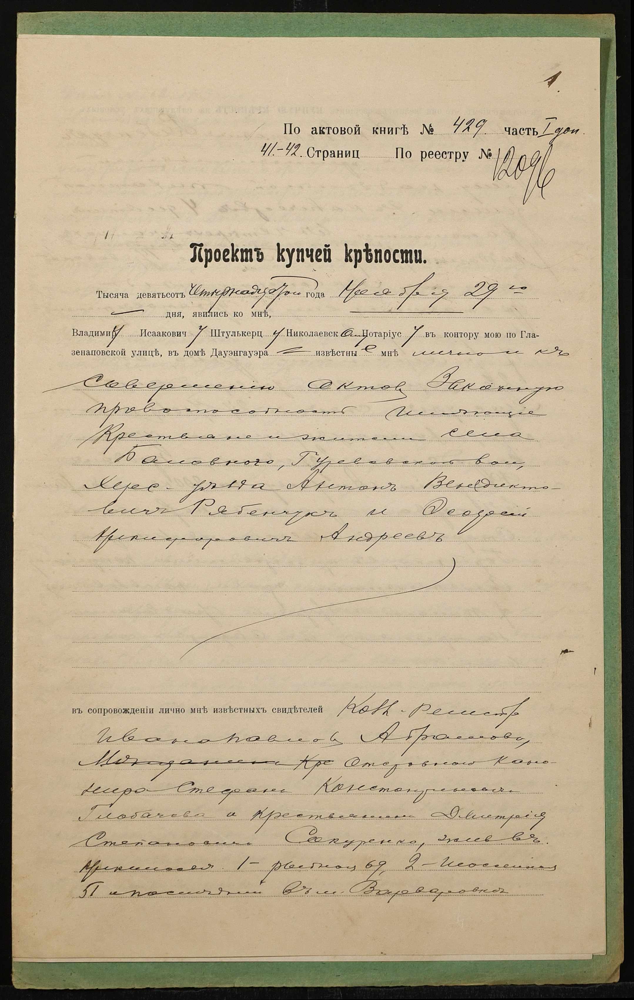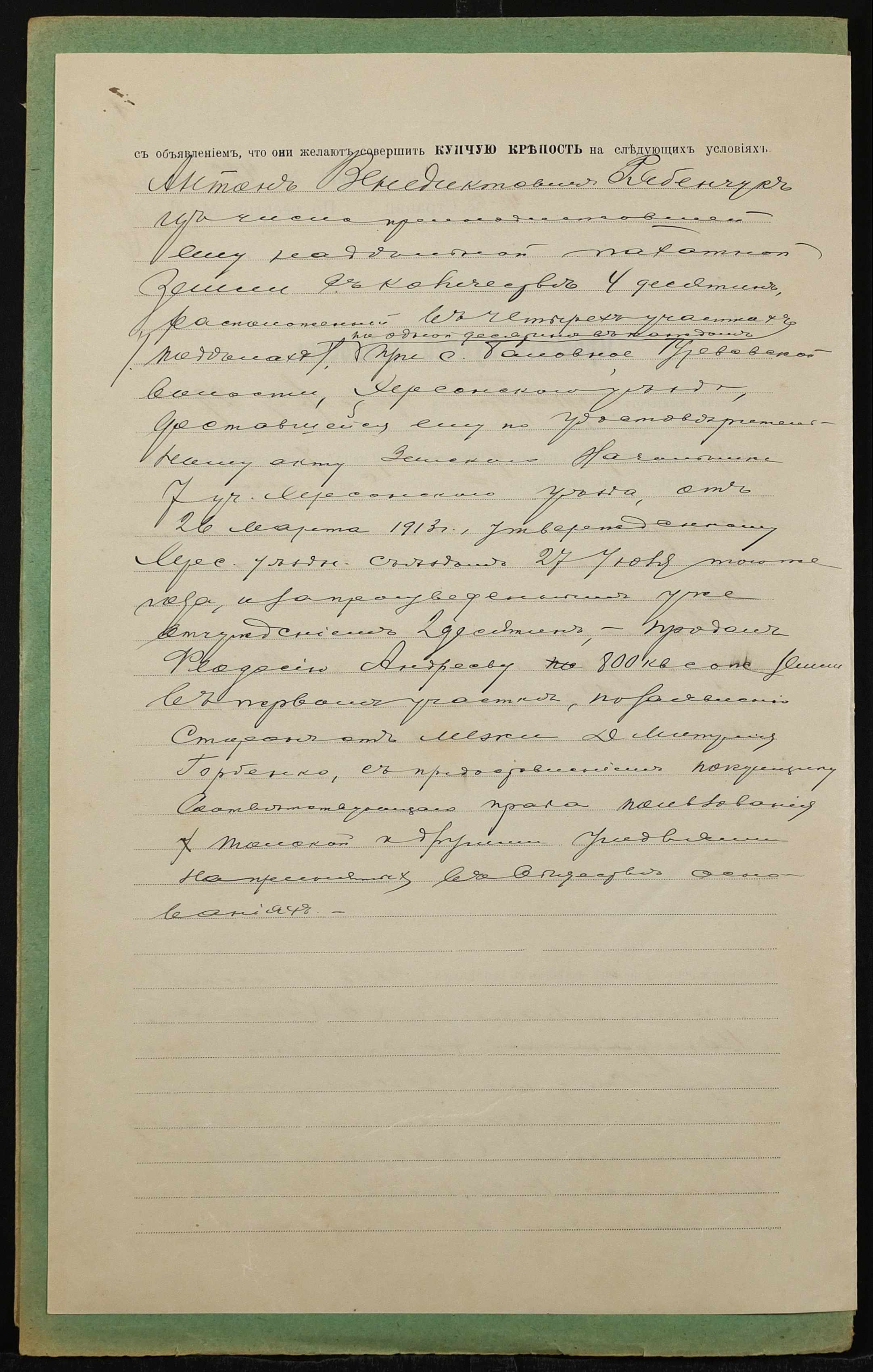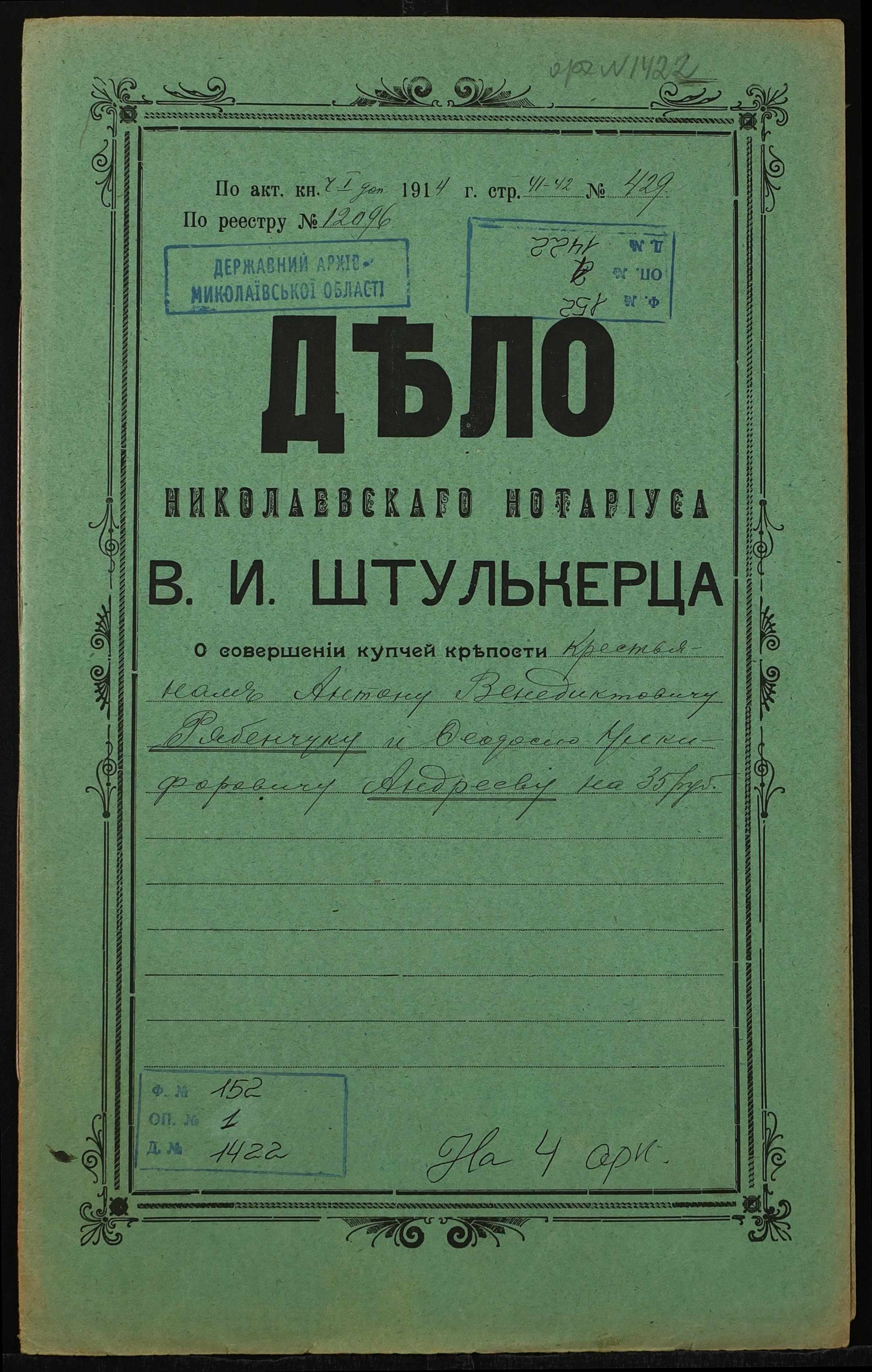 • • • • Справа № 1422 “Справа про вчинення купчої про продаж землі селянином Рябенчуком Антоном Венедиктовичем (Рябенчуком Антоном Венедиктовичем) на користь селянина Андреєва Феодосія Никифоровича (Андреева Феодосия Никифоровича)”