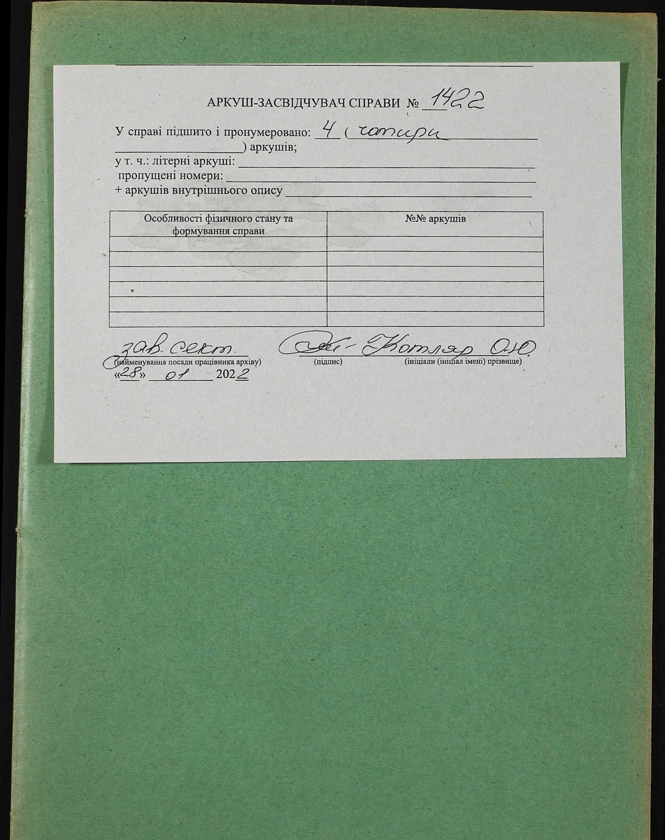 Фонд 152 / Опис 1 / Справа 1422