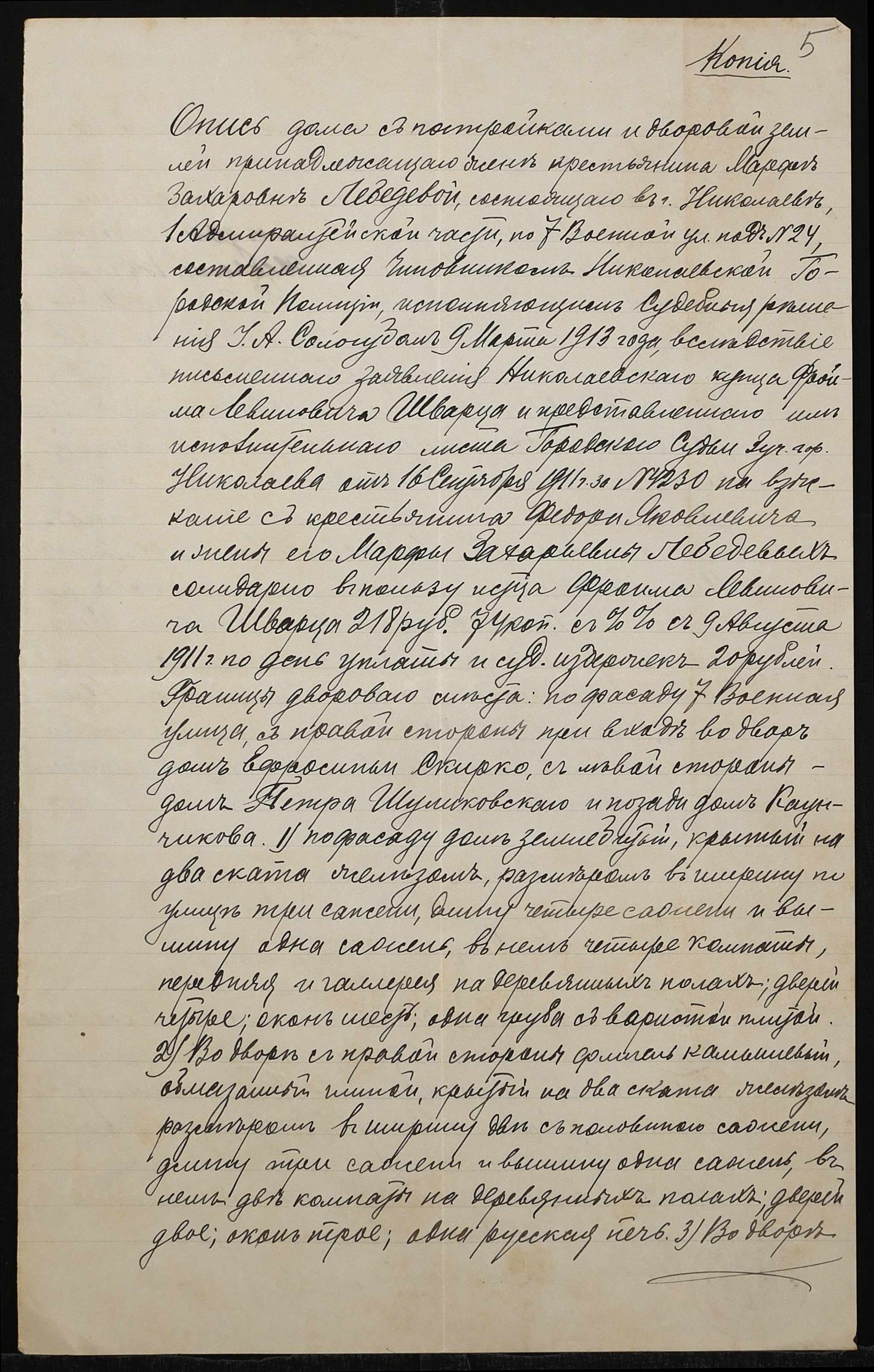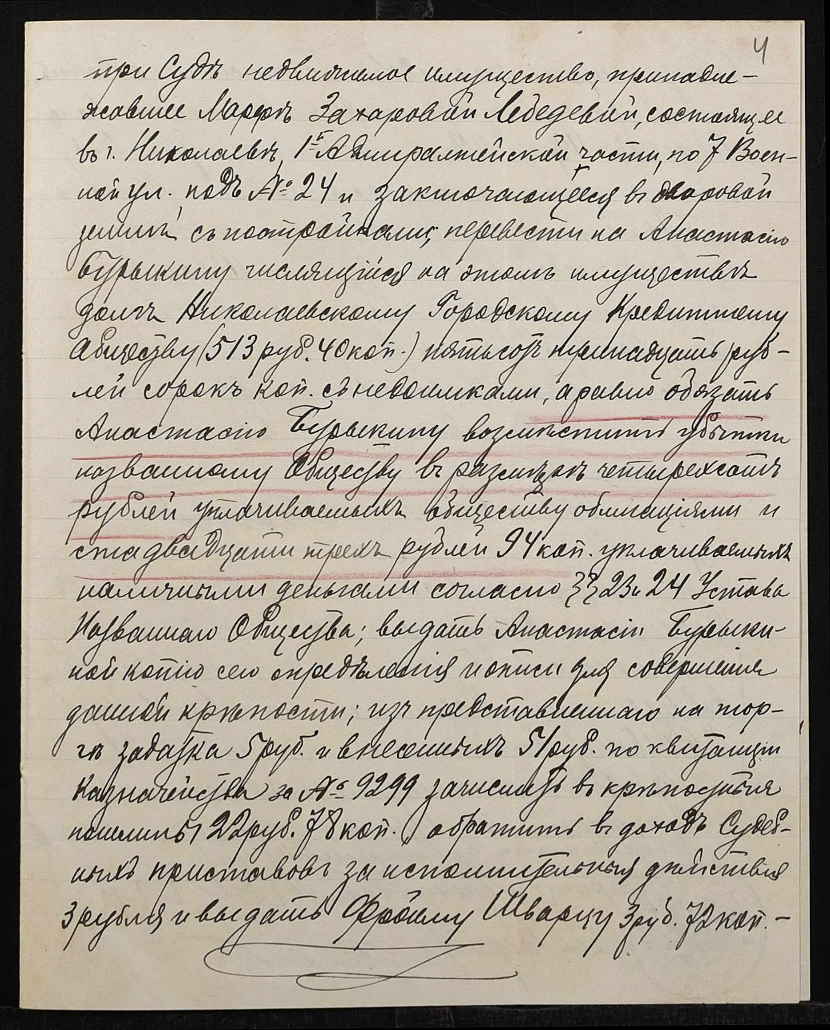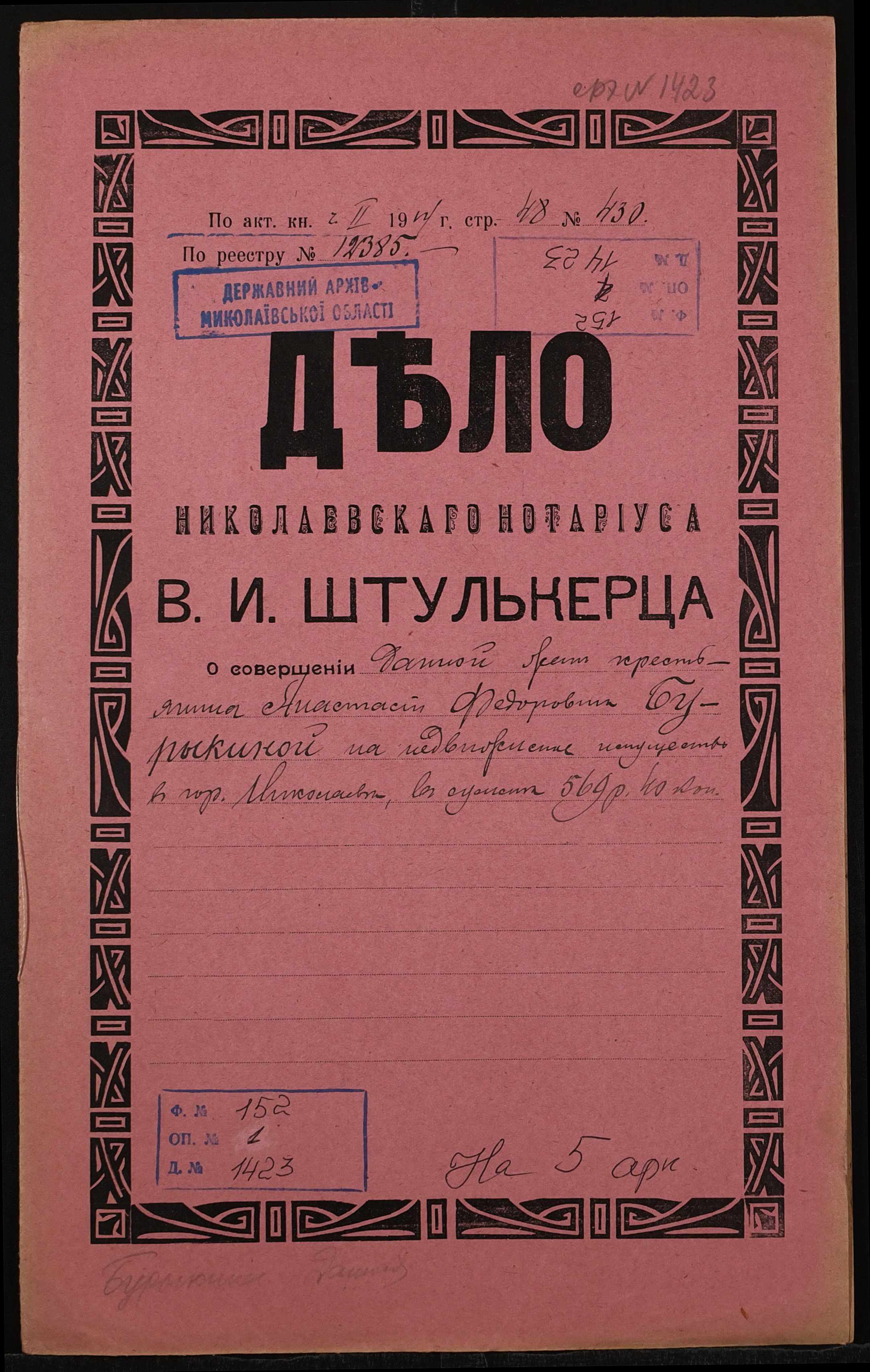 • • • • Справа № 1423 “Справа про вчинення данної на нерухоме майно у м. Миколаїв, придбане дружиною селянина Бурикіною Анастасією Федорівною (Бурыкиной Анастасией Федоровной) з публічних торгів”