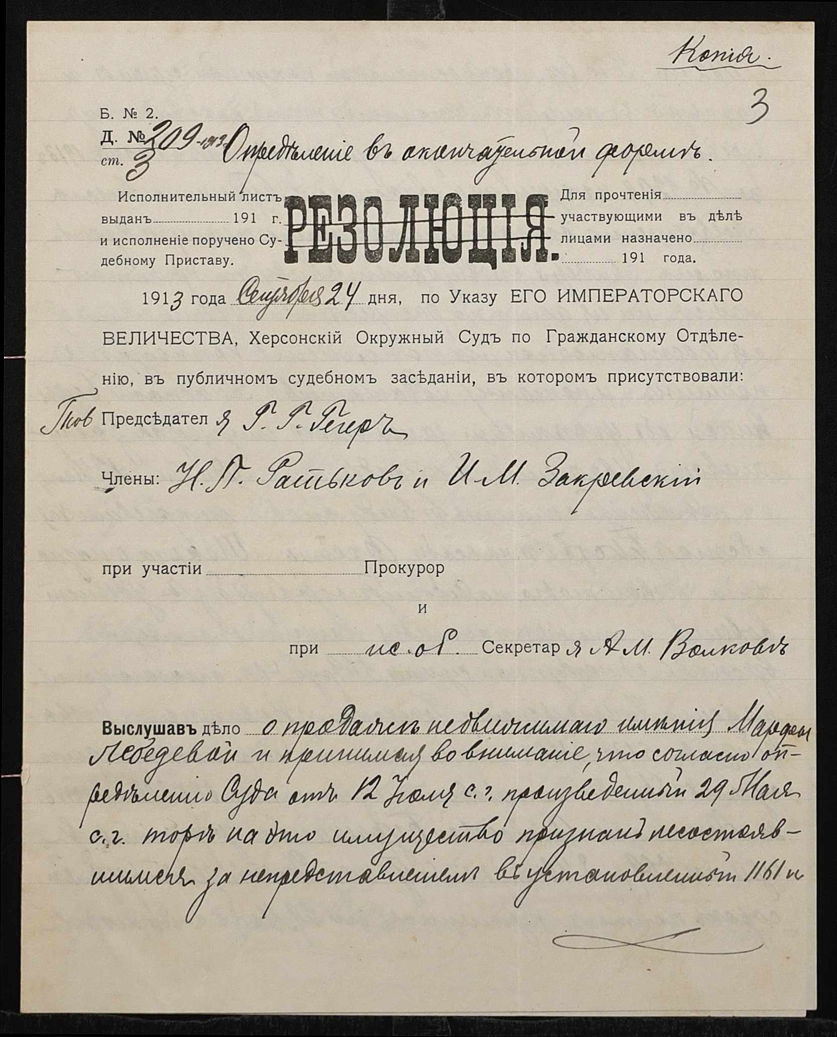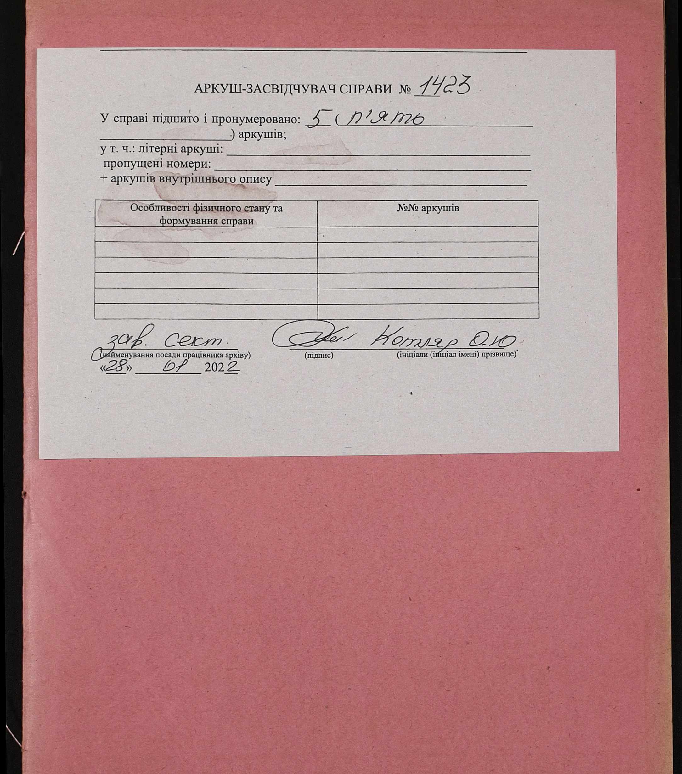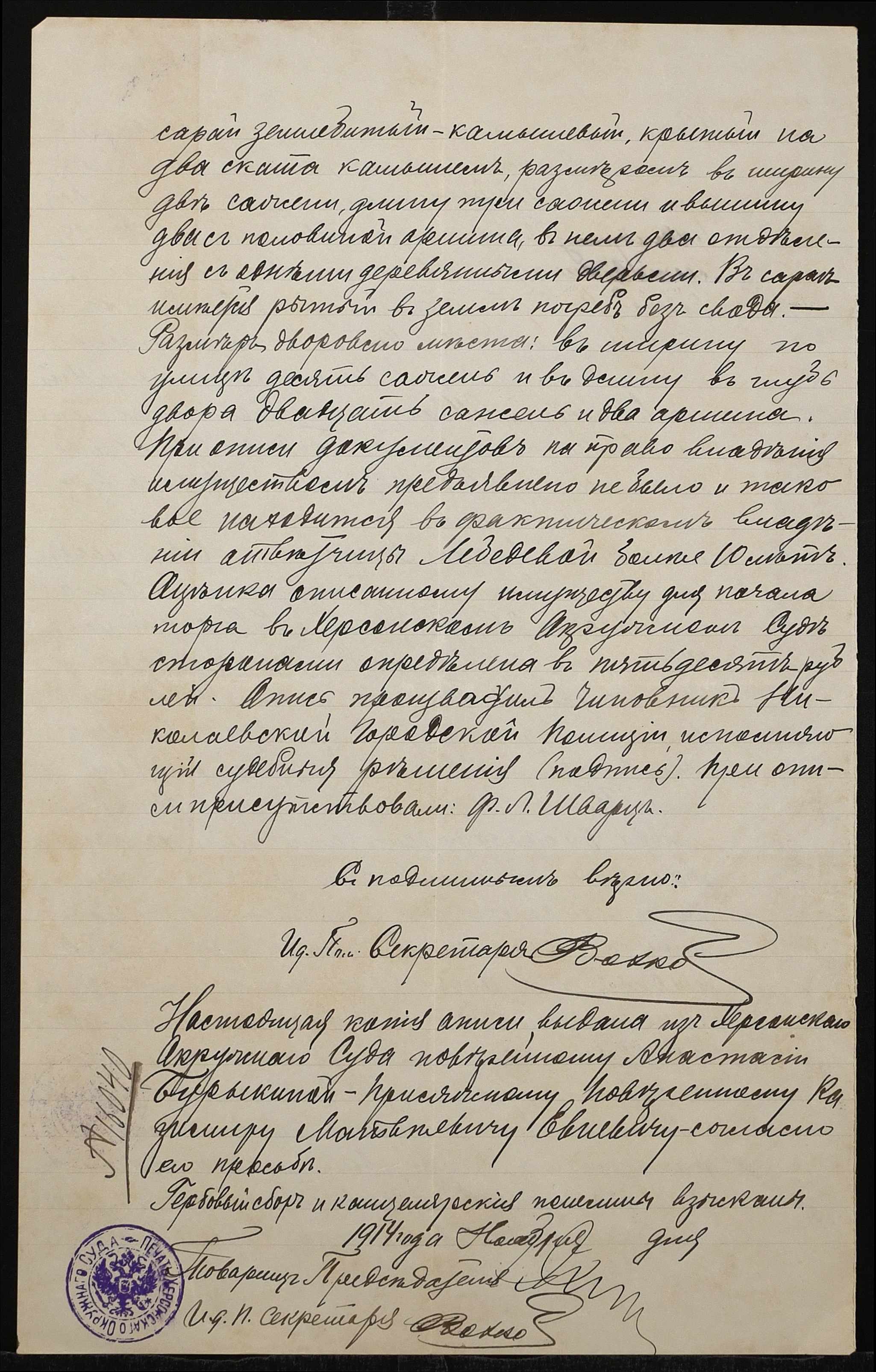 • • • • Справа № 1423 “Справа про вчинення данної на нерухоме майно у м. Миколаїв, придбане дружиною селянина Бурикіною Анастасією Федорівною (Бурыкиной Анастасией Федоровной) з публічних торгів”
