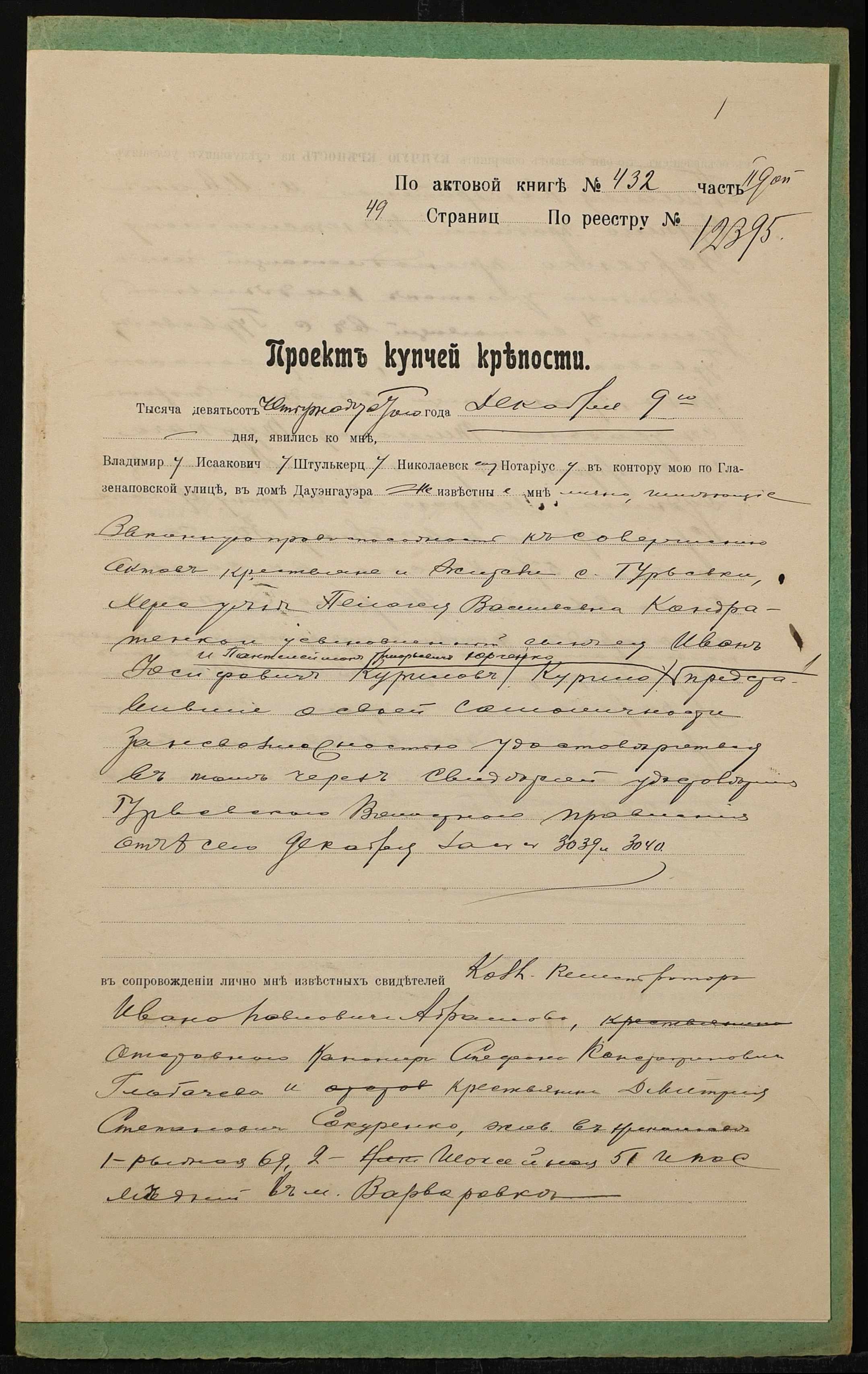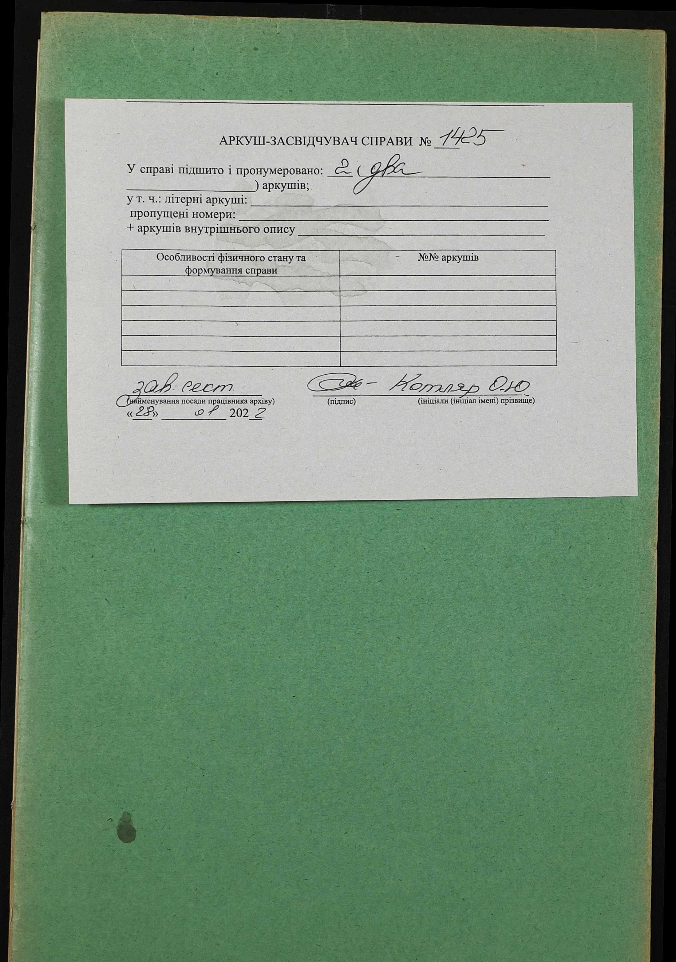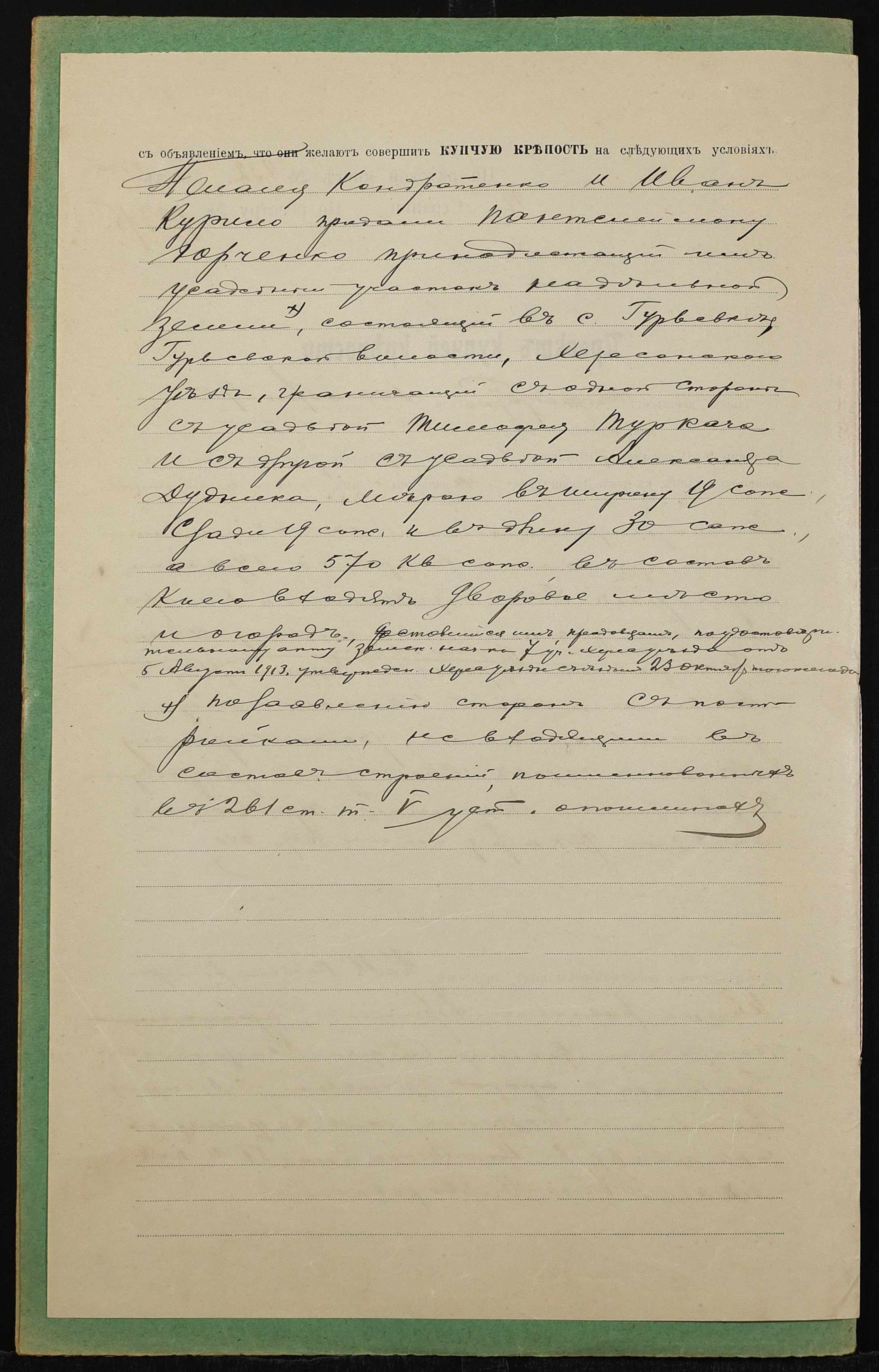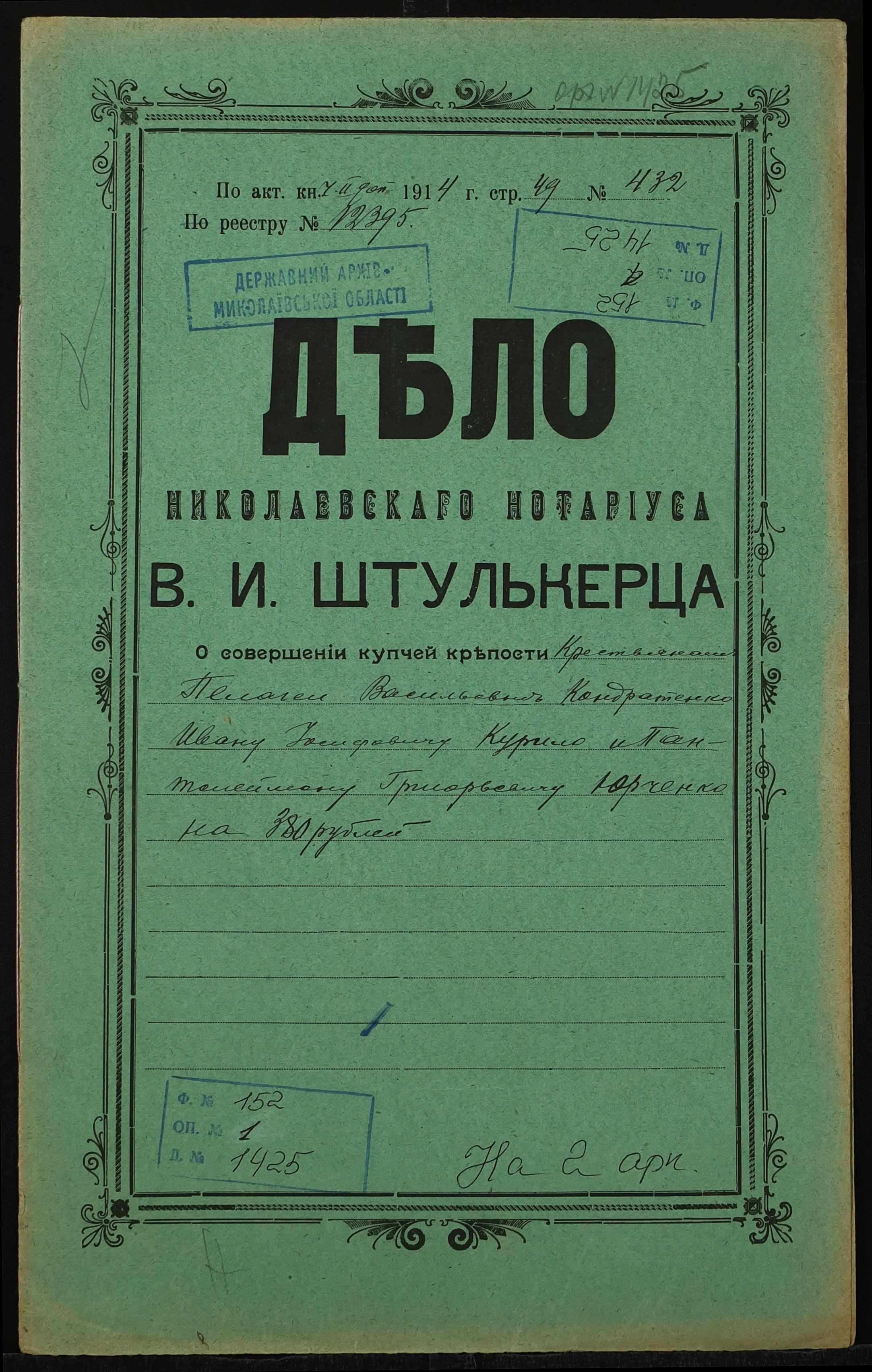 • • • • Справа № 1425 “Справа про вчинення купчої про продаж землі селянами Кондратенко Пелагеєю Василівною (Кондратенко Пелагеей Васильевной) і Курилом Іваном Йосиповичем (Курило Иваном Иосифовичем) на користь селянина Юрченка Пантелеймона Григоровича (Юрченко Пантелеймона Григорьевича)”