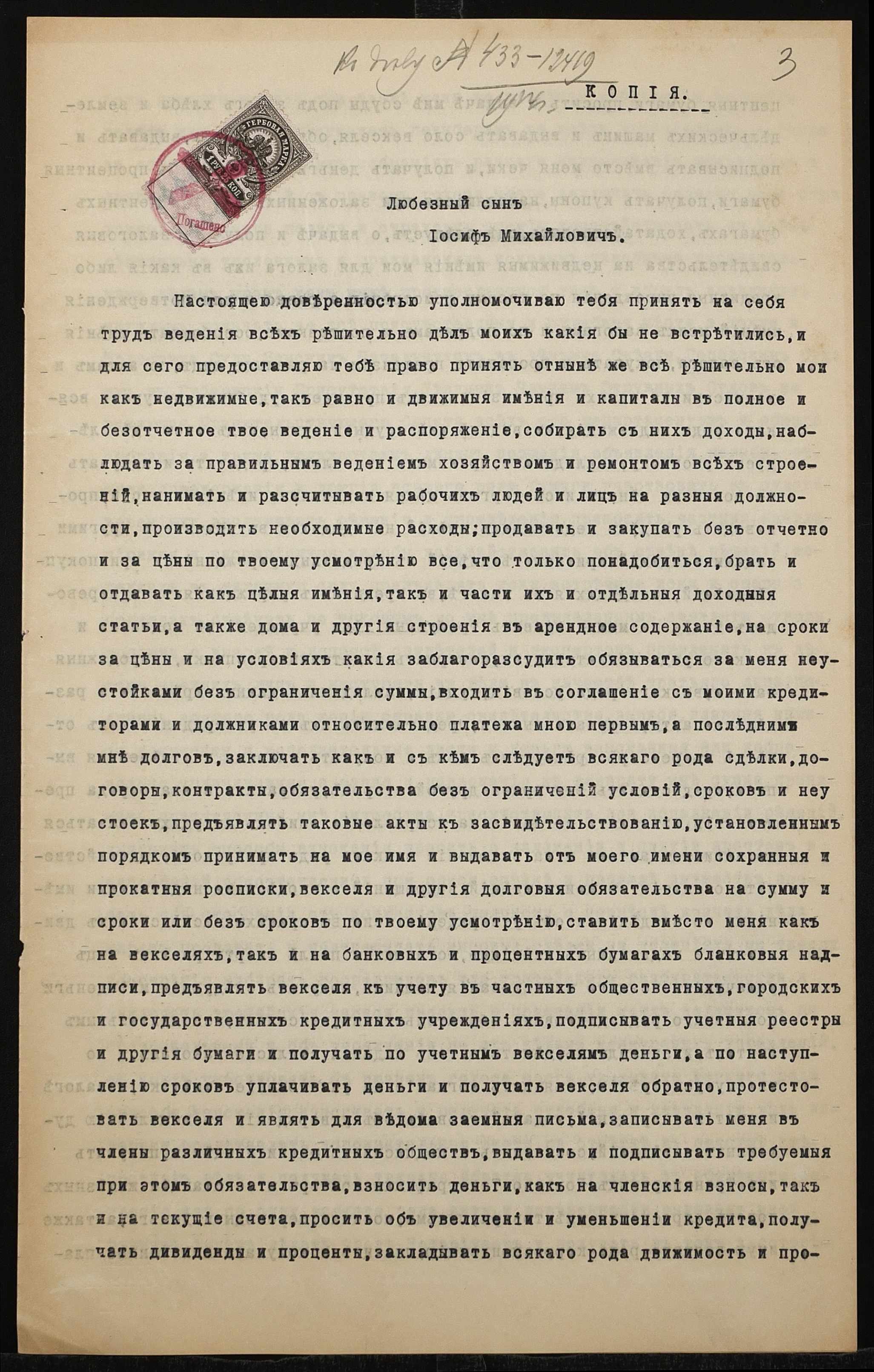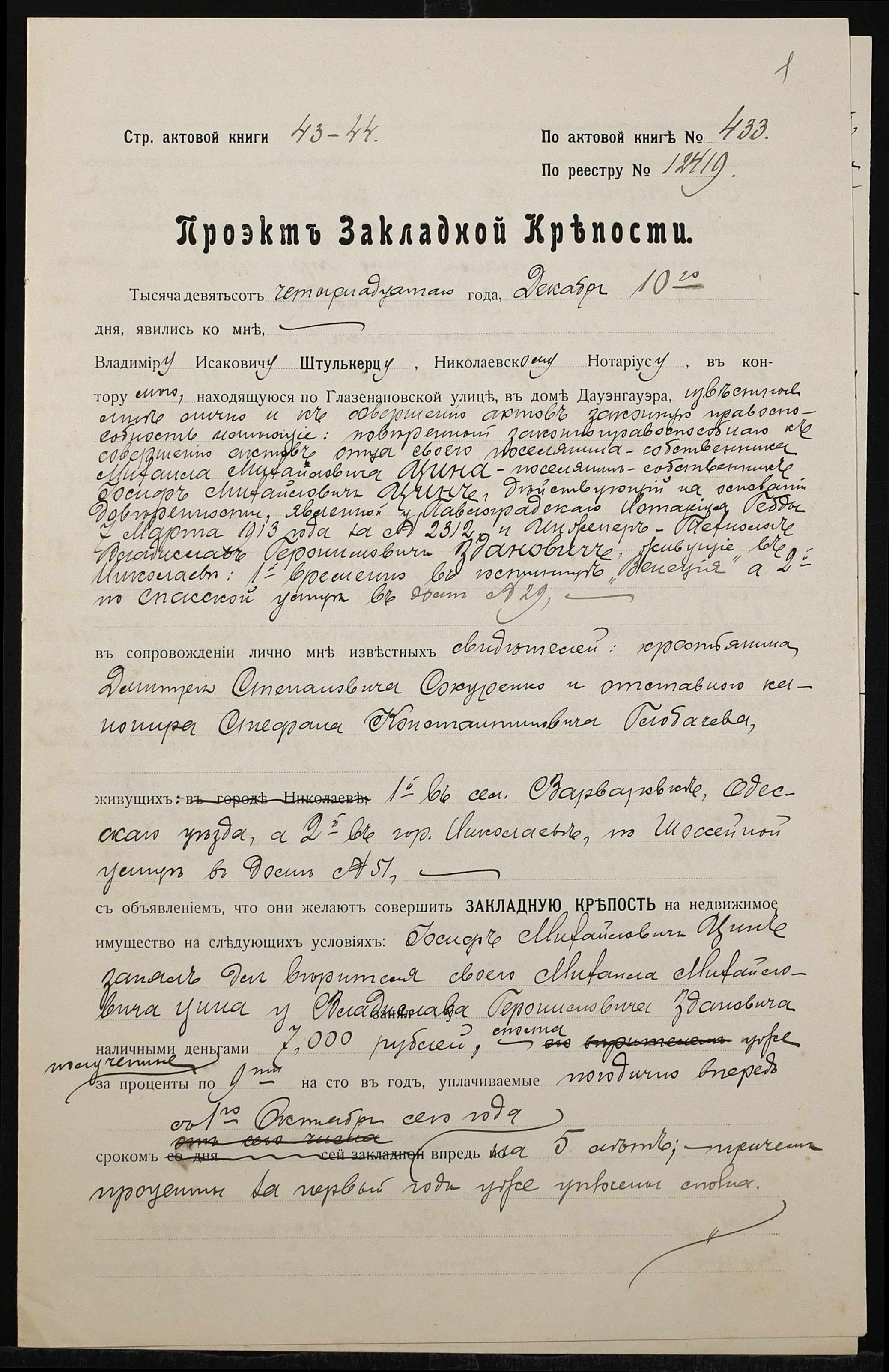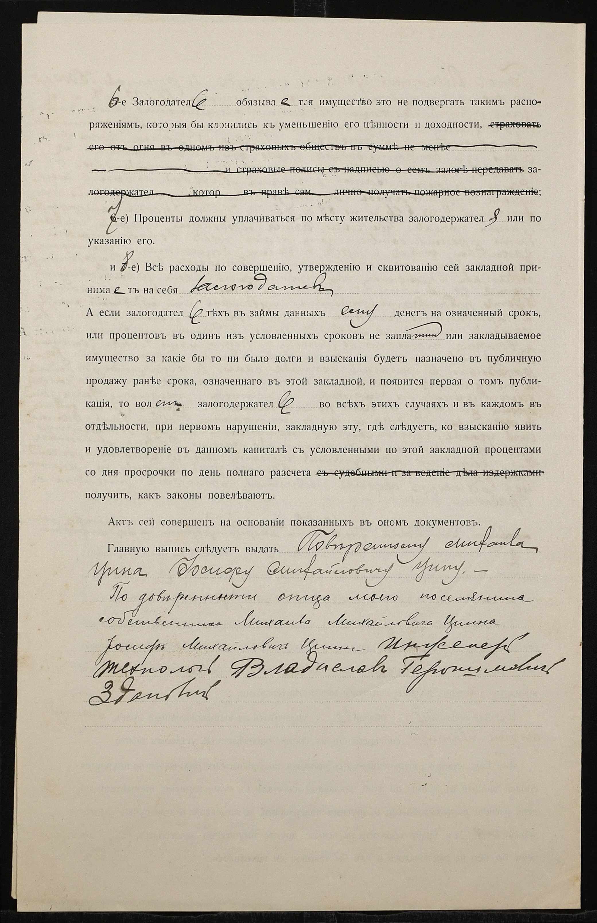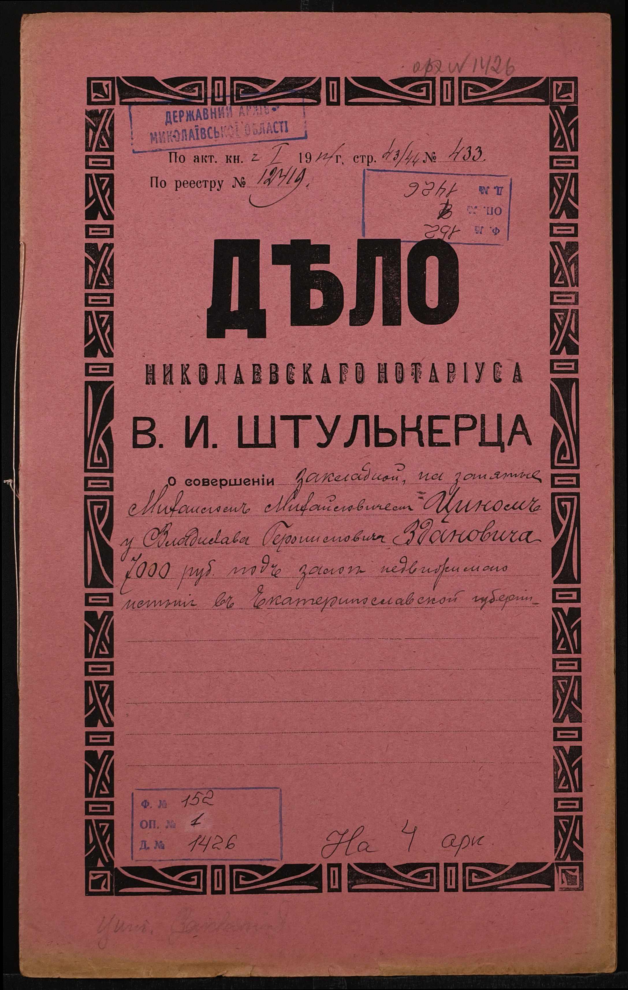 • • • • Справа № 1426 “Справа про вчинення заставної на нерухоме майно у Катеринославській губернії, закладене Цином Михайлом Михайловичем (Цыном Михаилом Михайловичем) – Здановичу Владиславу Геронимовичу (Здановичу Владиславу Геронимовичу)”