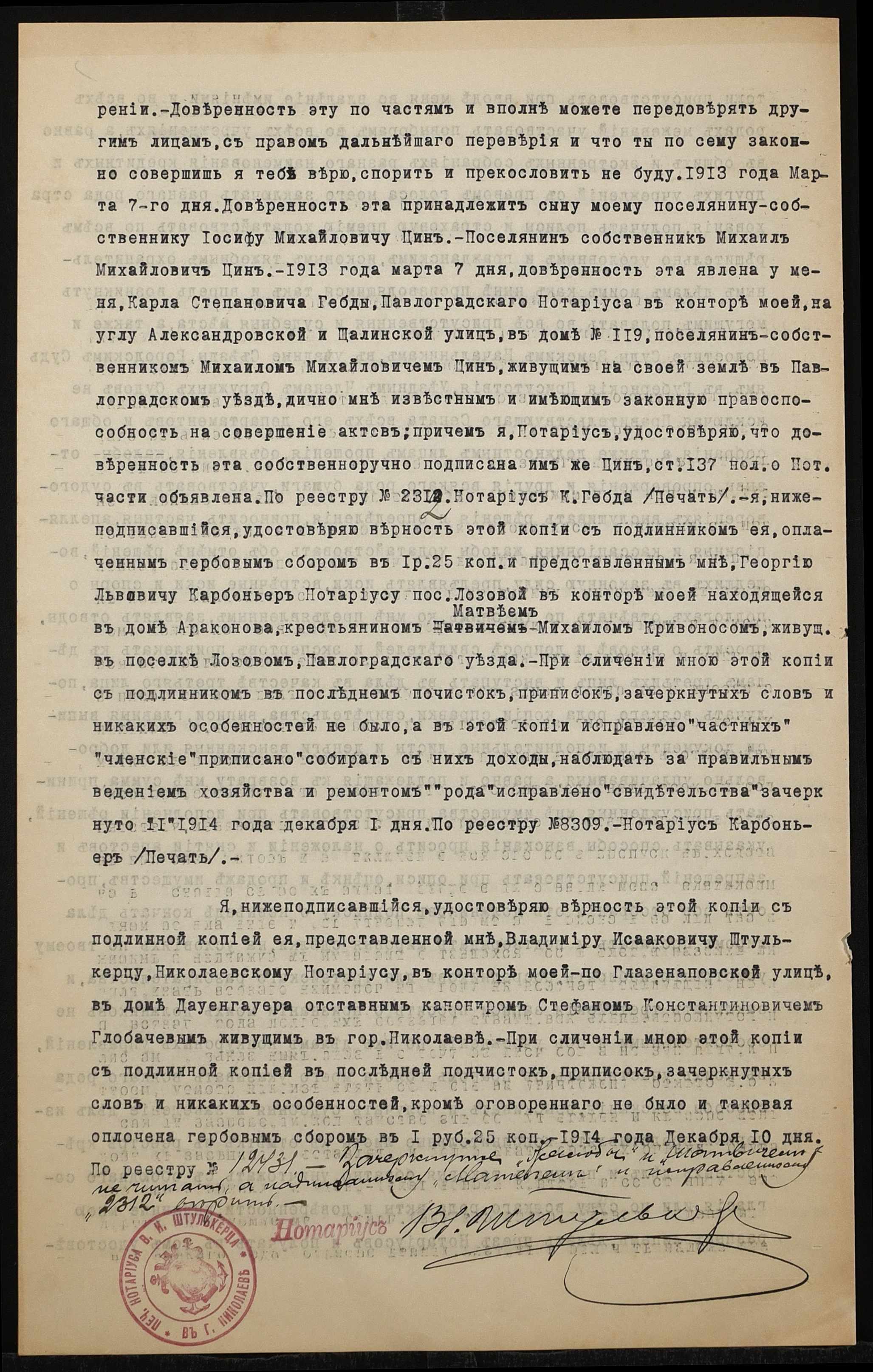 ◦ ◦ Фонд № 152 “Контора миколаївського нотаріуса Херсонського окружного суду Штулькерца Володимира Ісааковича”