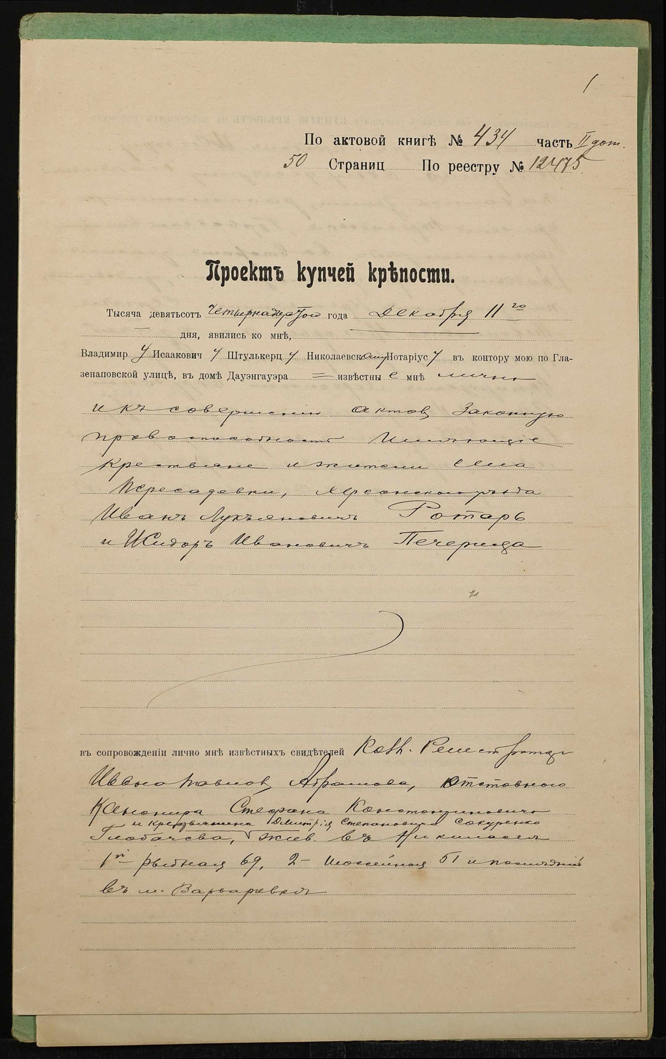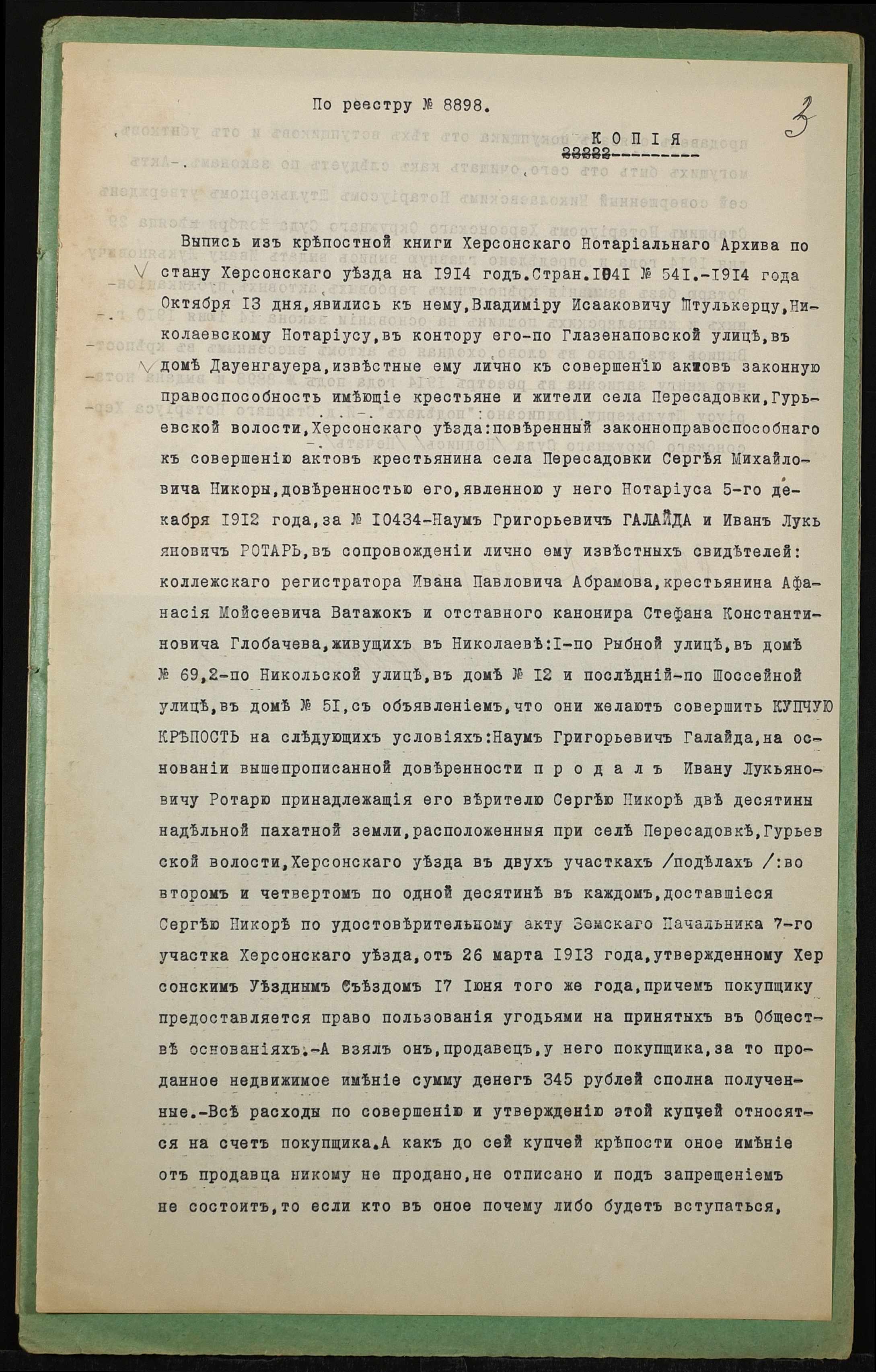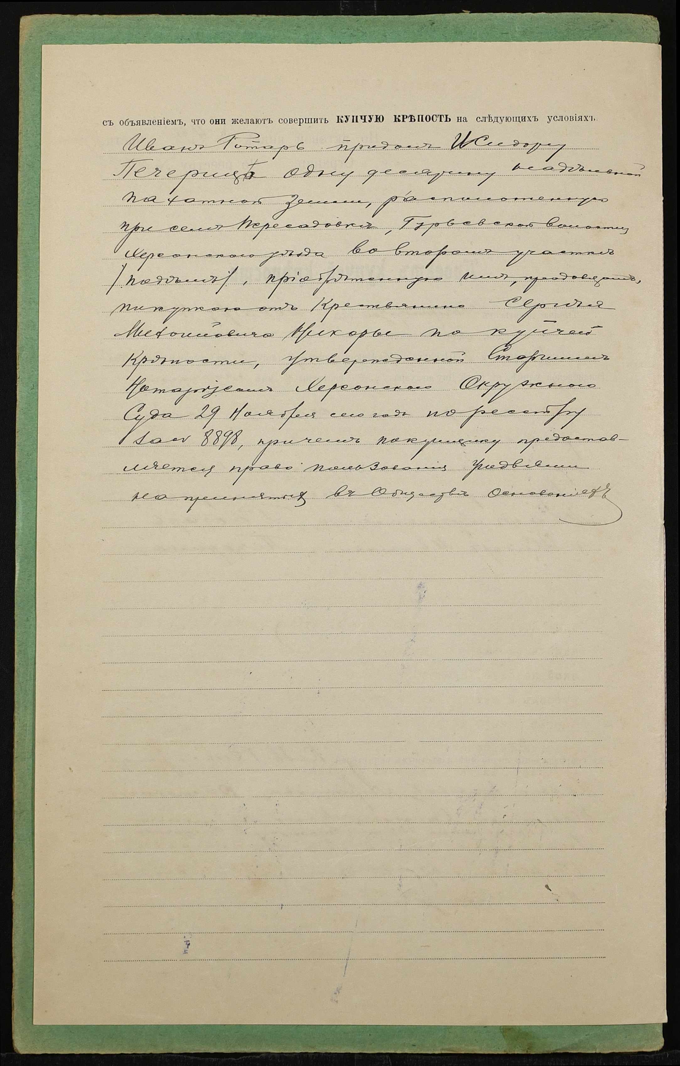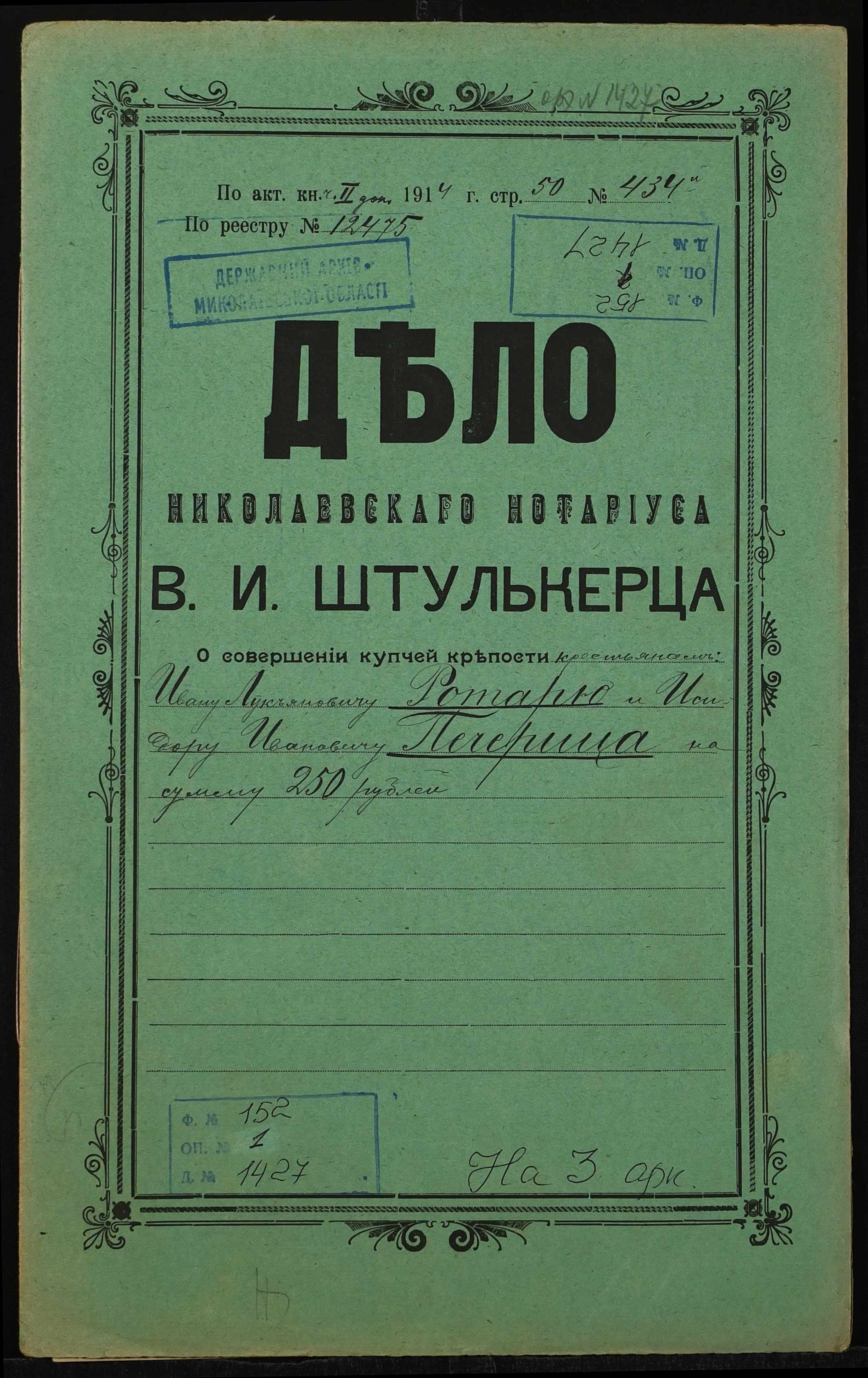 • • • • Справа № 1427 “Справа про вчинення купчої про продаж землі селянином Ротарем Іваном Лук’яновичем (Ротарем Иваном Лукьяновичем) на користь селянина Печериці Сидора Івановича (Печерицы Сидора Ивановича)”