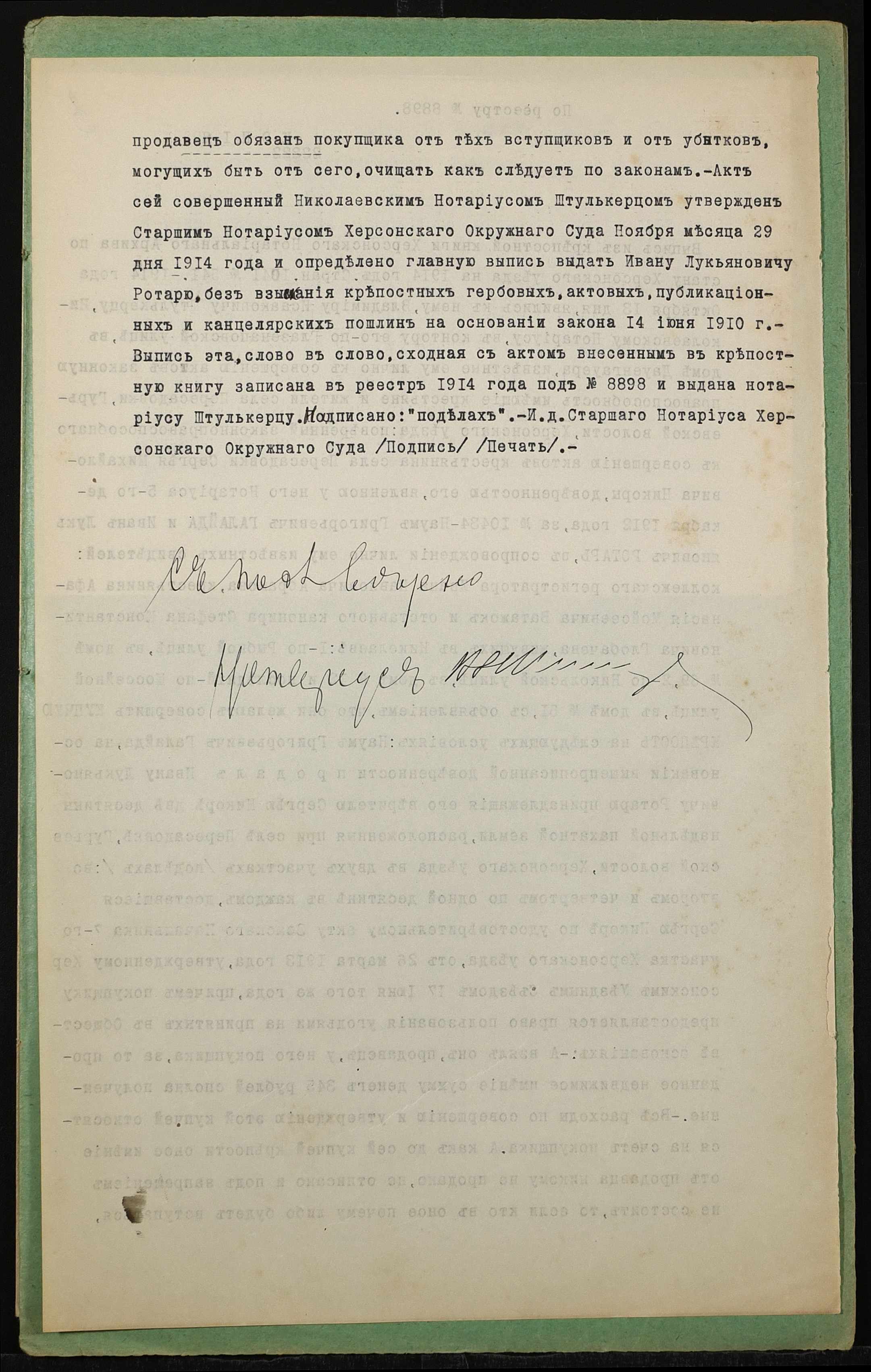 ◦ ◦ Фонд № 152 “Контора миколаївського нотаріуса Херсонського окружного суду Штулькерца Володимира Ісааковича”