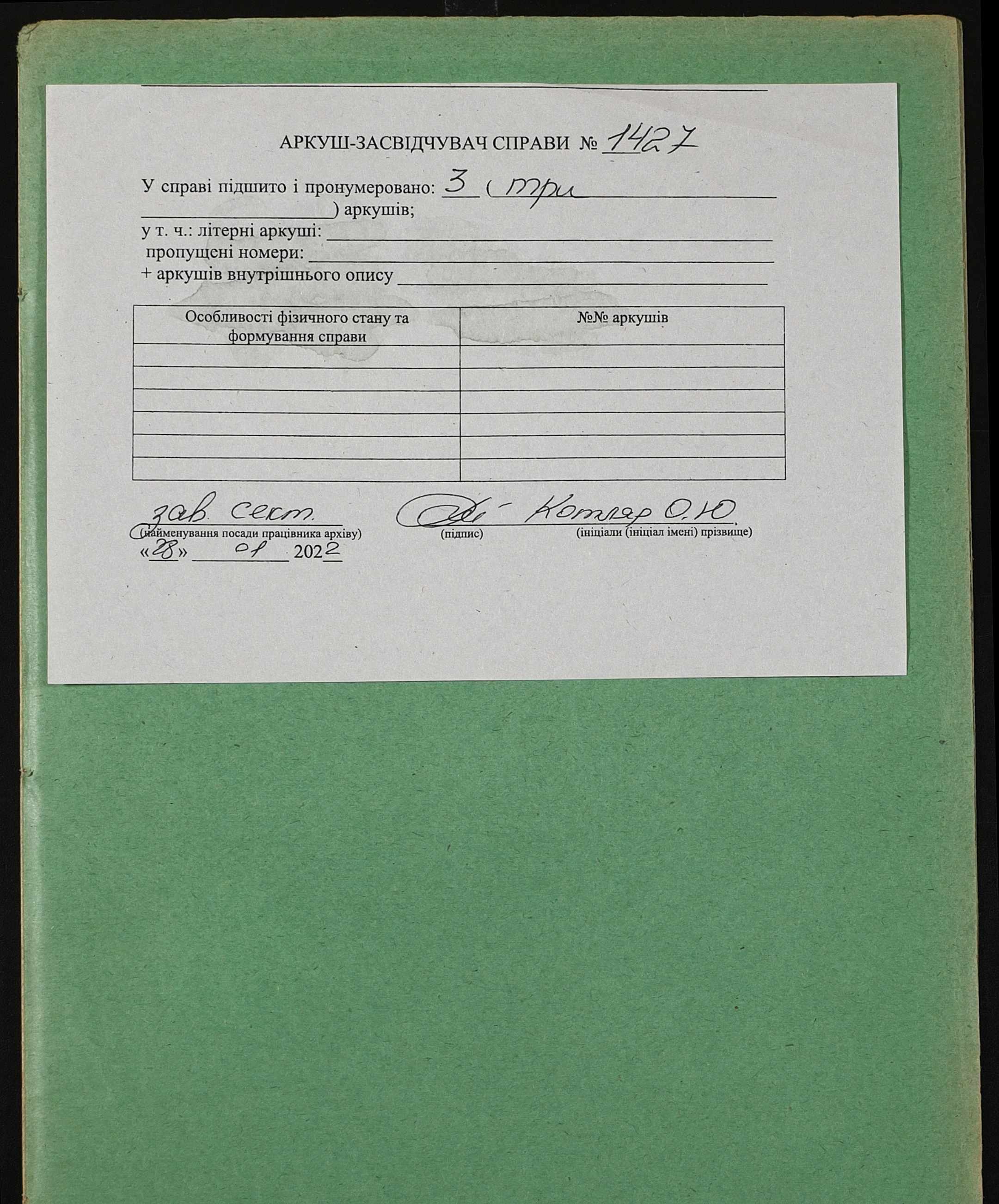 Фонд 152 / Опис 1 / Справа 1427